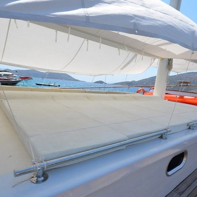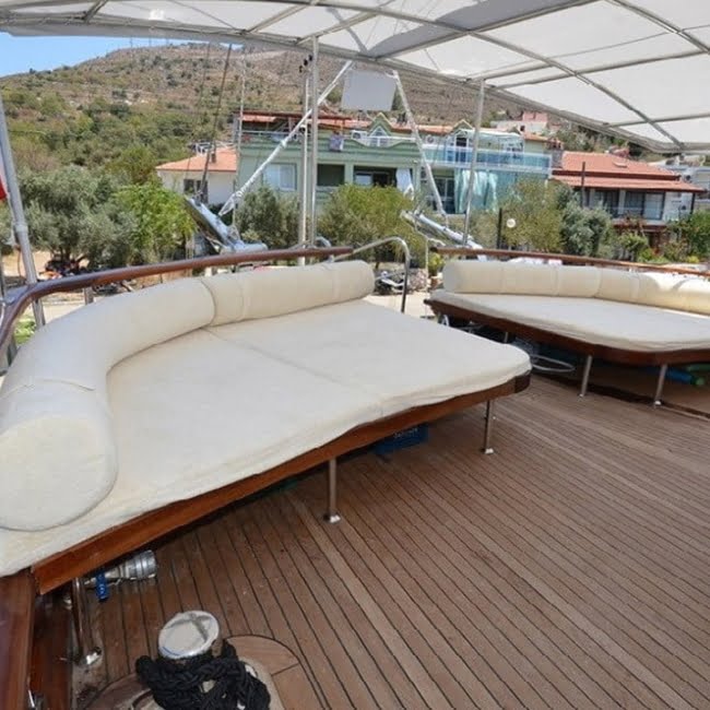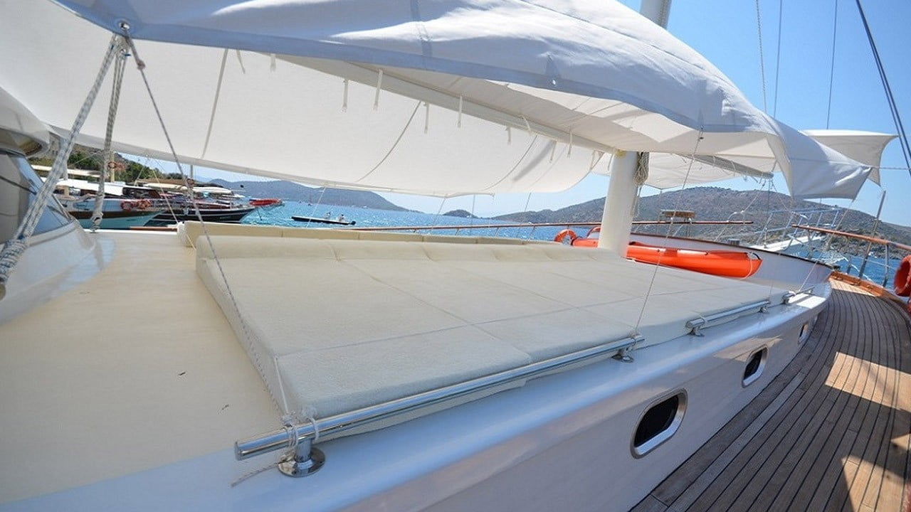 A large cushioned seating area, sunbathing area and sunbathing cushions are available on the deck in sufficient quantity.