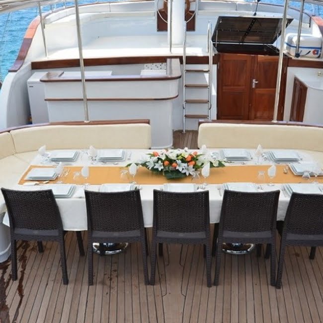 Our professional team organizing activities such as daily boat cleaning, service, food and beverage are drawn to their cabins in every way you may need in terms of your privacy and comfort.