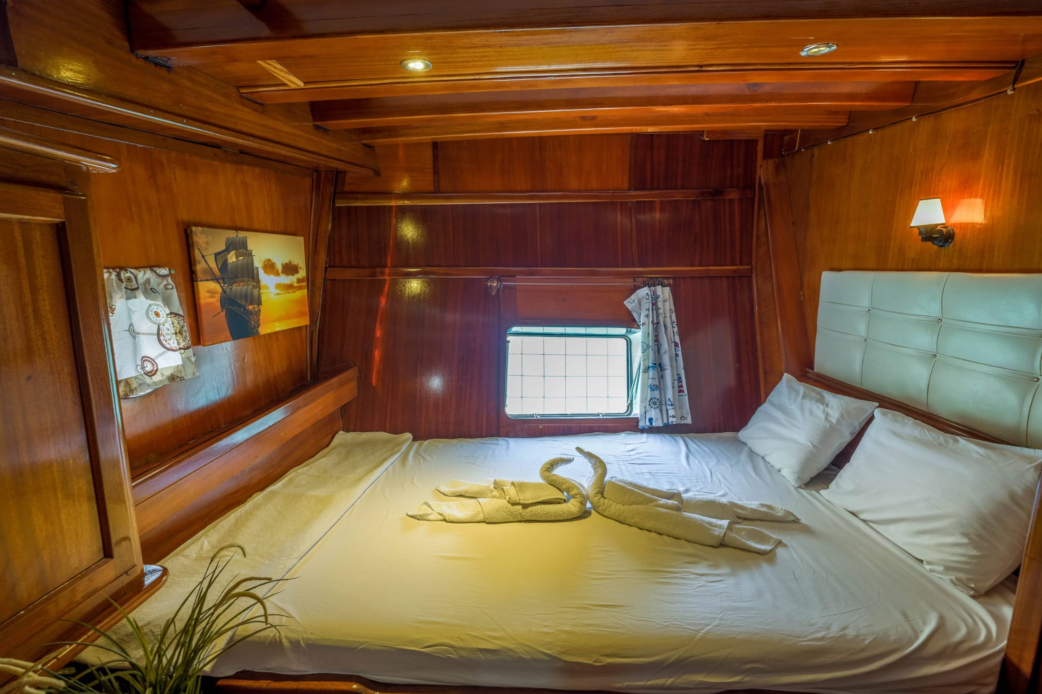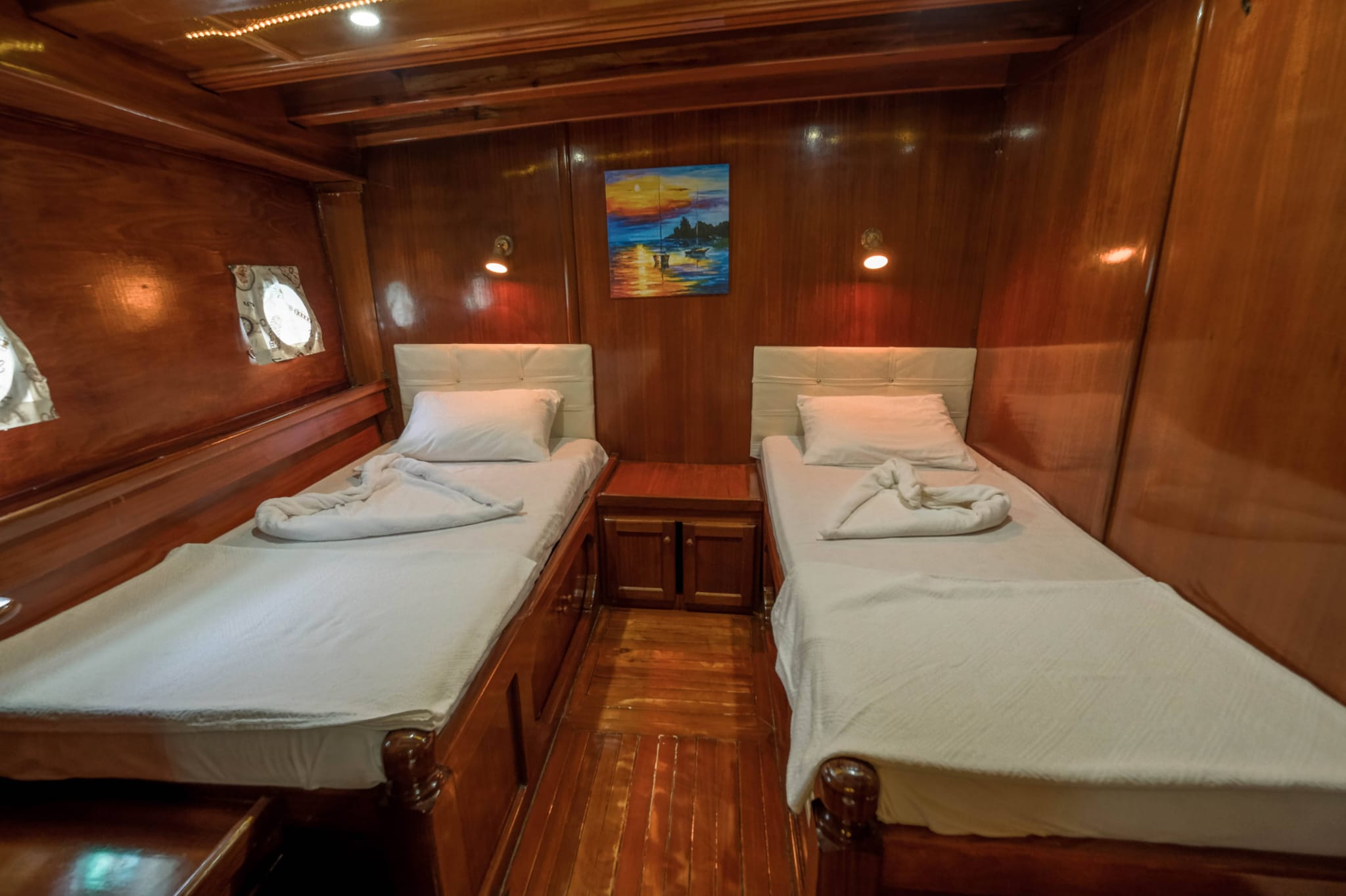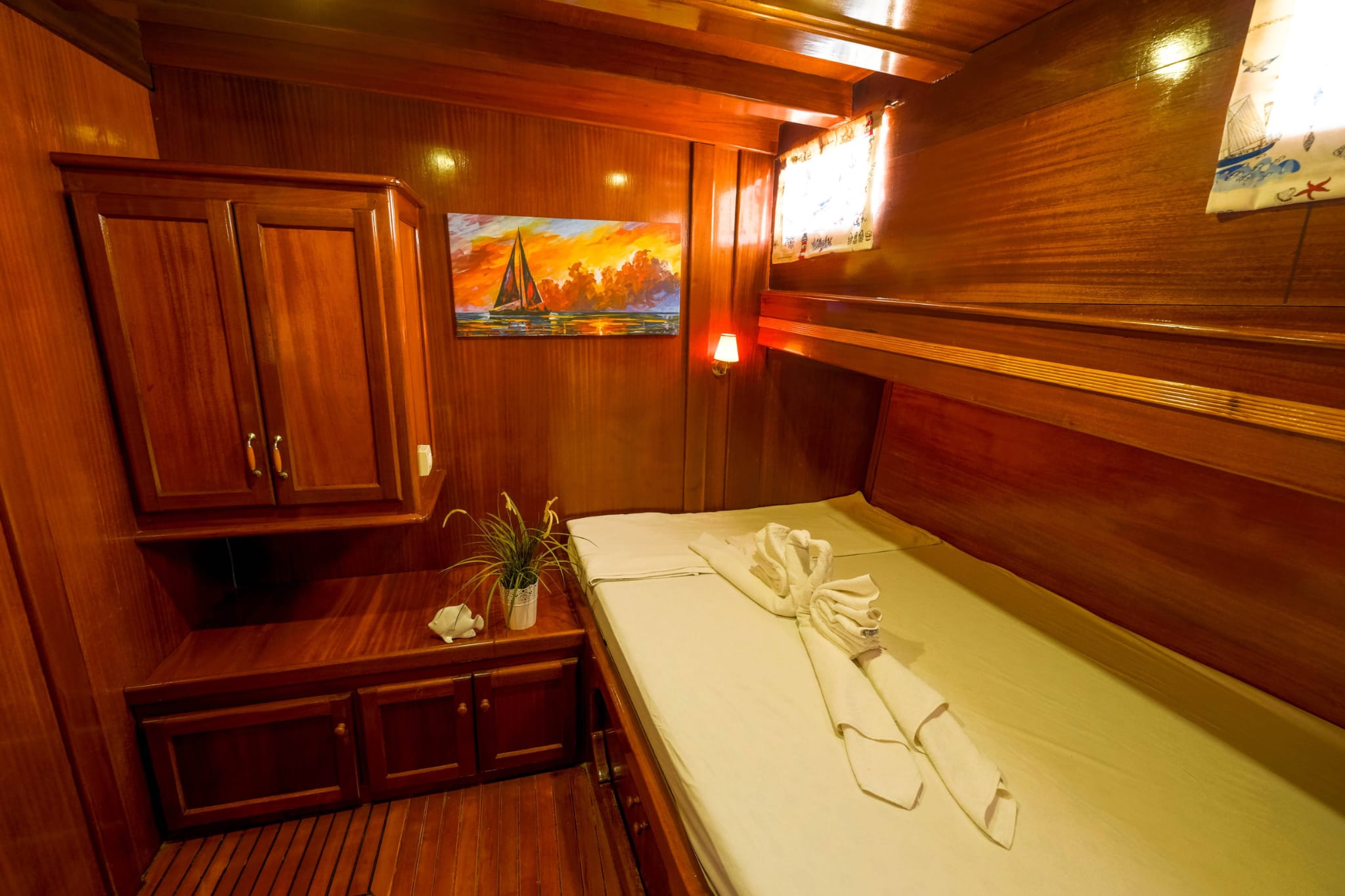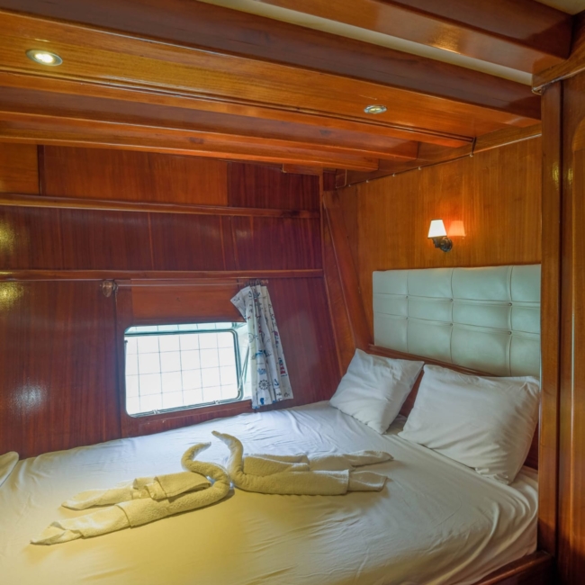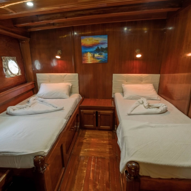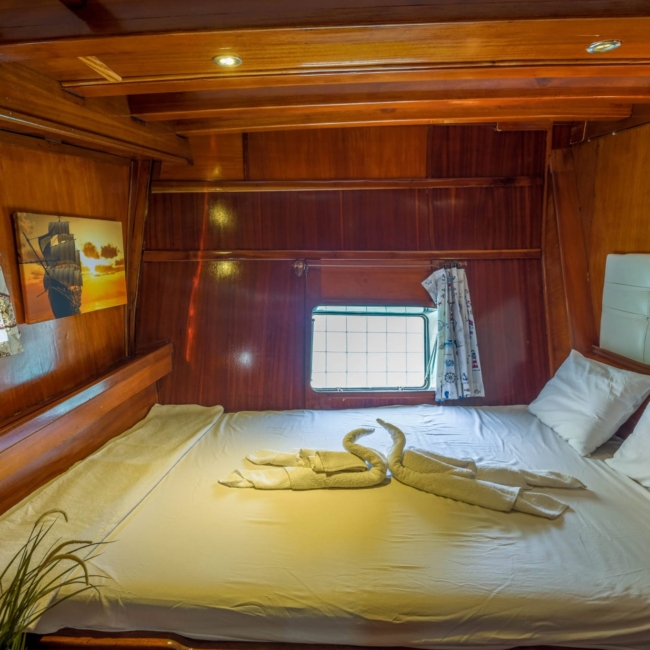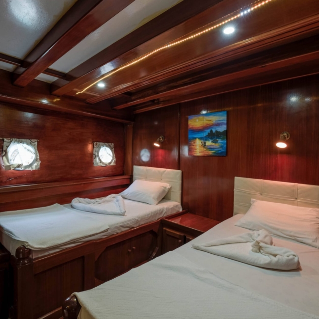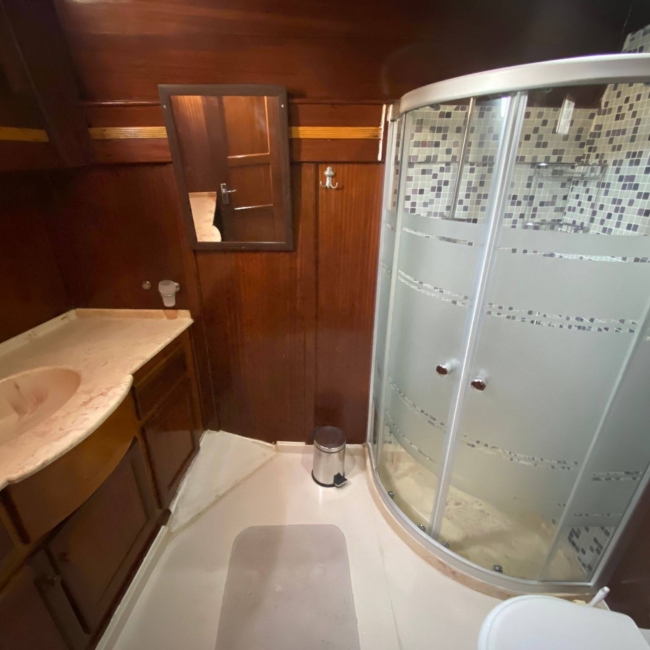 We can host 16 guests in 6 Double Cabins and 2 Twin Cabins. Wc and shower are available in each cabin.