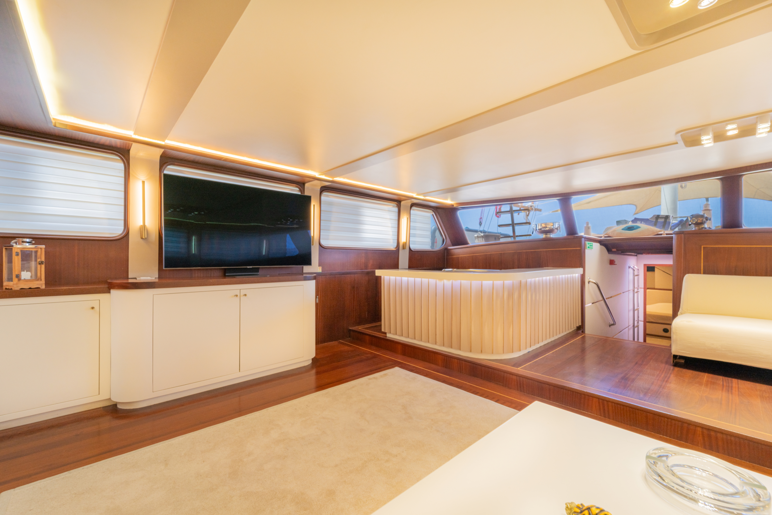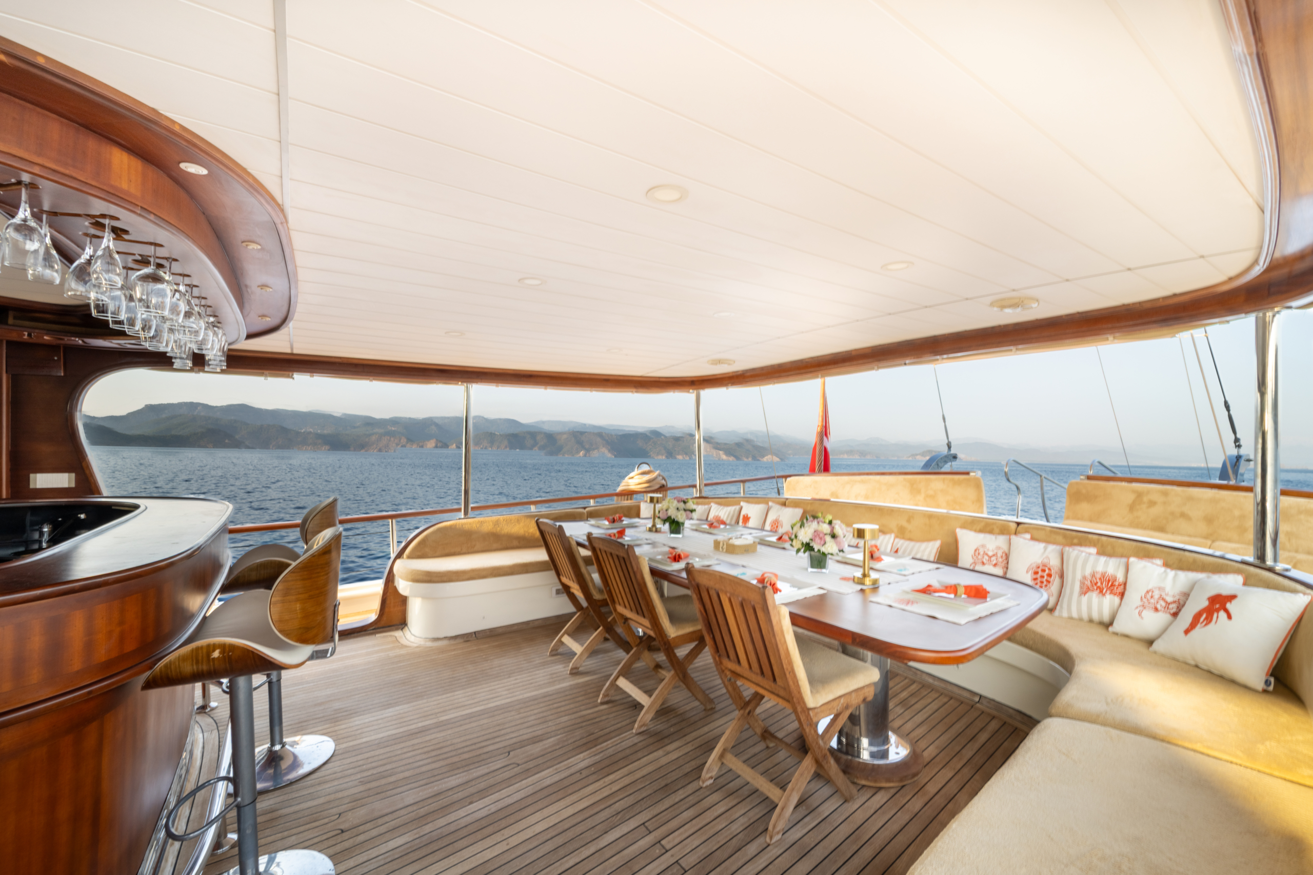 Gemideki olanaklar arasında espresso makinesi, geleneksel Türk kahvesi makinesi, açık hava kombi ve ızgara alanı ve pruva, orta hidrolik ve kıç tarafta geniş güneşlenme depoları bulunmaktadır. Her alanı, gün boyunca maksimum rahatlık ve keyif sunmak üzere tasarlanmıştır.