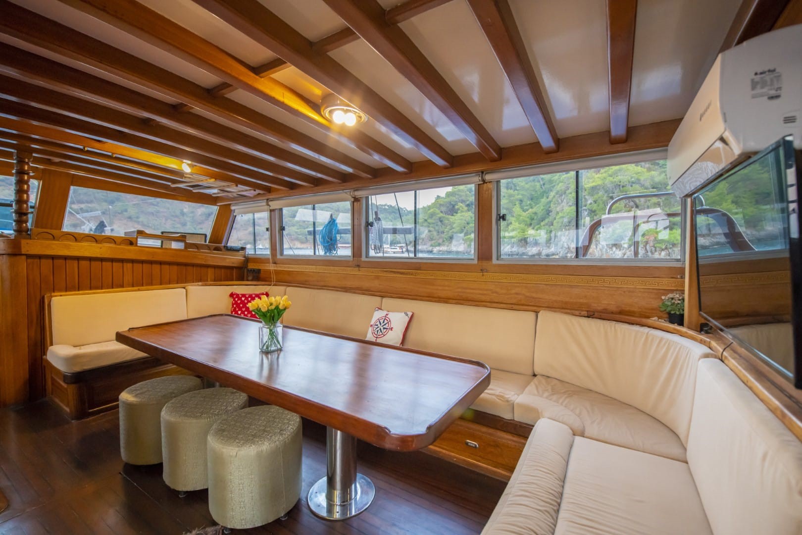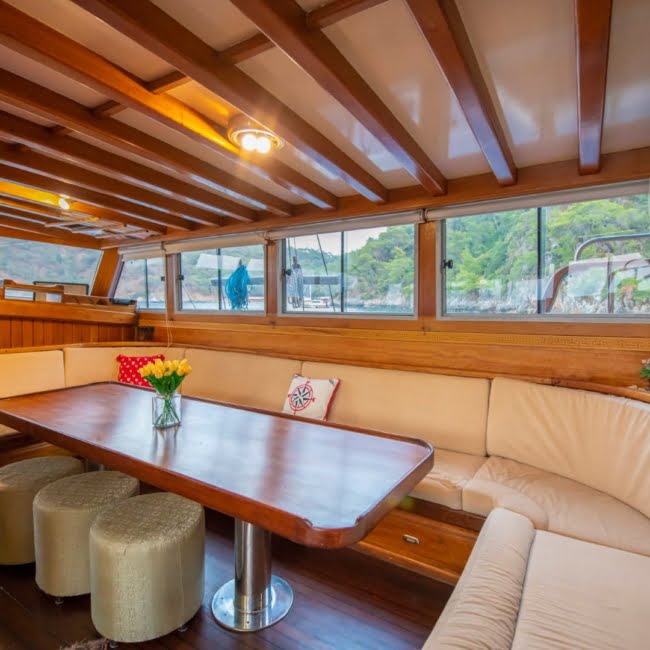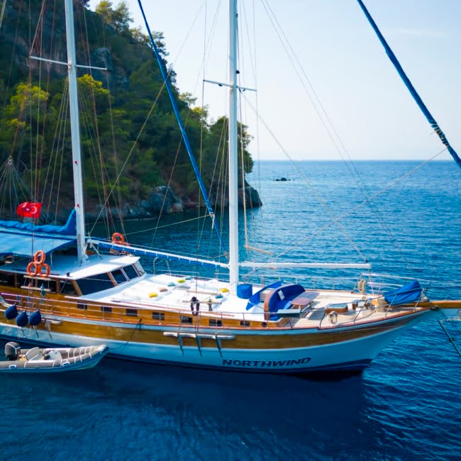 Gulet Northwind is ranked in the standard category of gulets. Northwind is ideal for group holidays with her 3 double and 4 triple cabins; all cabins are en-suite and air conditioned. There are plenty of comfortable sun loungers on the top deck to catch the sun. 20 m in length she can accommodate 14 people easily and is fully equipped to meet all of your needs. Gulet Northwind is based in Fethiye. Cruise via Gocek to Marmaris or down the south to Kas and Kekova.