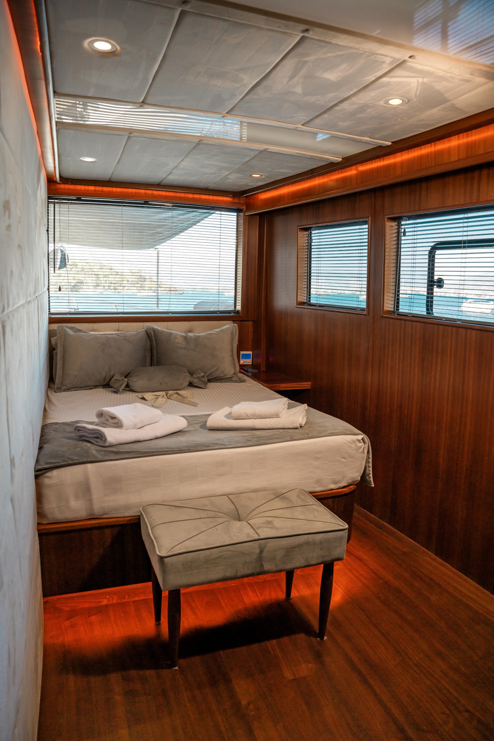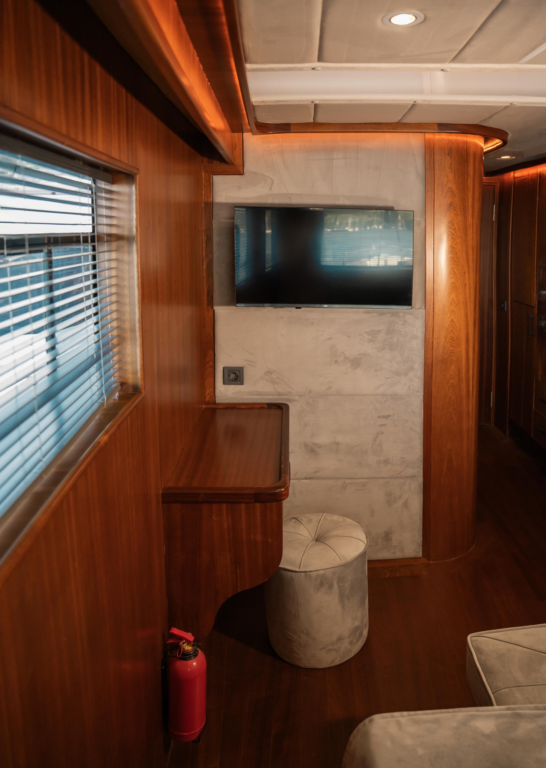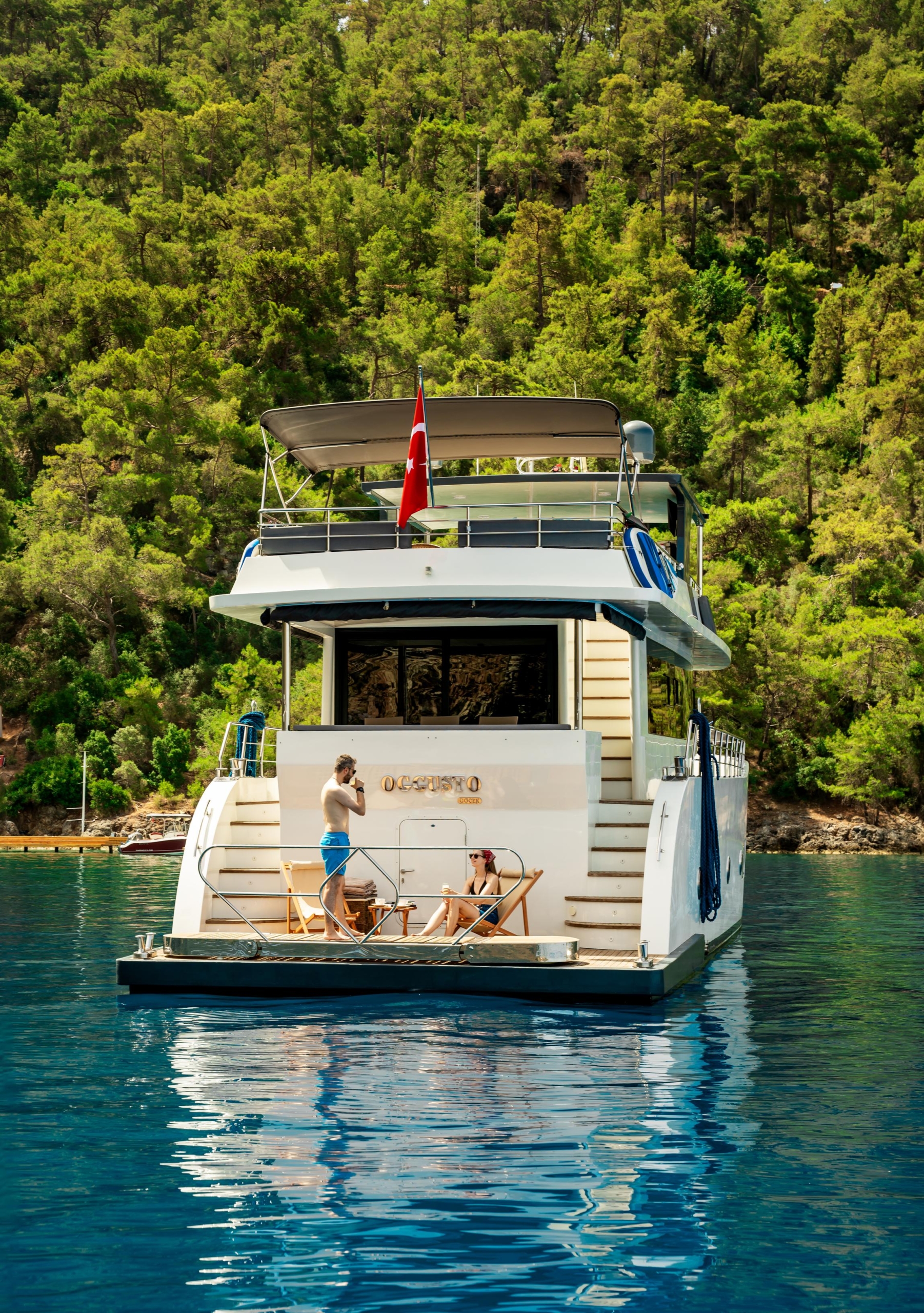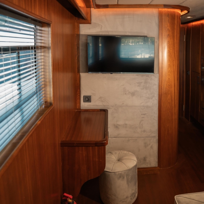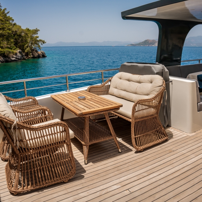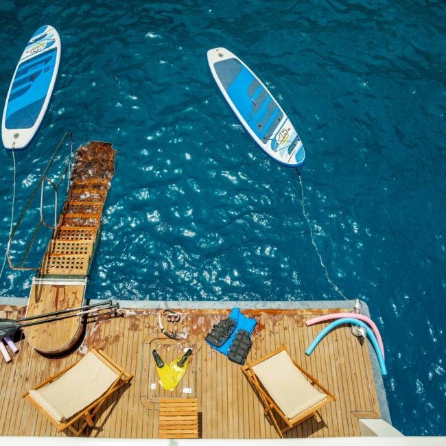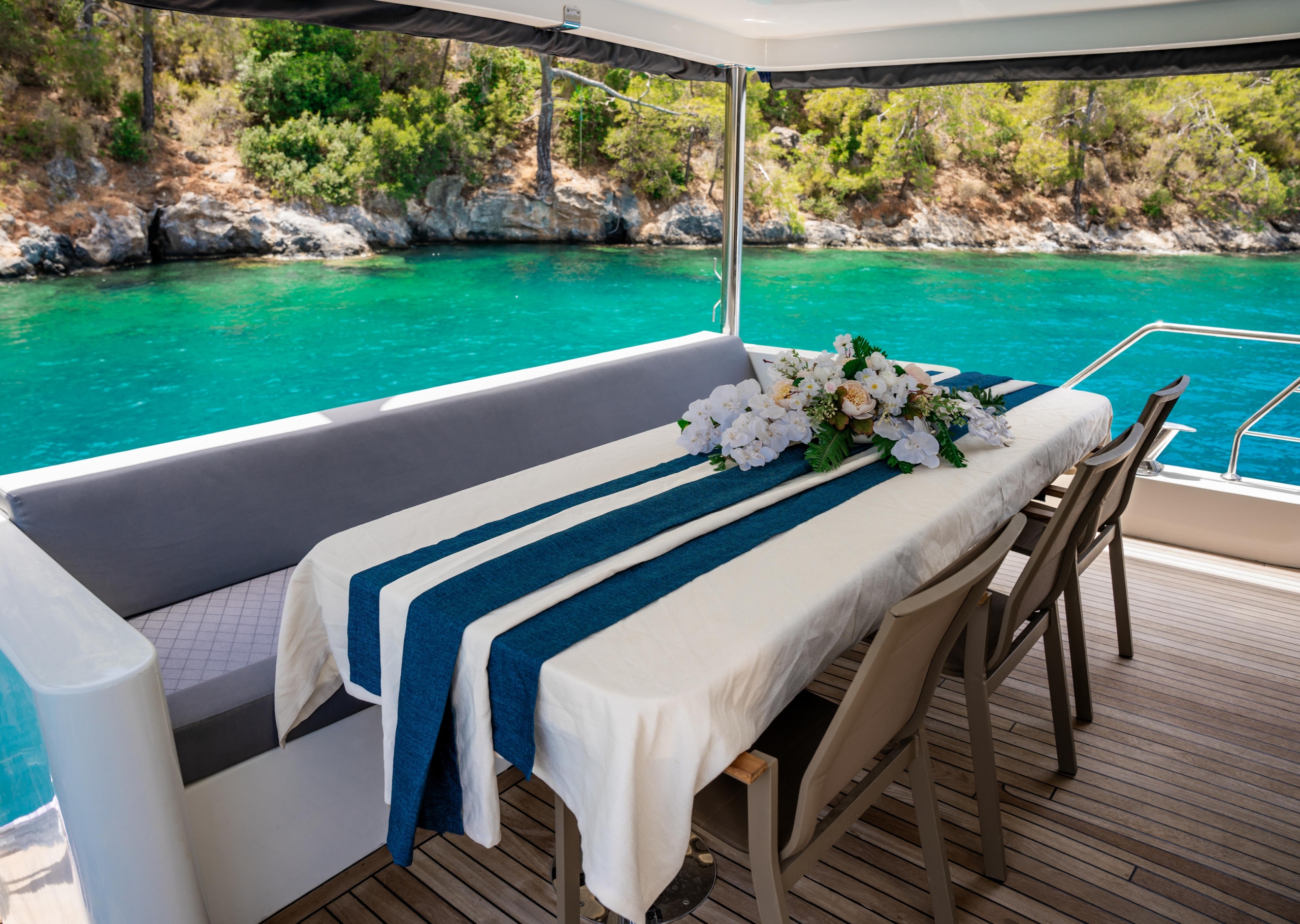 Oggusto teknesi, deniz üzerinde lüks donanımıyla mavi yolculuk severlere otel konforu sunuyor. Teknemiz 22 metre uzunluğunda olup, 1 master ve 3 double olmak üzere toplam 4 kamaraya sahiptir. Her kamaranın kendine ait banyo ve tuvaleti bulunmaktadır. Teknemiz 2023 model olup, Fethiye ve Göcek koylarında hizmet vermektedir. Dilerseniz farklı rota seçenekleriyle deneyimli ve uzman ekibimizle iletişime geçebilirsiniz. Tüm odalarımızda klima, televizyon ve saç kurutma makinesi mevcut olup, konforlu bir tatil geçirmeniz için tüm detaylar düşünülmüştür. Güverteli olan double kamaralardan biri, yaşlılar, engelliler veya çocuklu aileler için büyük konfor sağlamaktadır. Alttaki kamaralardan öndeki master kamara diğer 3 kamaradan daha geniş bir kullanım alanı sağlamaz. Salonumuzda bulunan modern döşenmiş oturma grubu misafirlerimize dinlenme imkânı sağlar. Salonumuzda olduğunuz sürece, evinizin konforlu yaşam alanına sahip olabilir ve akıllı televizyon ile internete bağlanarak dilediğiniz televizyonun keyfini çıkarabilirsiniz.