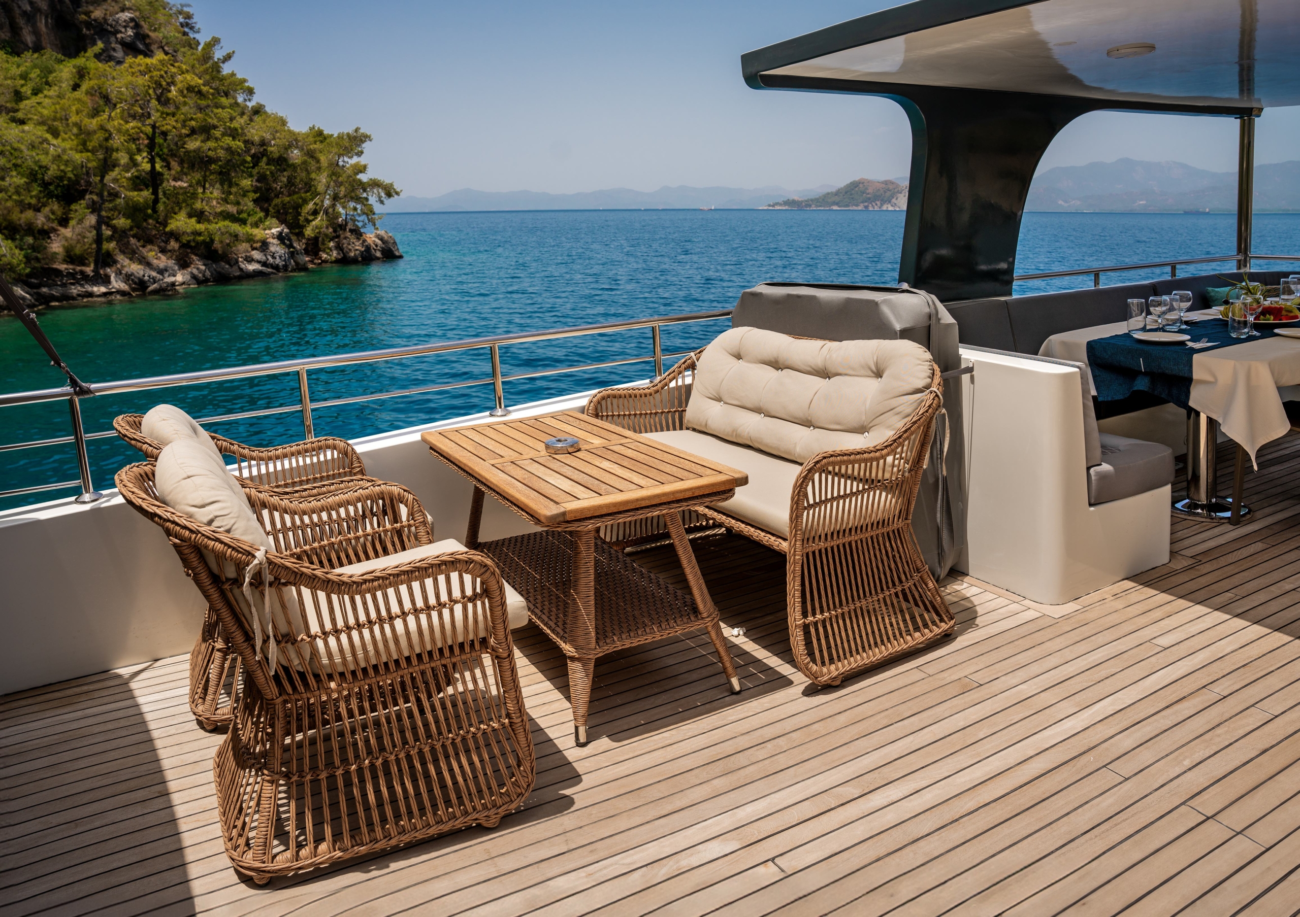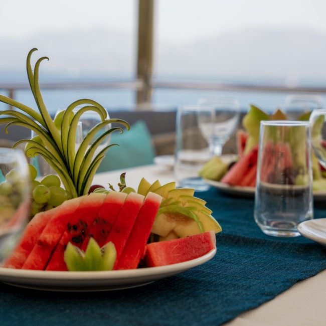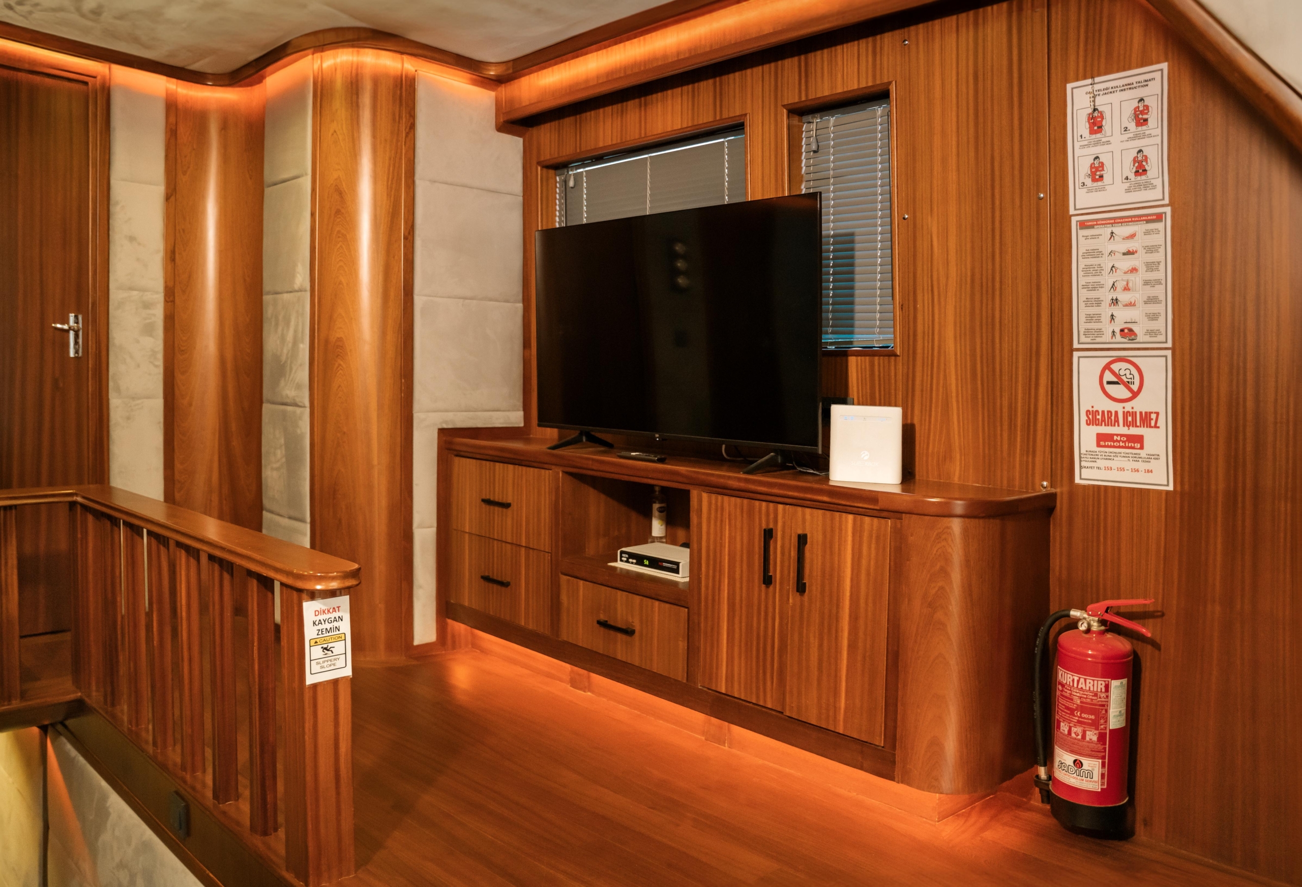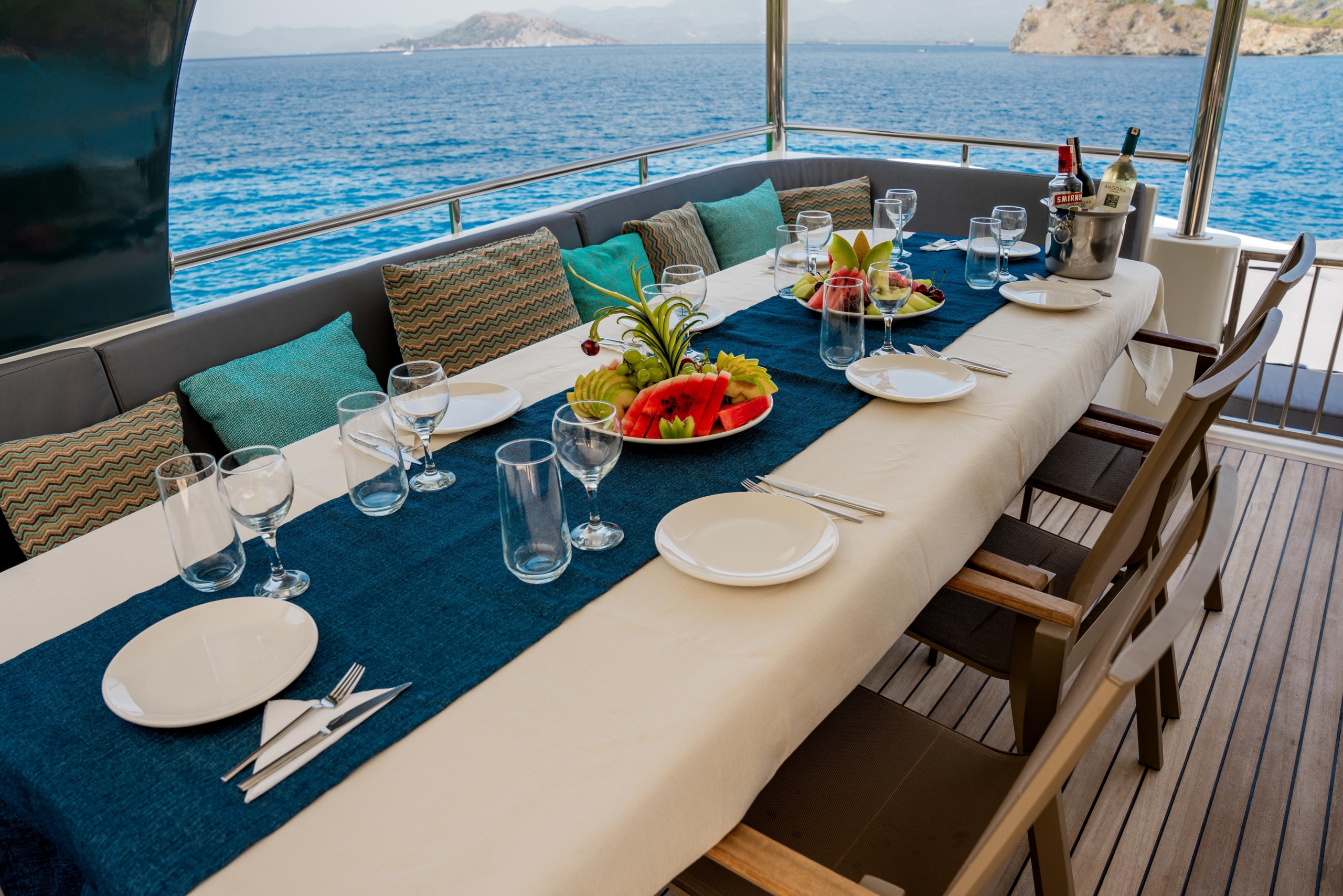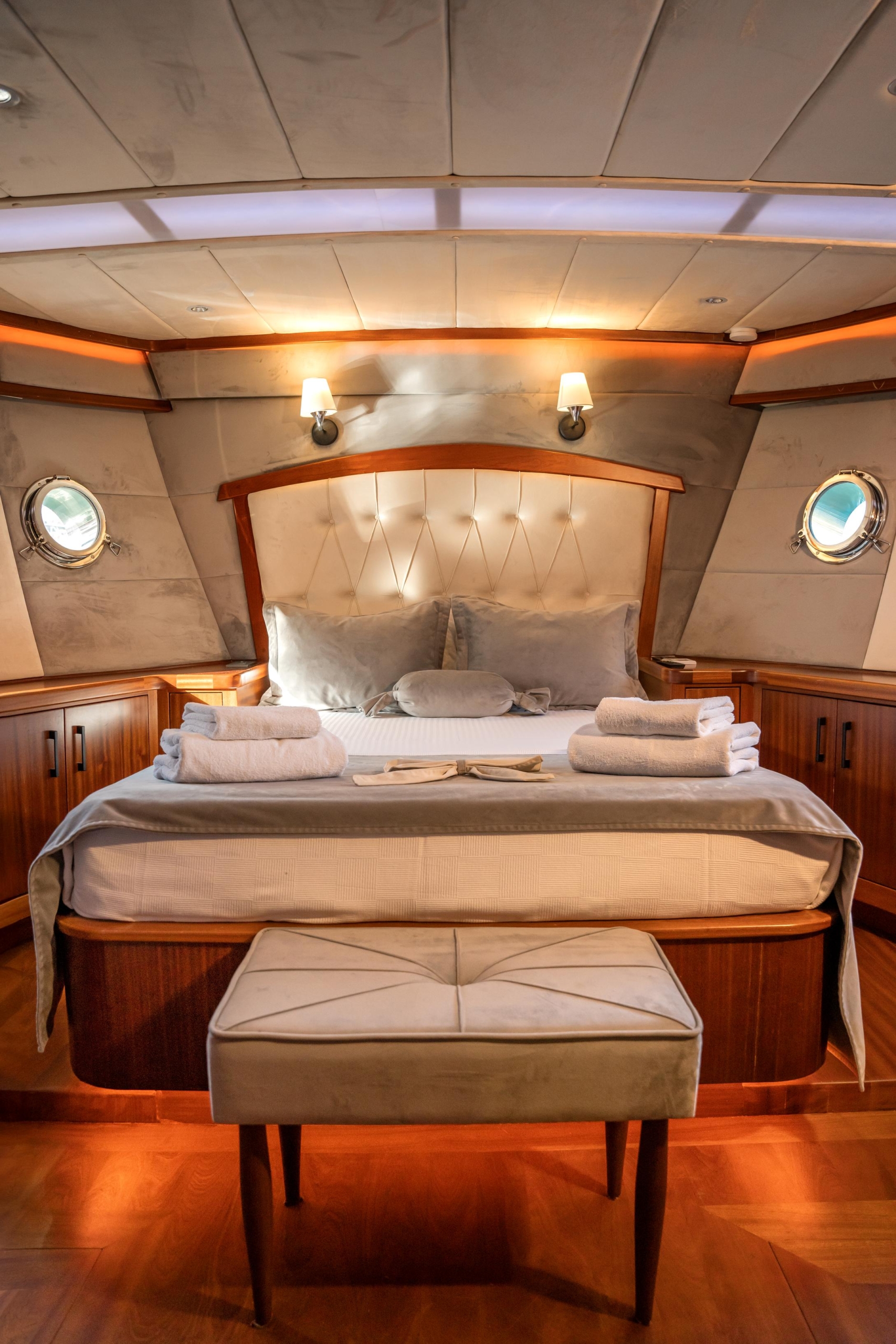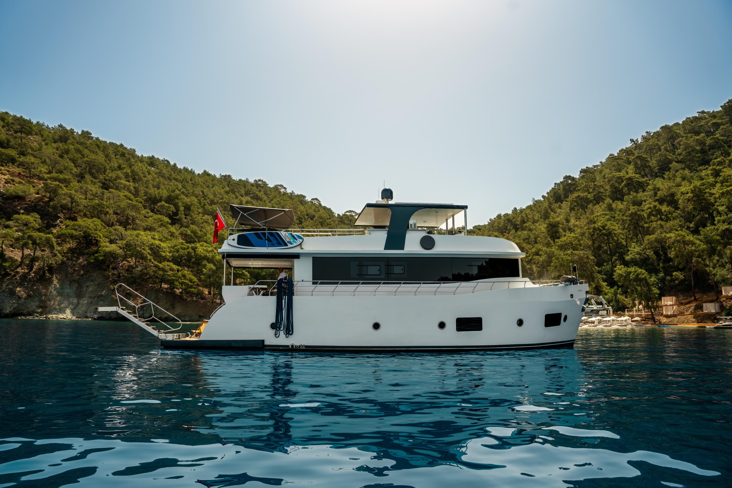 Oggusto teknesi, deniz üzerinde lüks donanımıyla mavi yolculuk severlere otel konforu sunuyor. Teknemiz 22 metre uzunluğunda olup, 1 master ve 3 double olmak üzere toplam 4 kamaraya sahiptir. Her kamaranın kendine ait banyo ve tuvaleti bulunmaktadır. Teknemiz 2023 model olup, Fethiye ve Göcek koylarında hizmet vermektedir. Dilerseniz farklı rota seçenekleriyle deneyimli ve uzman ekibimizle iletişime geçebilirsiniz. Tüm odalarımızda klima, televizyon ve saç kurutma makinesi mevcut olup, konforlu bir tatil geçirmeniz için tüm detaylar düşünülmüştür. Güverteli olan double kamaralardan biri, yaşlılar, engelliler veya çocuklu aileler için büyük konfor sağlamaktadır. Alttaki kamaralardan öndeki master kamara diğer 3 kamaradan daha geniş bir kullanım alanı sağlamaz. Salonumuzda bulunan modern döşenmiş oturma grubu misafirlerimize dinlenme imkânı sağlar. Salonumuzda olduğunuz sürece, evinizin konforlu yaşam alanına sahip olabilir ve akıllı televizyon ile internete bağlanarak dilediğiniz televizyonun keyfini çıkarabilirsiniz.