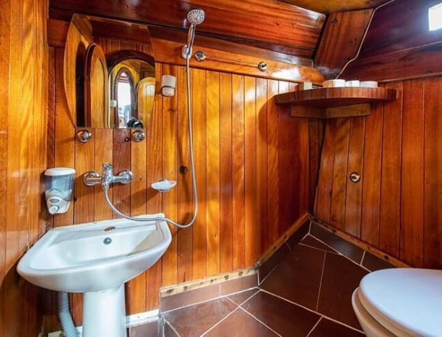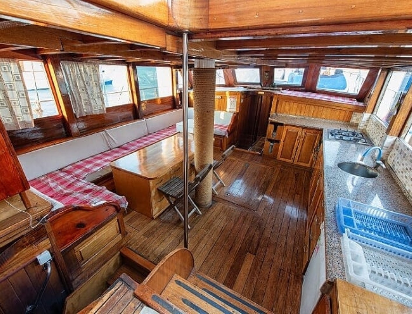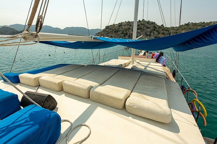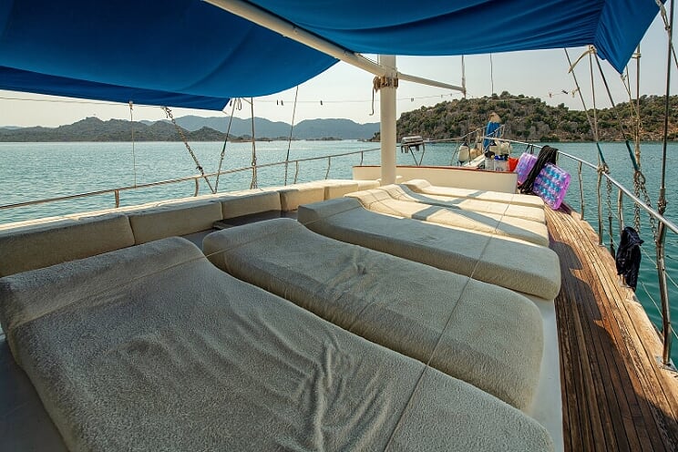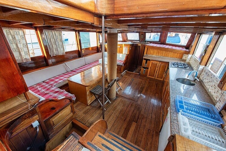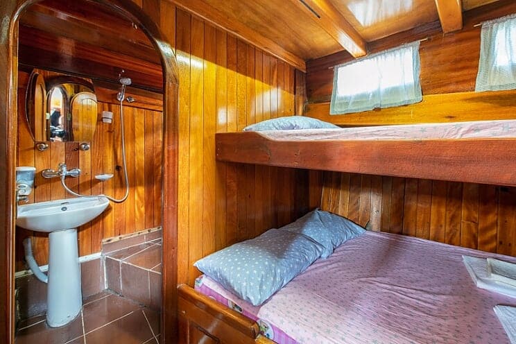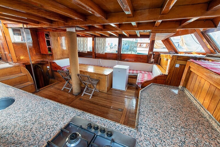 9 cabins and 18-passenger capacity. Each cabin has its own bathroom. Gulet Revenge has a large dining table and sitting area on the aft