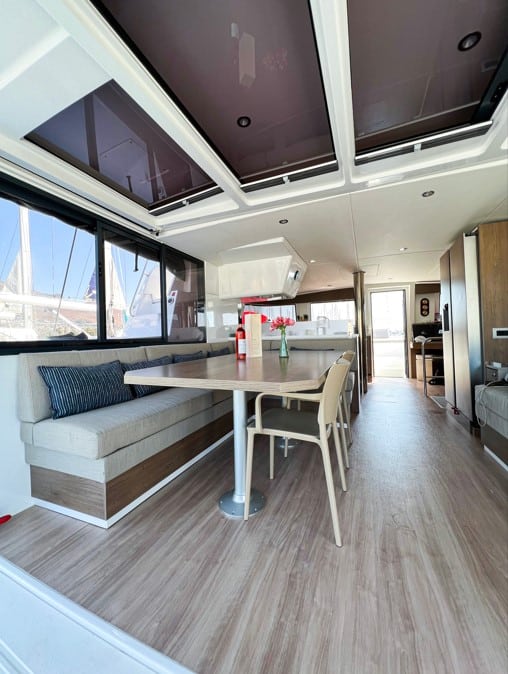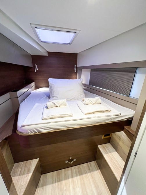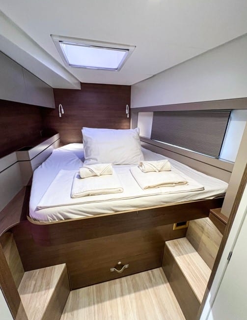 Catamaran Rosina is a modern designed yacht where all the details are considered, where you can have a good time during your holiday. in 2022 completed and presented to our guests. Our 13.75 meters long, 7.4 meters wide, fully equipped and stylish boat awaits its guests for a blue cruise. It has 4 cabins in total and the maximum accommodation capacity is 8 people. It is a catamaran that you should definitely consider on your blue cruise voyage.