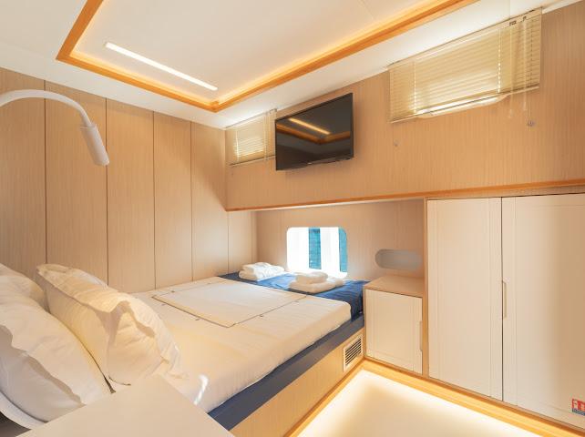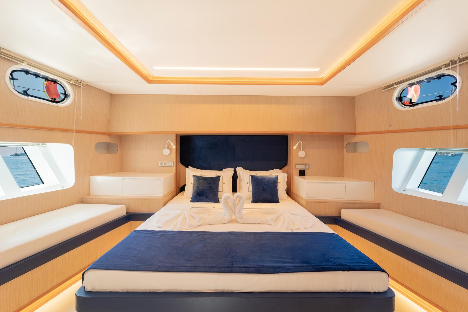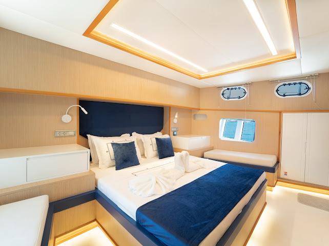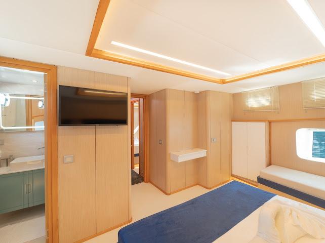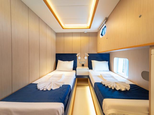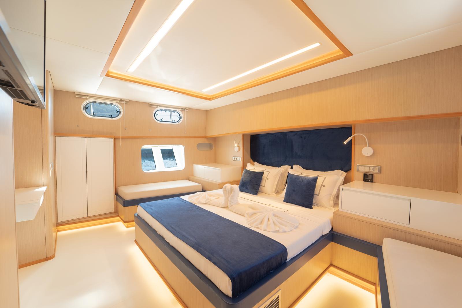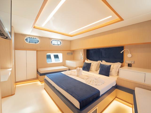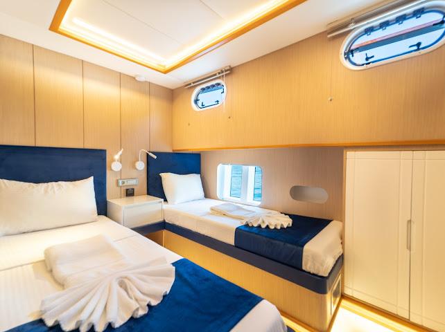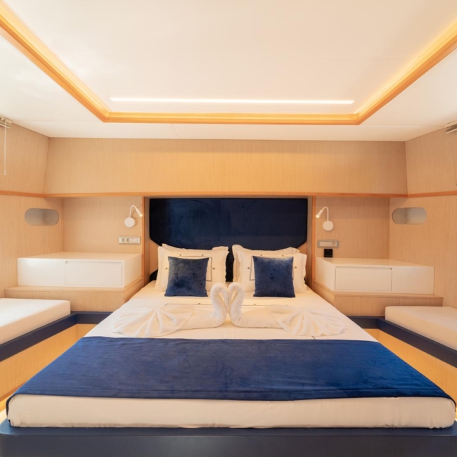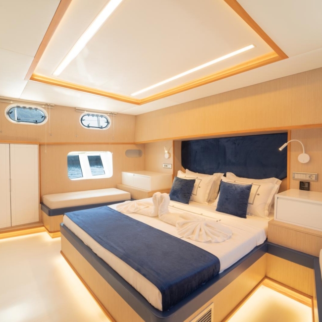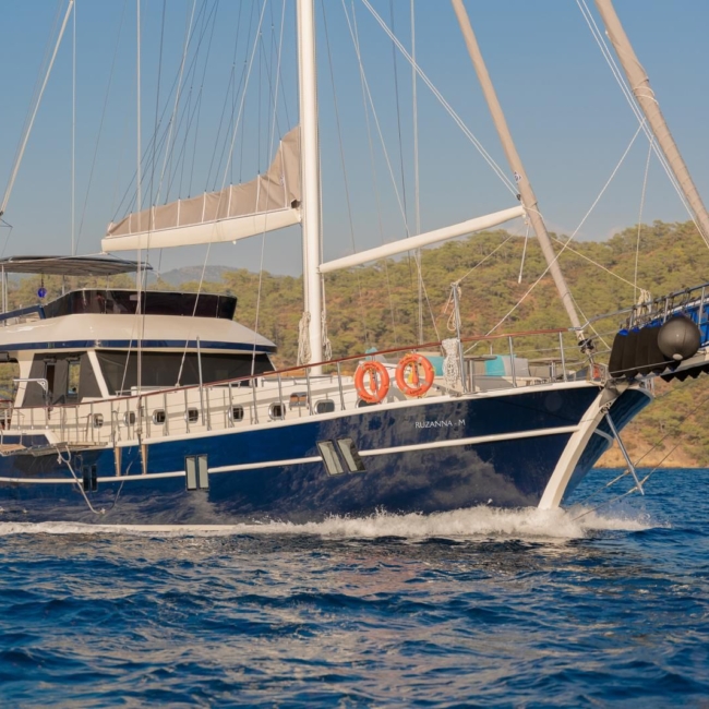 Ruzanna M, which started its blue cruise service in October 2023, is a 22-meter gulet in the luxury segment. The boat, which has a total of 4 cabins, offers accommodation for up to 8 people. Designed with the comfort of the guests in mind, the boat has 1 master, 2 double and 1 twin cabins. All cabins and the saloon have air conditioning, smart TV, bathroom with shower and toilet.