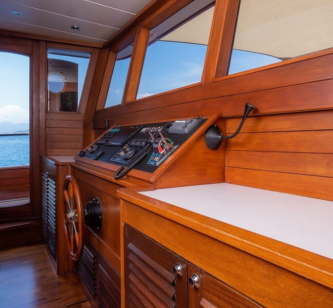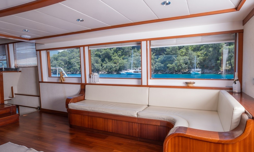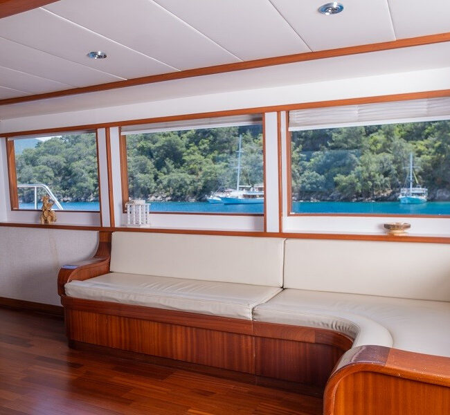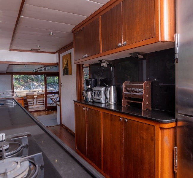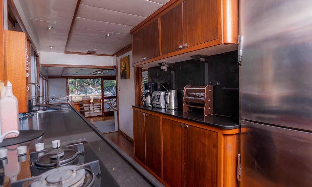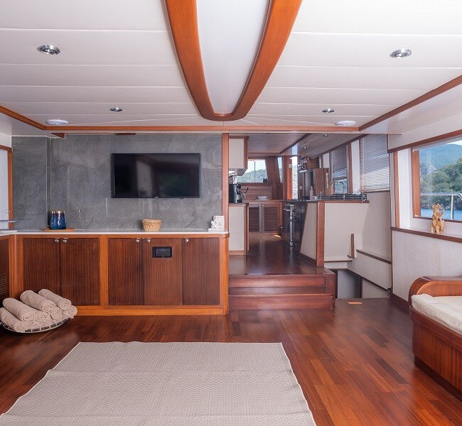 Trawler Ruzanna is sleeping up to 8 passengers. Her interior is classy and stylish from the well-equipped kitchen, and lounge with TV,