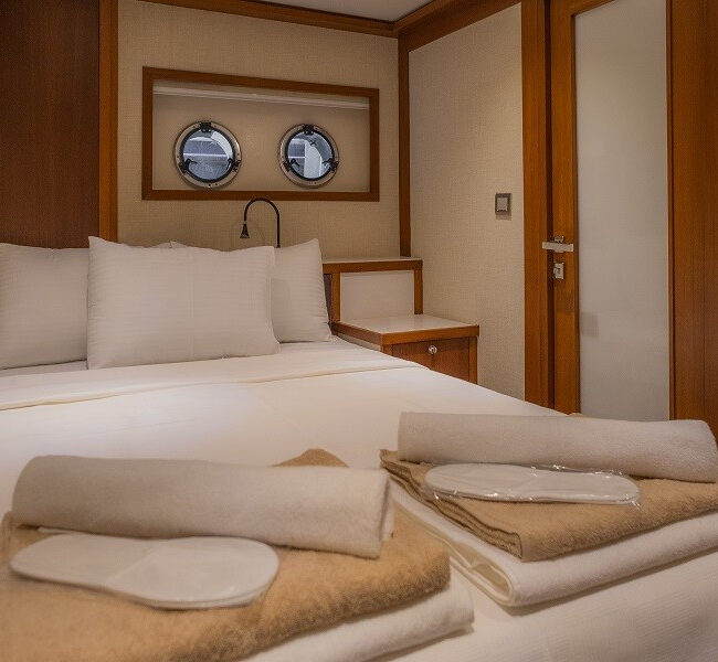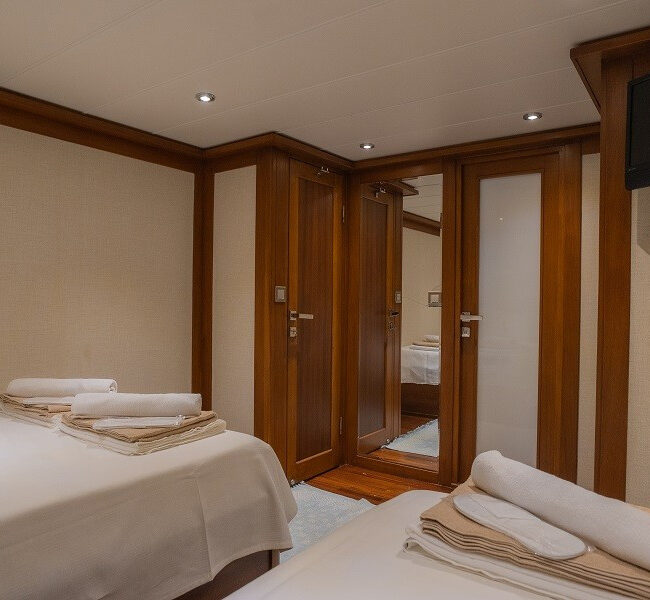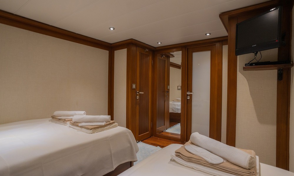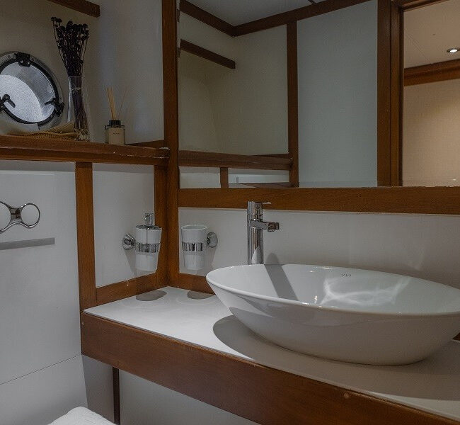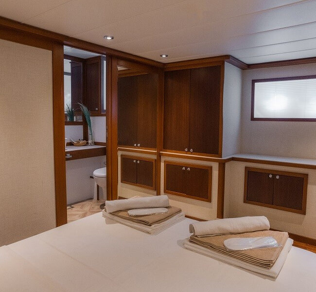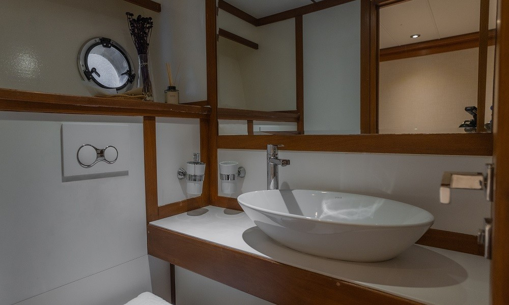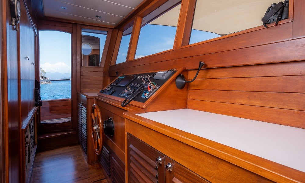 Trawler Ruzanna is sleeping up to 8 passengers. Her interior is classy and stylish from the well-equipped kitchen, and lounge with TV,