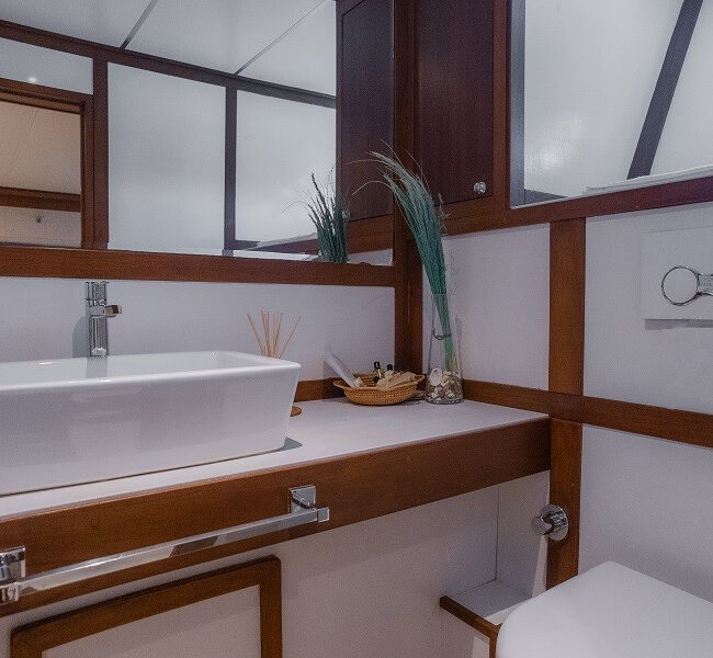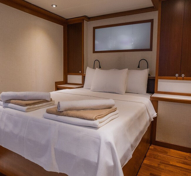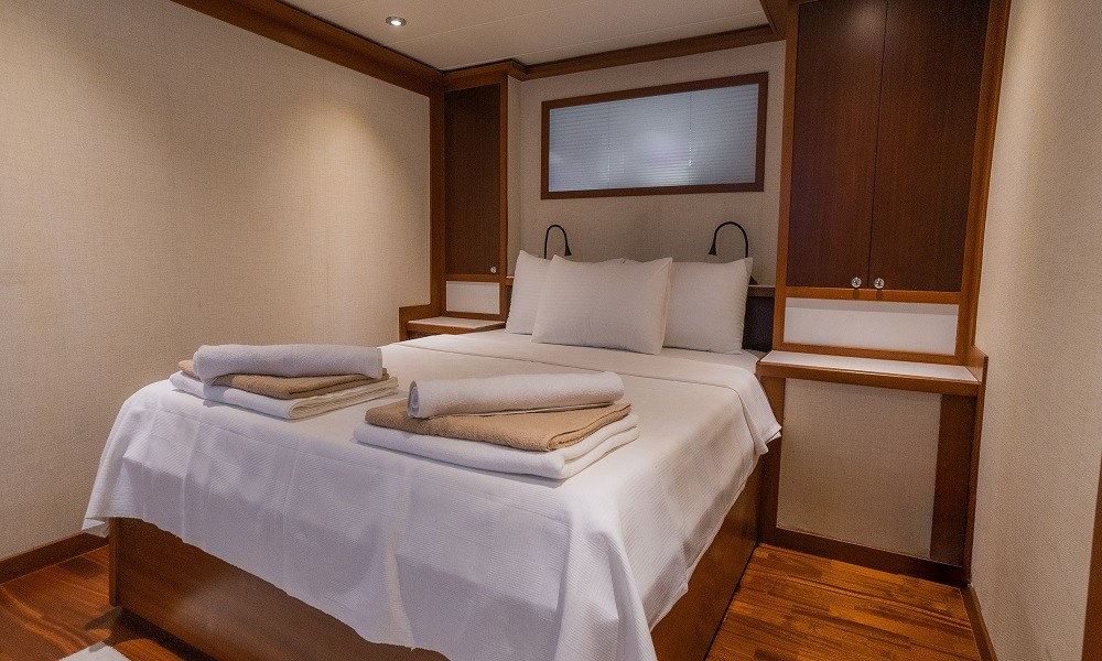 DVD and music system to her 4 air-conditioned and en-suite cabins. Dine alfresco in one of the many secluded bays. You will be spoilt for