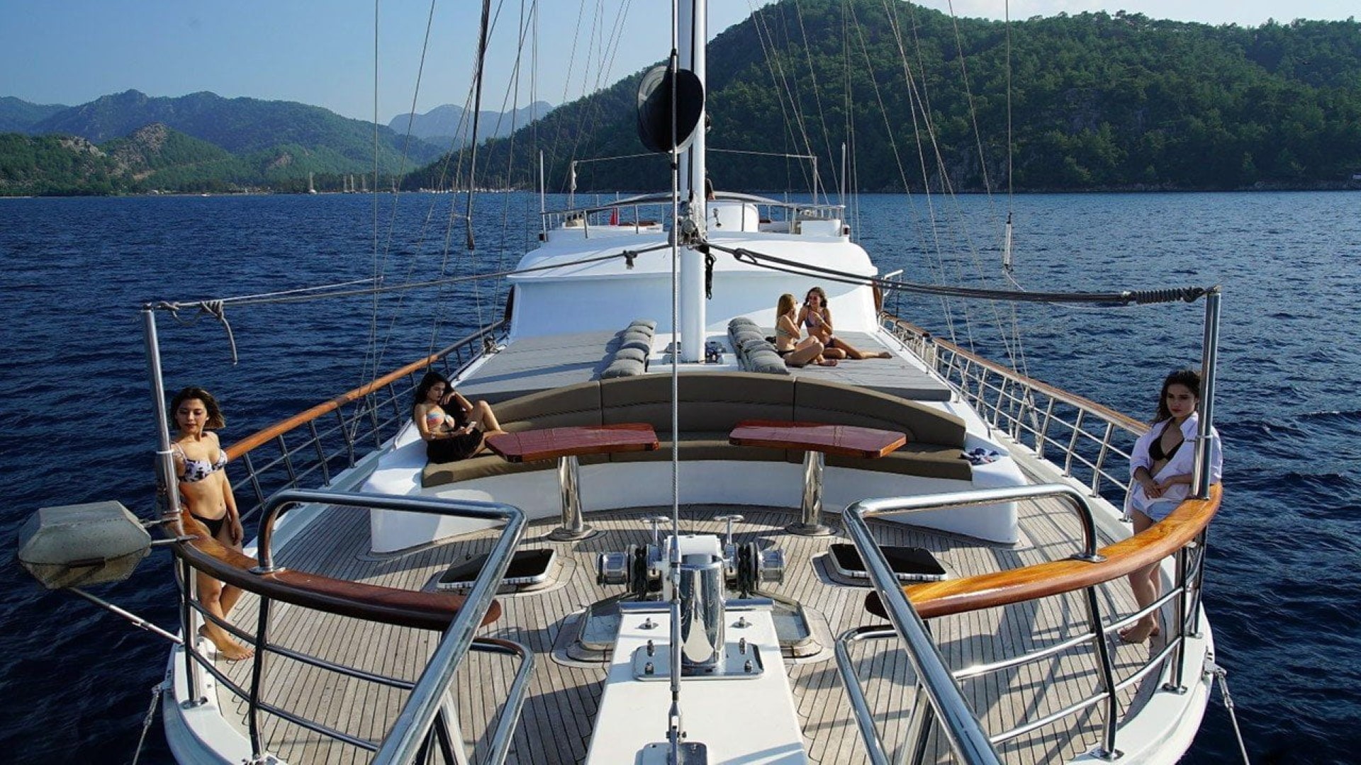 our yacht, and sun beds on the foredeck of our yacht, You can have a pleasant time in the jacuzzi located on the flybridge. The