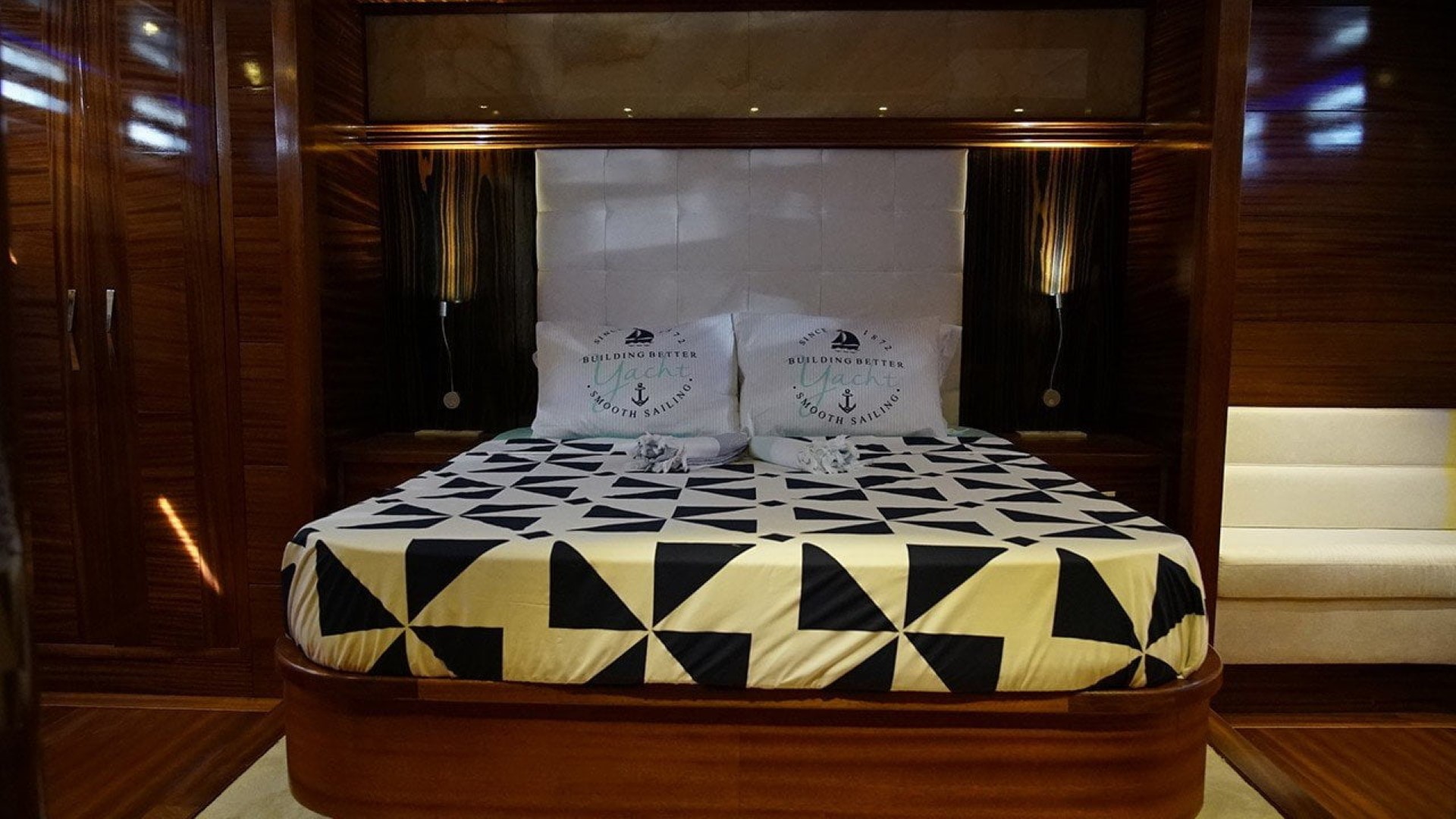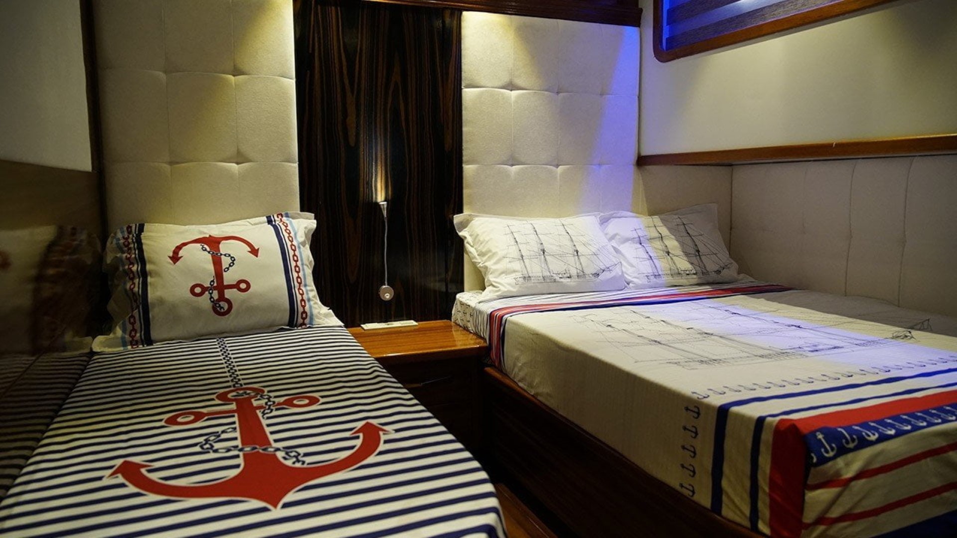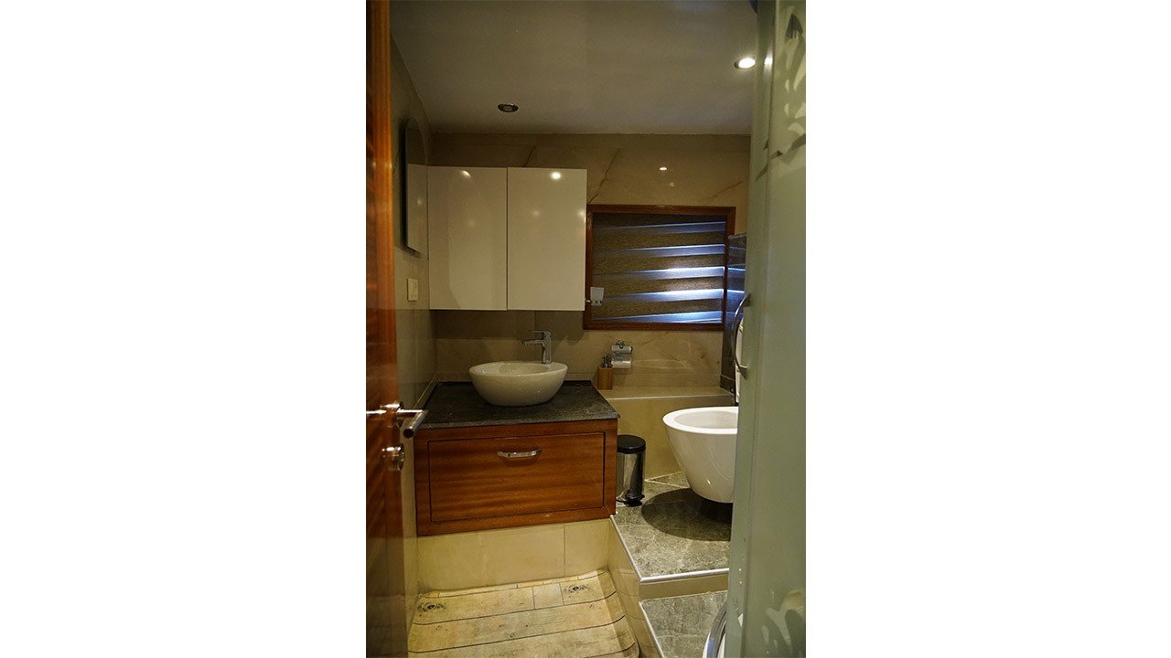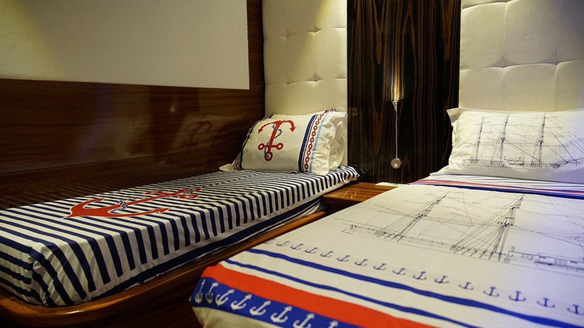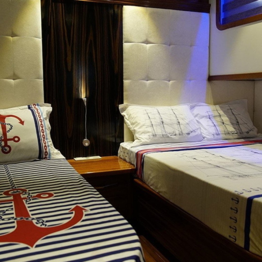 cabins. The cabins have a headboard, a private bathroom, a shower cabin / WC and air conditioning. Elegantly furnished cabins provide
