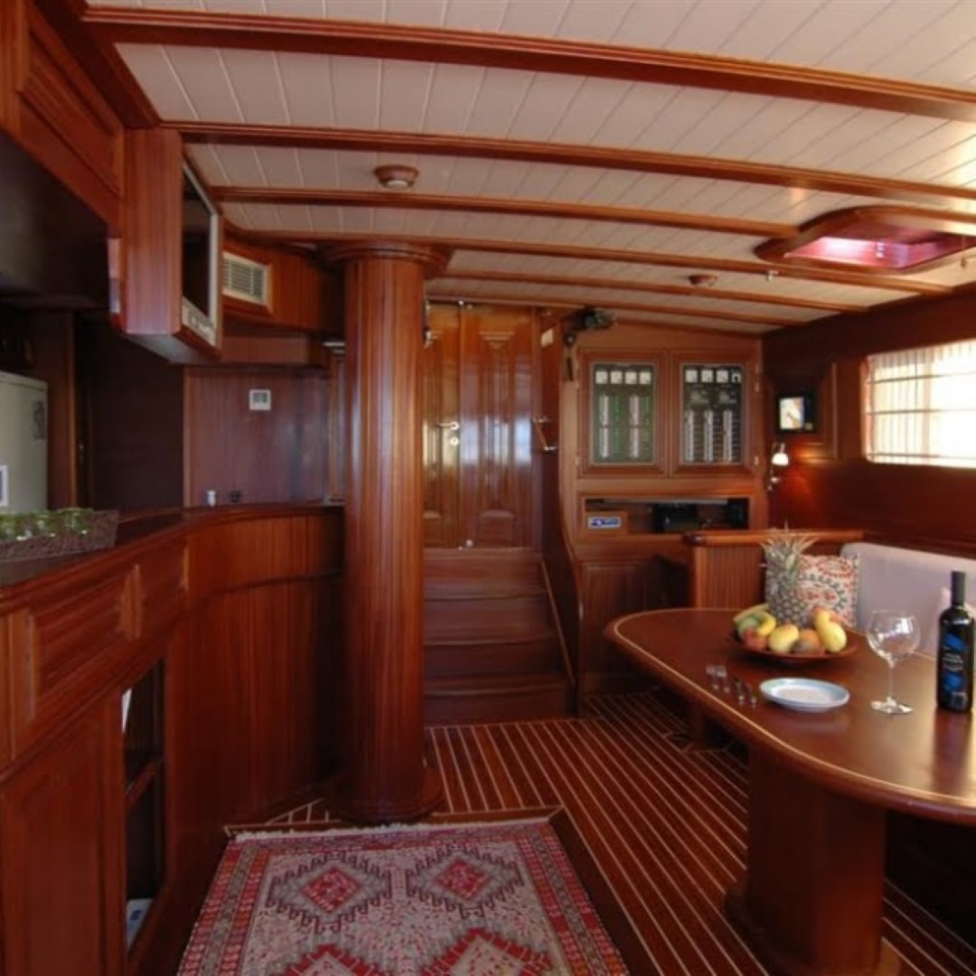 Gulet Samarkand is ideal for guests who value comfort with stylish design and spacious living areas. Four modern yet traditional cabins all have air conditioning and private bathrooms. Music system and TV can be found in the lounge along with a bar, dining table and relaxed seating. Canoe, water skiing and wakeboarding are for water sports lovers.