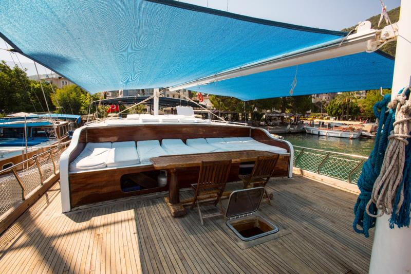 A large cushioned seating area, sunbathing area & sunbathing cushions are available on the deck in sufficient quantity.