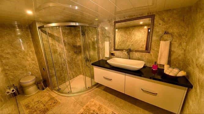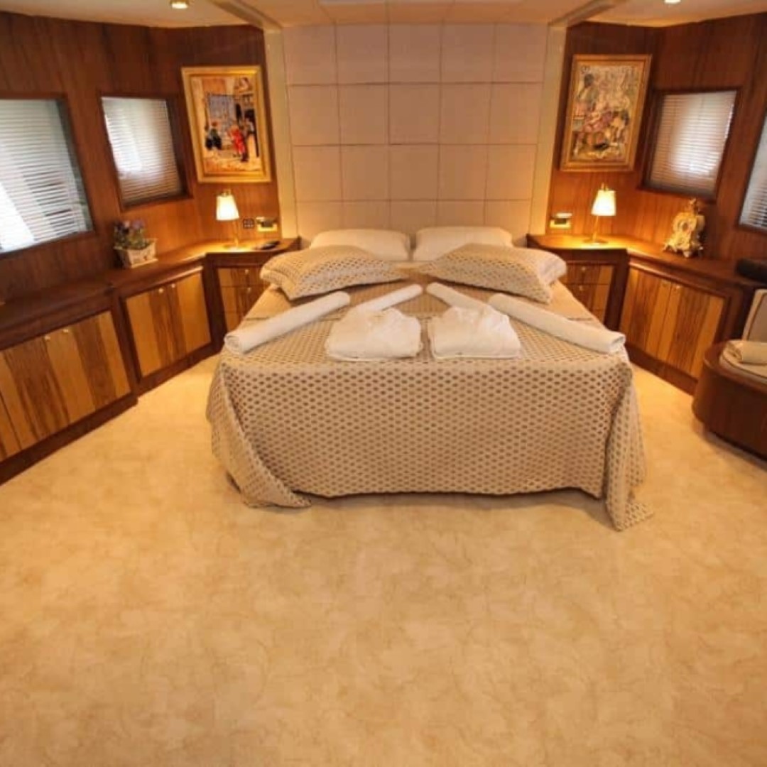 1 master, 1 VIP and 2 double cabins accommodate up to 8 guests in effortless style. All cabins have a TV, hairdryer, air conditioning and a