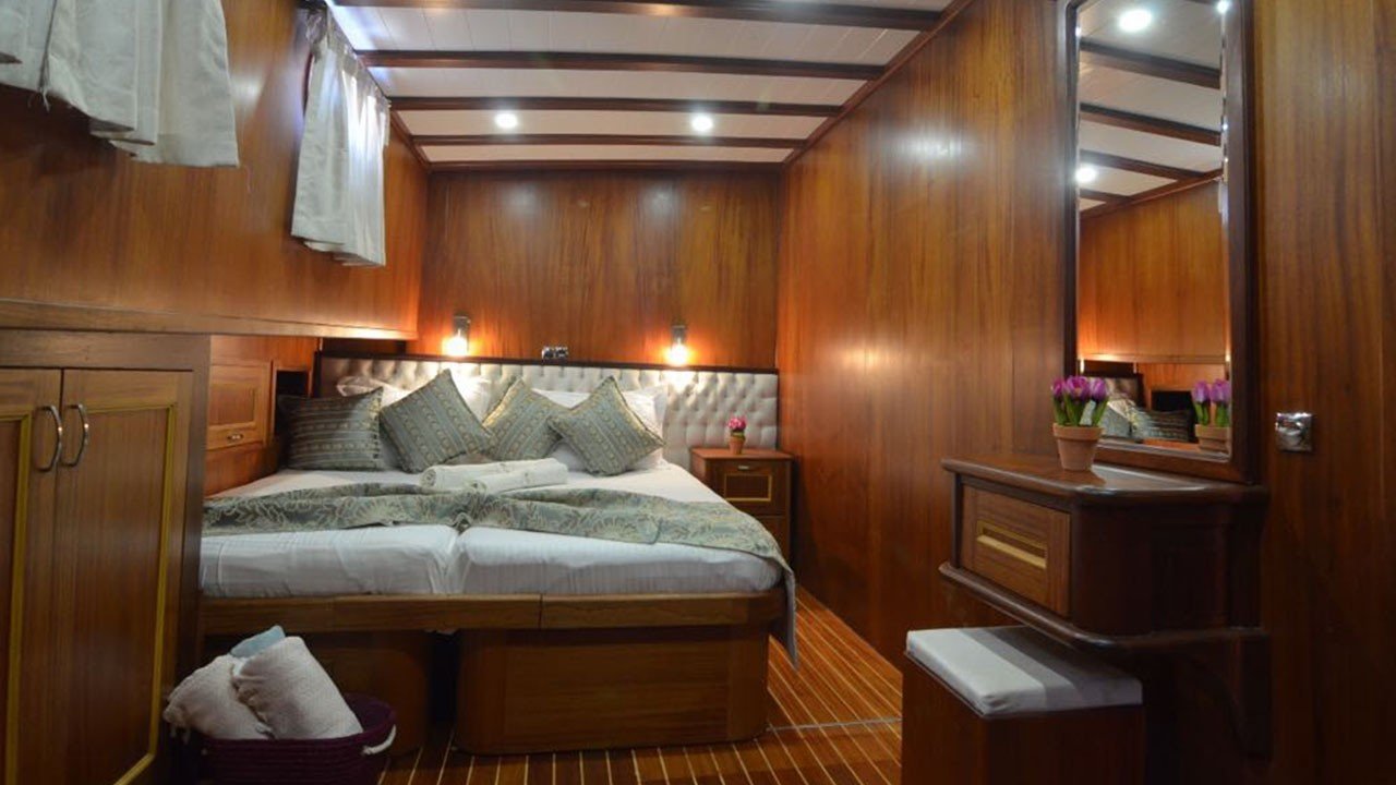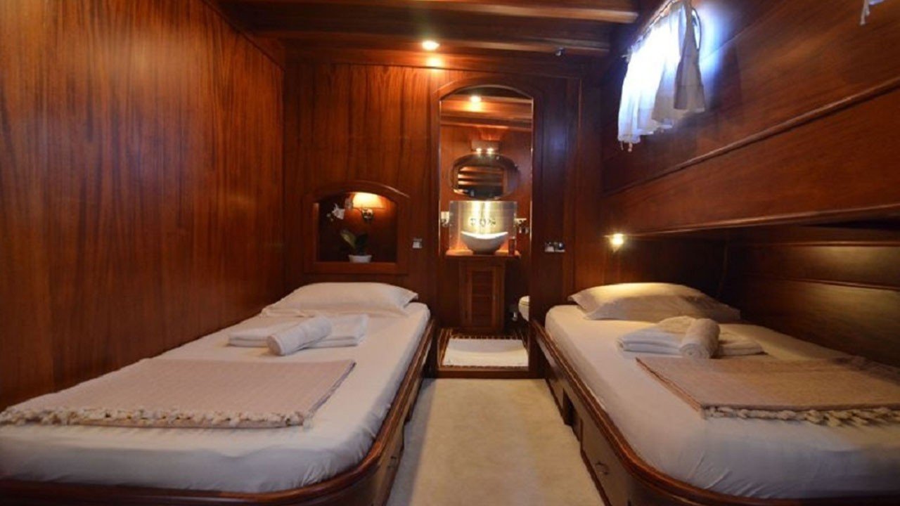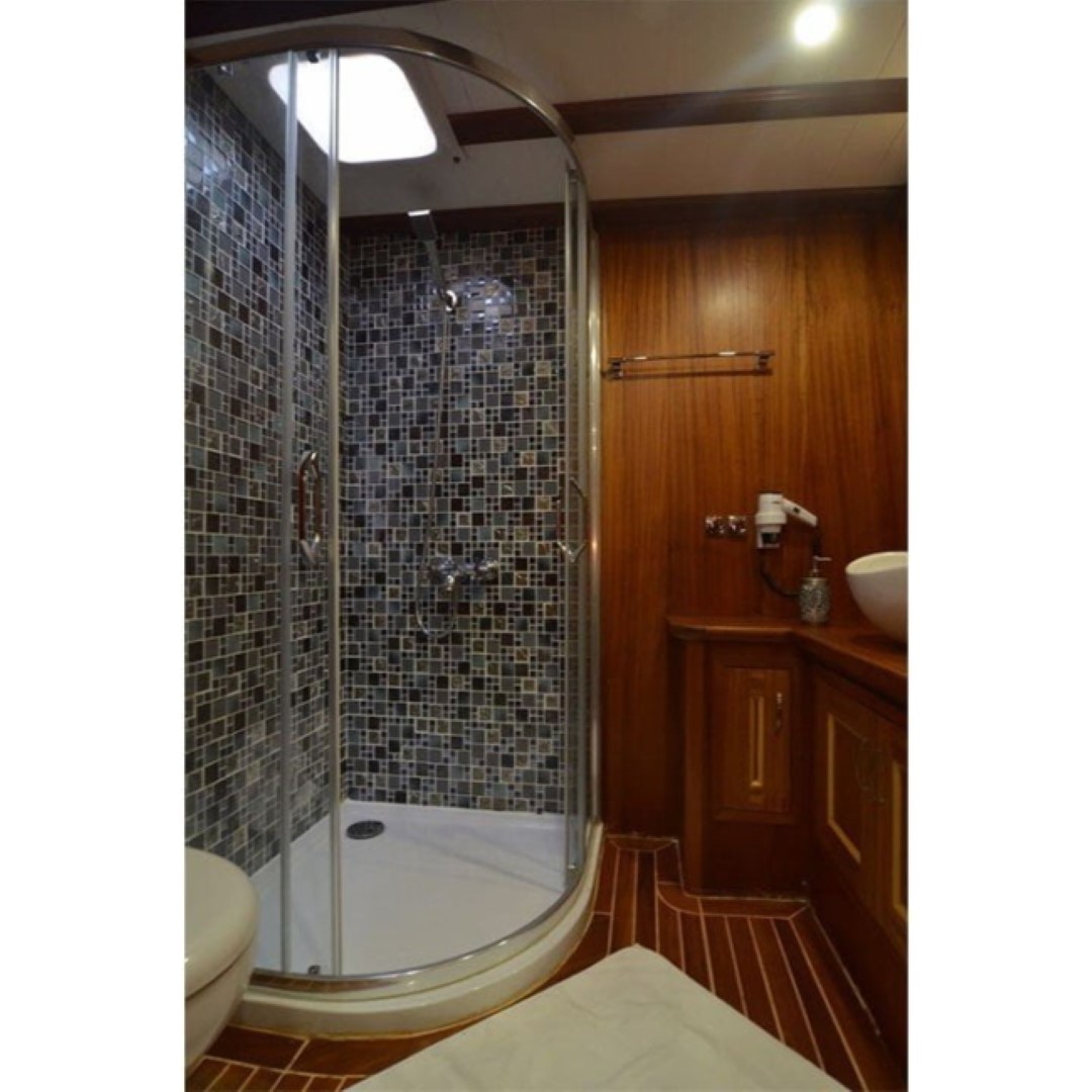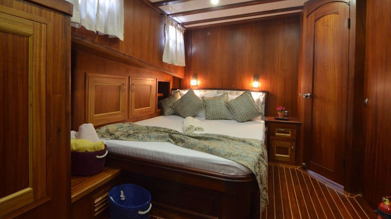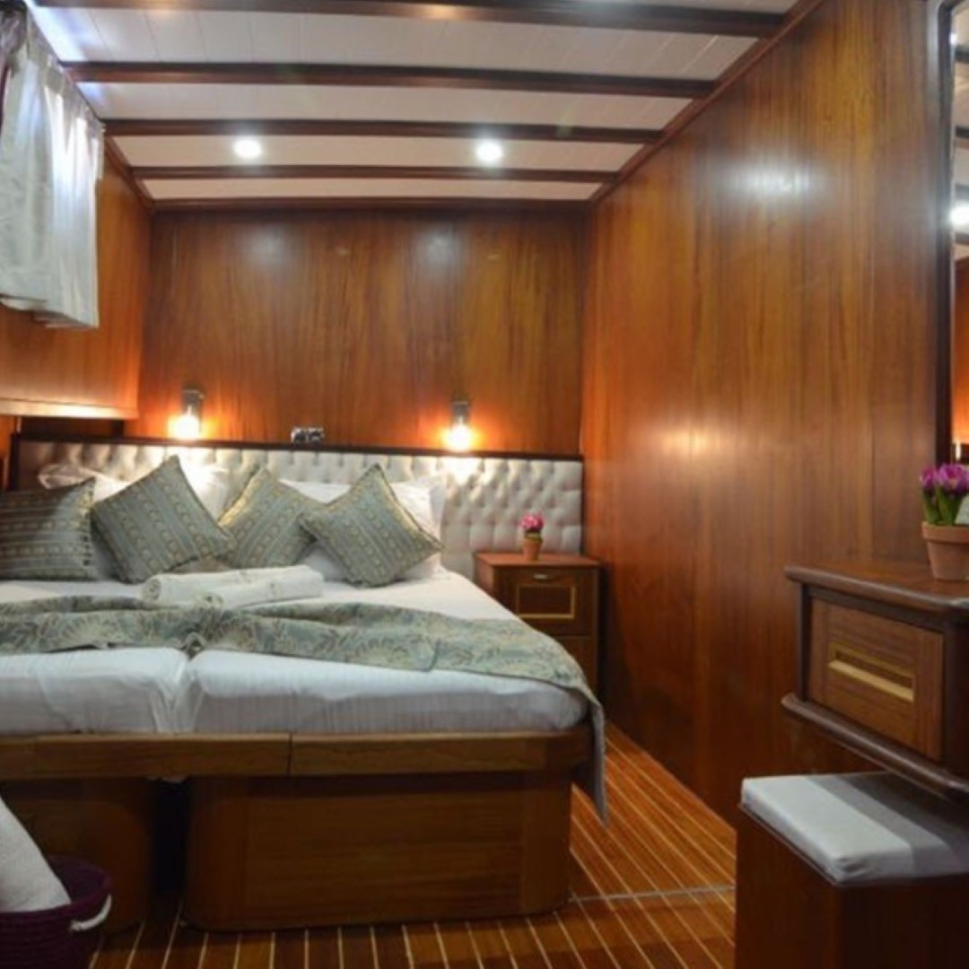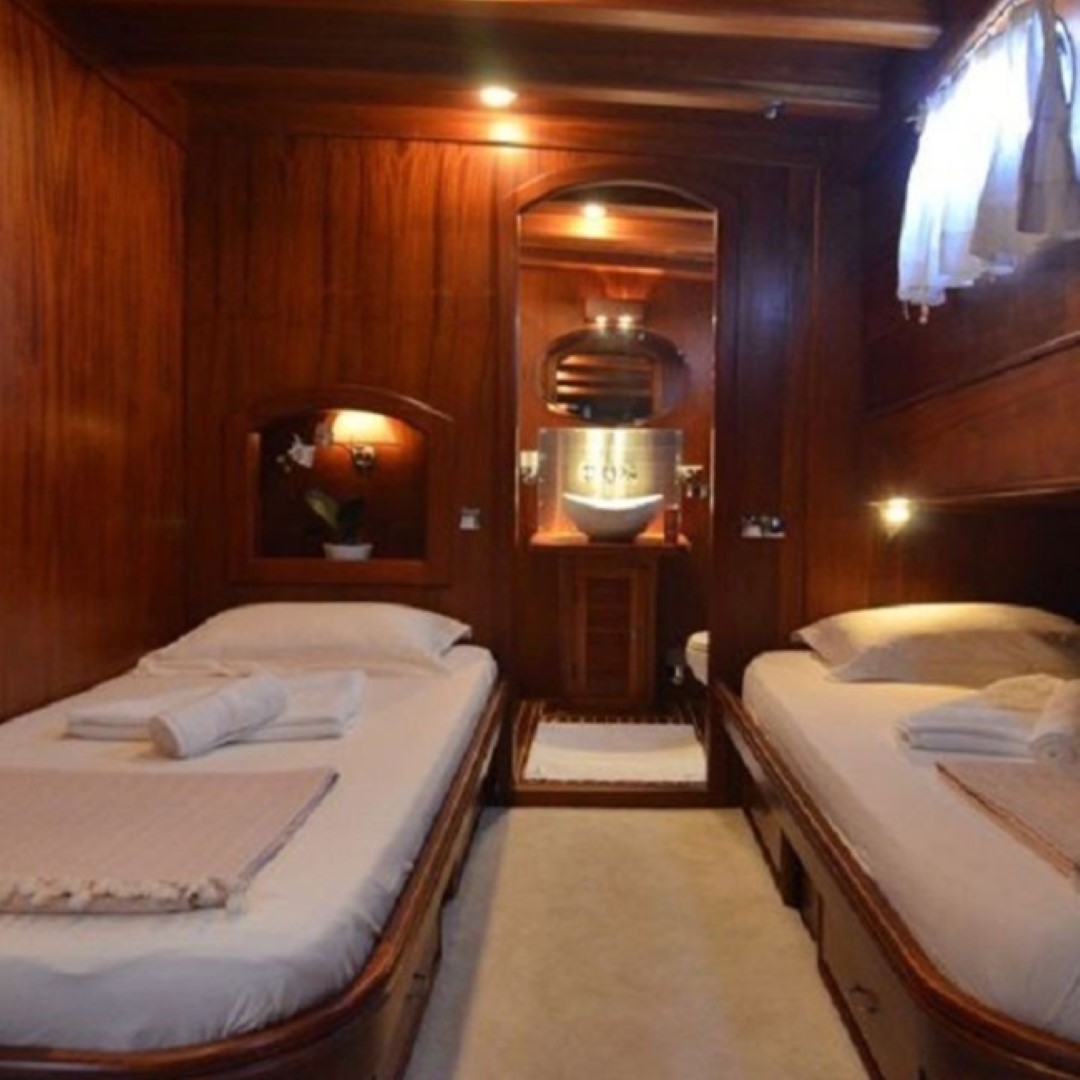 It has a total capacity of 8 guests, 2 Double Cabins and 2 Convertible Twin Cabins. Our cabins are large, spacious and modern, with A / C, Shower and WC.