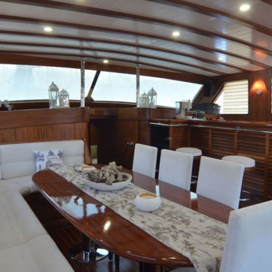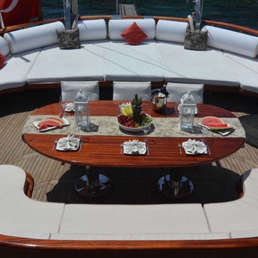 Built in 2003 with a length of 30 meters and a width of 6.60 meters, the Smyrna Gulet underwent a modern renovation in 2010 and took its current form.