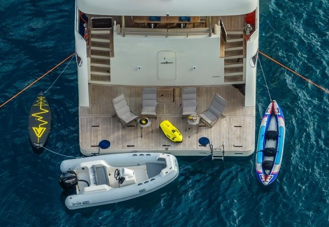 For those who love water sports, TanWay offers a wide range of activities. Guests can enjoy a single kayak, paddle board, 2 ringos, banana boat, adult water skiing, Sea Bob, as well as snorkeling gear, fins, and amateur fishing equipment. With a cruising speed of 10 knots, TanWay provides a safe and enjoyable journey, making it an ideal option for travelers looking to combine luxury, adventure, and relaxation on the sea.