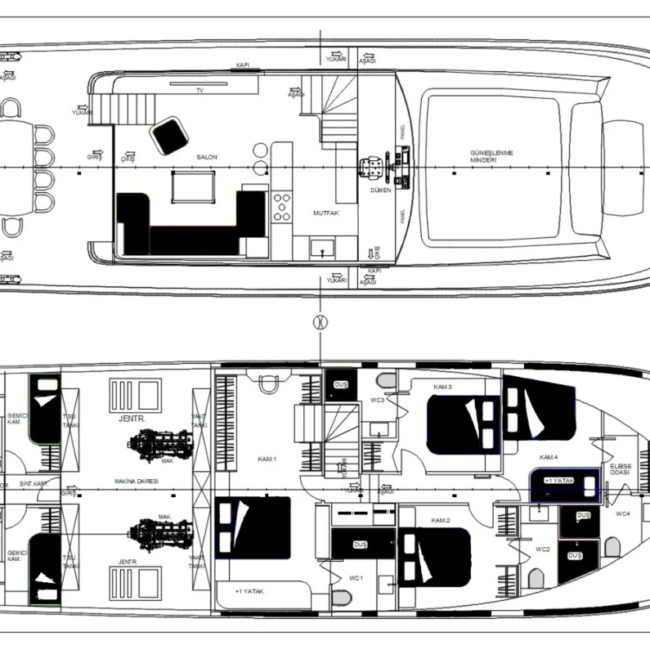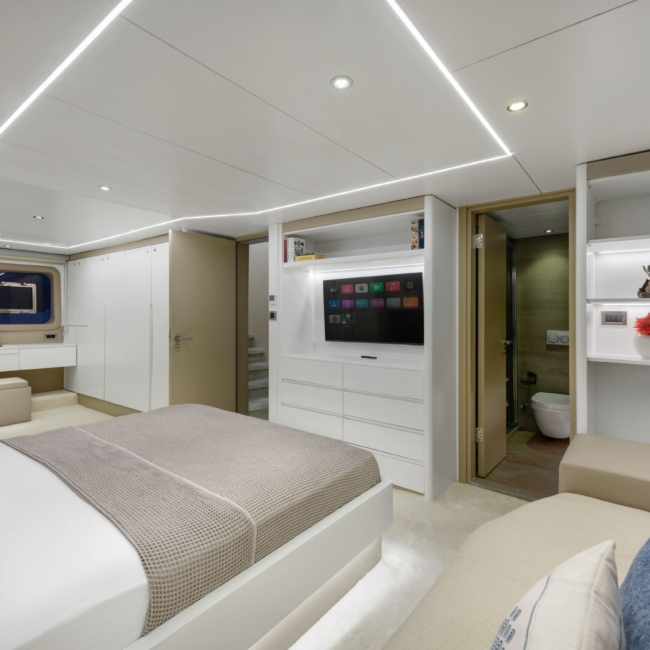 TanWay features a total of 4 cabins, including 1 Master, 2 Double, and 1 Triple cabin, accommodating up to 9 guests. Each cabin is tastefully decorated and equipped with all the essentials to ensure maximum comfort. Thanks to the 24-hour air conditioning system, guests can enjoy a cool and pleasant indoor environment throughout their journey.