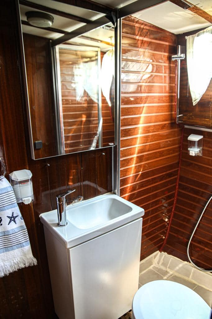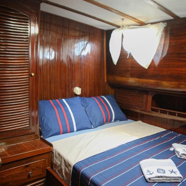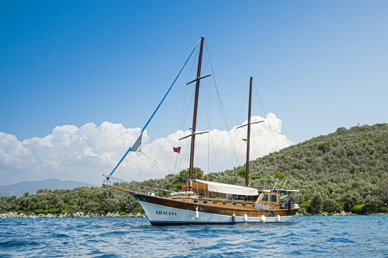 Gulet Thalassa is a boat bound to the port of Göcek. Our boat, which has standard equipment, has 4 cabins in total. Maximum accommodation capacity is 8 people. It is 18.10 meters long and 5.90 meters wide. There is a crew on our boat, which provides blue cruise service with the Turkish flag.