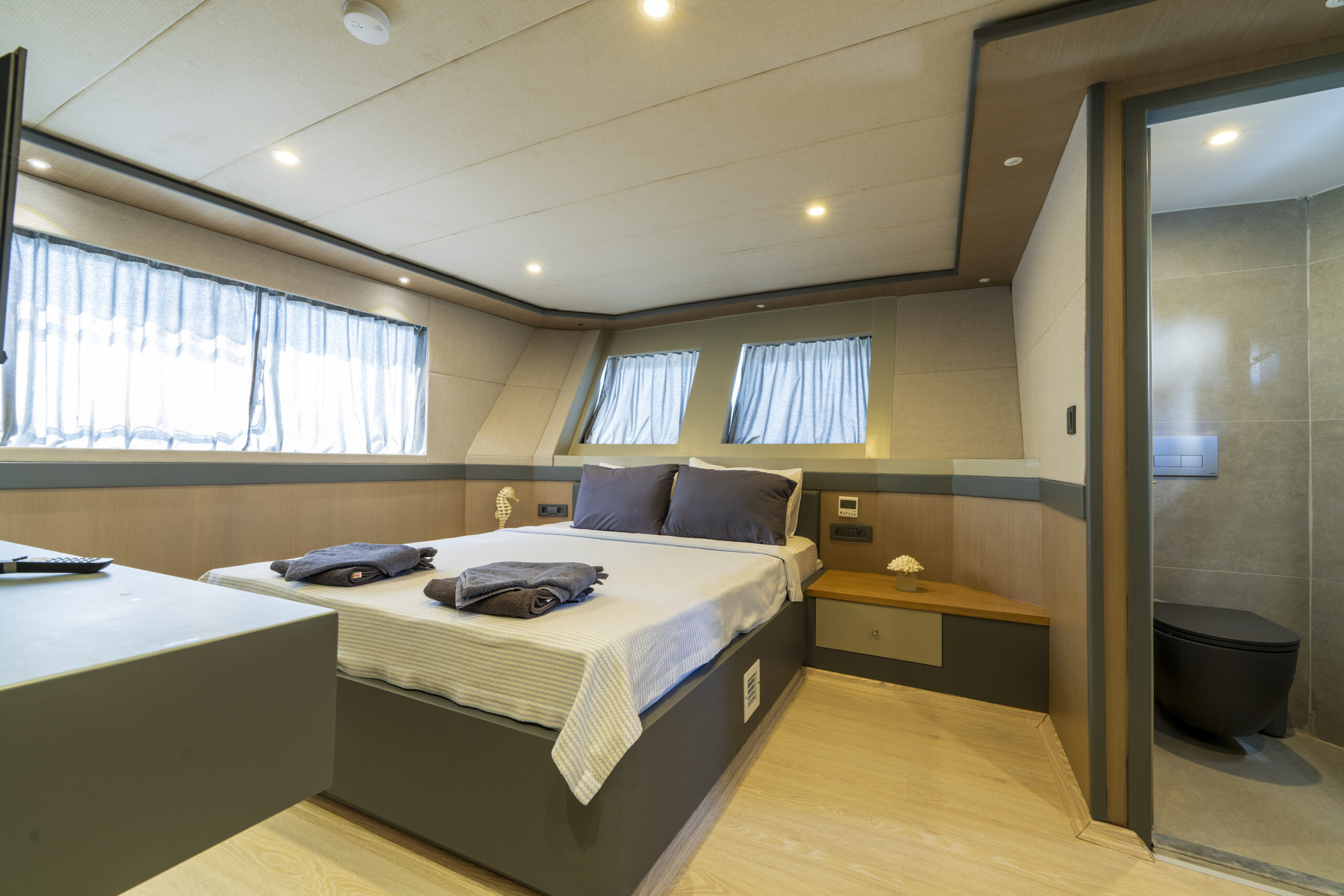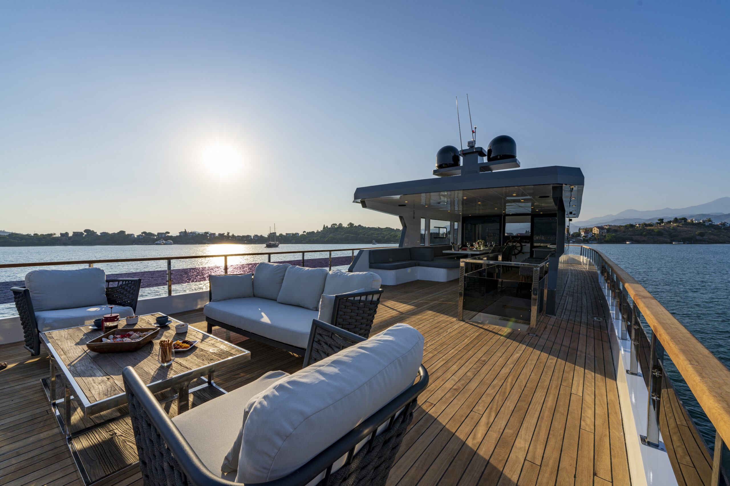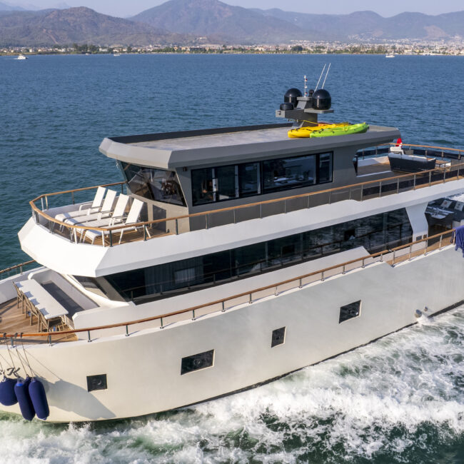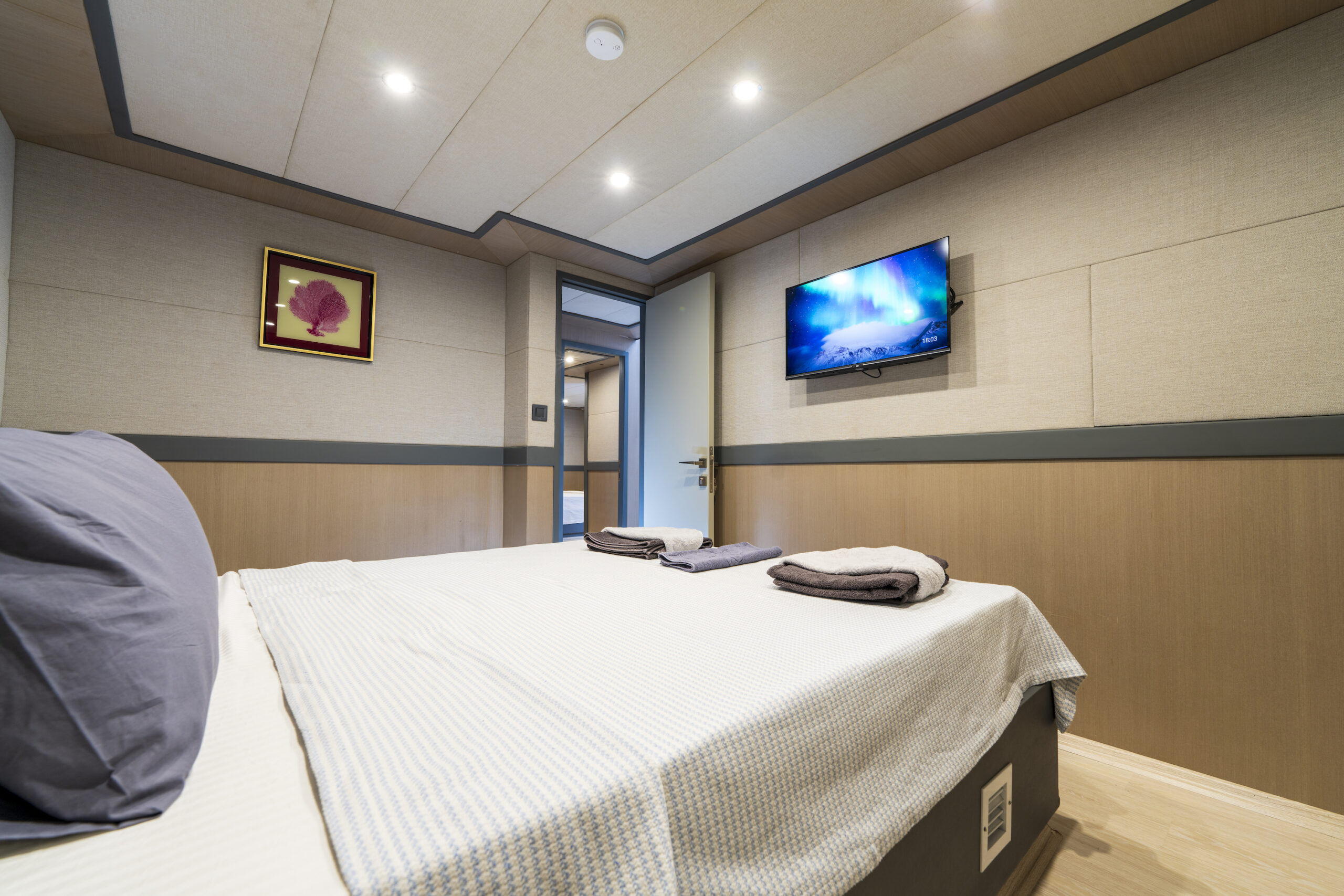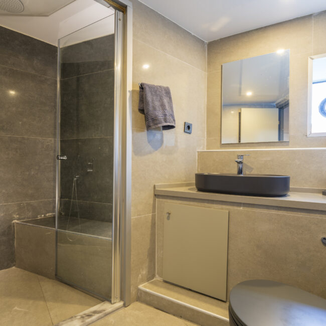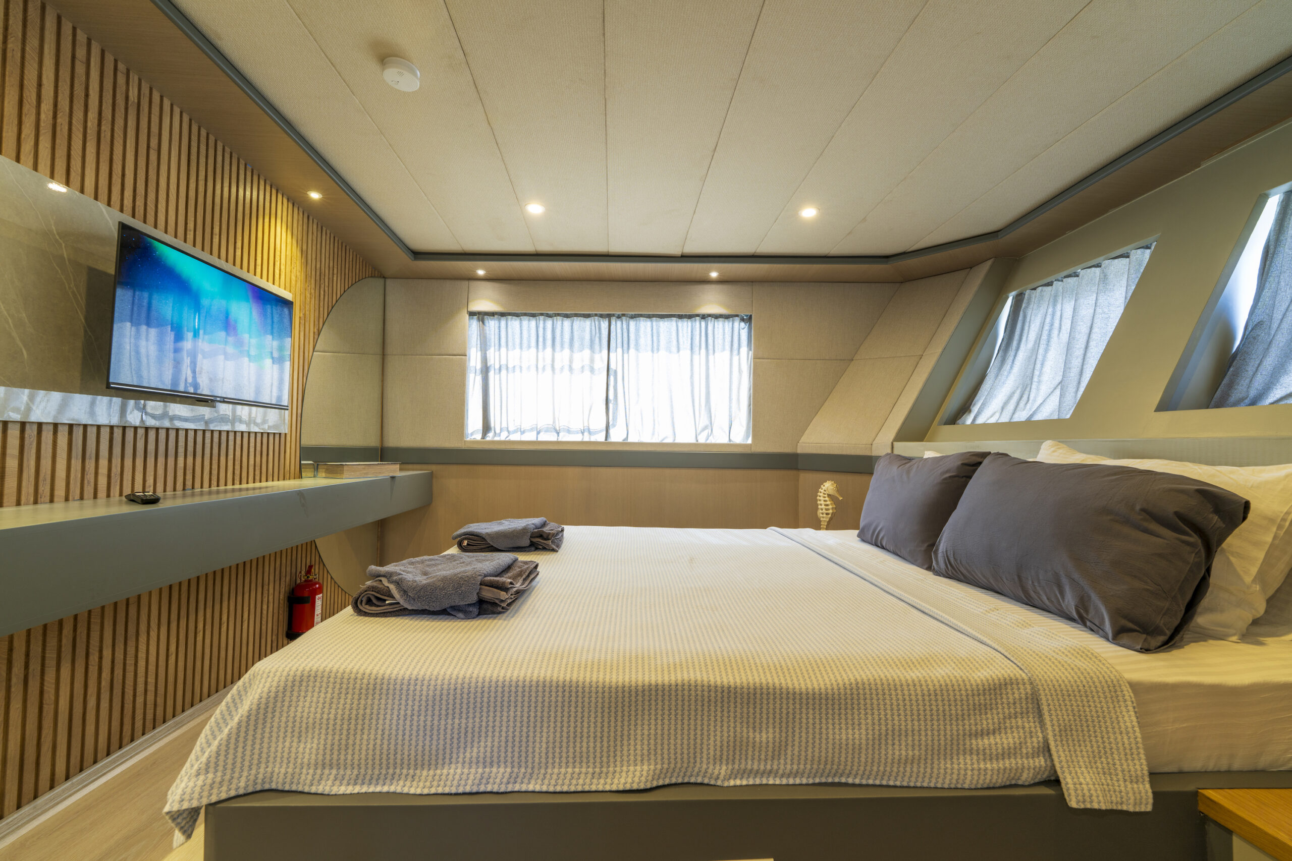 Trawler Albatros Explorer is a brand new trawler built in 2023; It is 26 meters long and 7.20 wide. Our yacht has 6 cabins, 1 masters, 4 double, and 1 twin cabin, each more stylish and comfortable than the other, with its own shower, WC and air conditioning. Separate living areas for the crew, a fully equipped kitchen, indoor and outdoor dining areas, relaxation areas, and an American bar are available. On the upper side of our yacht, there are large and comfortable sun beds where all our guests can sunbathe. You can taste our meals carefully prepared in our fully equipped kitchen at our elegant table on the deck or in the saloon. In order for our guests to have a better time, the music system, TV and satellite are located in the living room. In addition, there are options such as ice machine, coffee machine, playing cards, backgammon and okay on the yacht. The necessary equipment for fishing and water toys will always be available for your use to make your holiday more enjoyable. You can experience a holiday beyond your expectations with its experienced and friendly team.