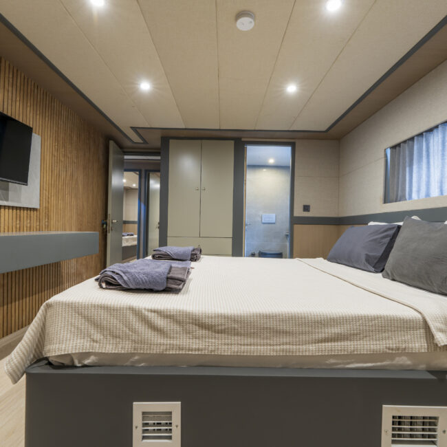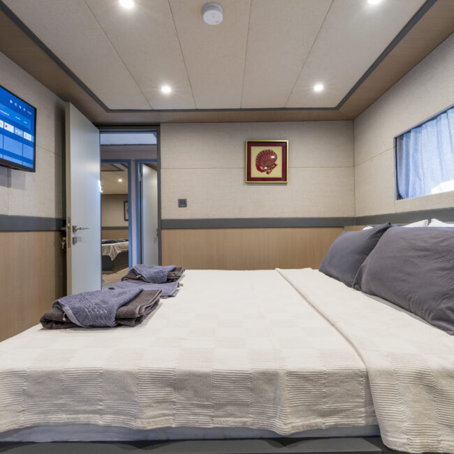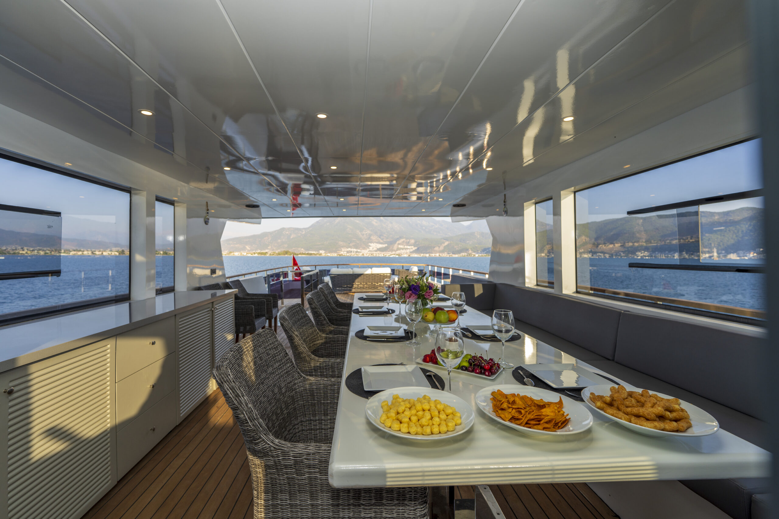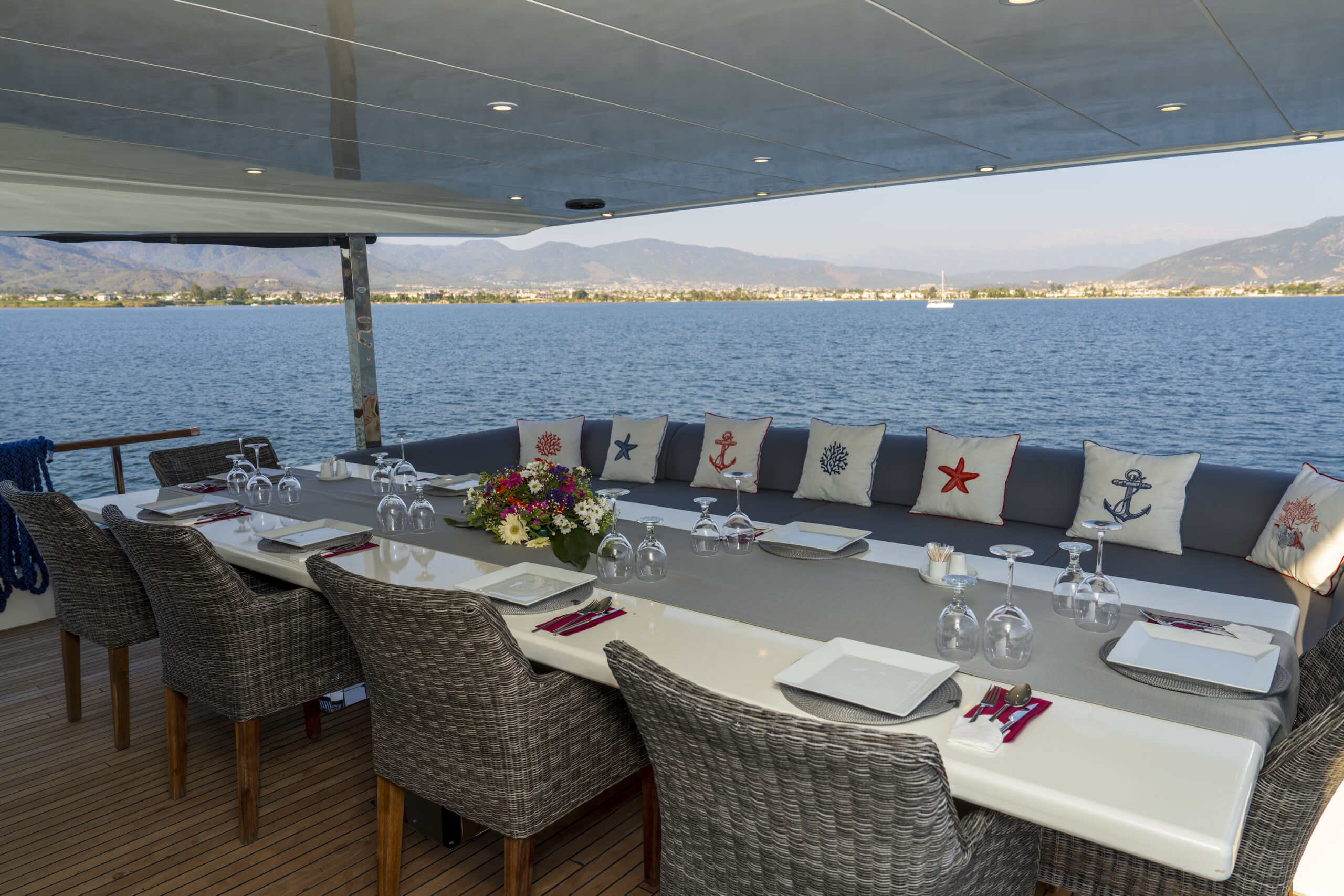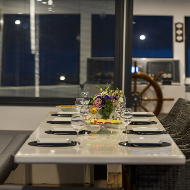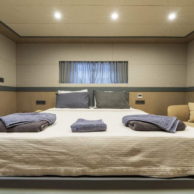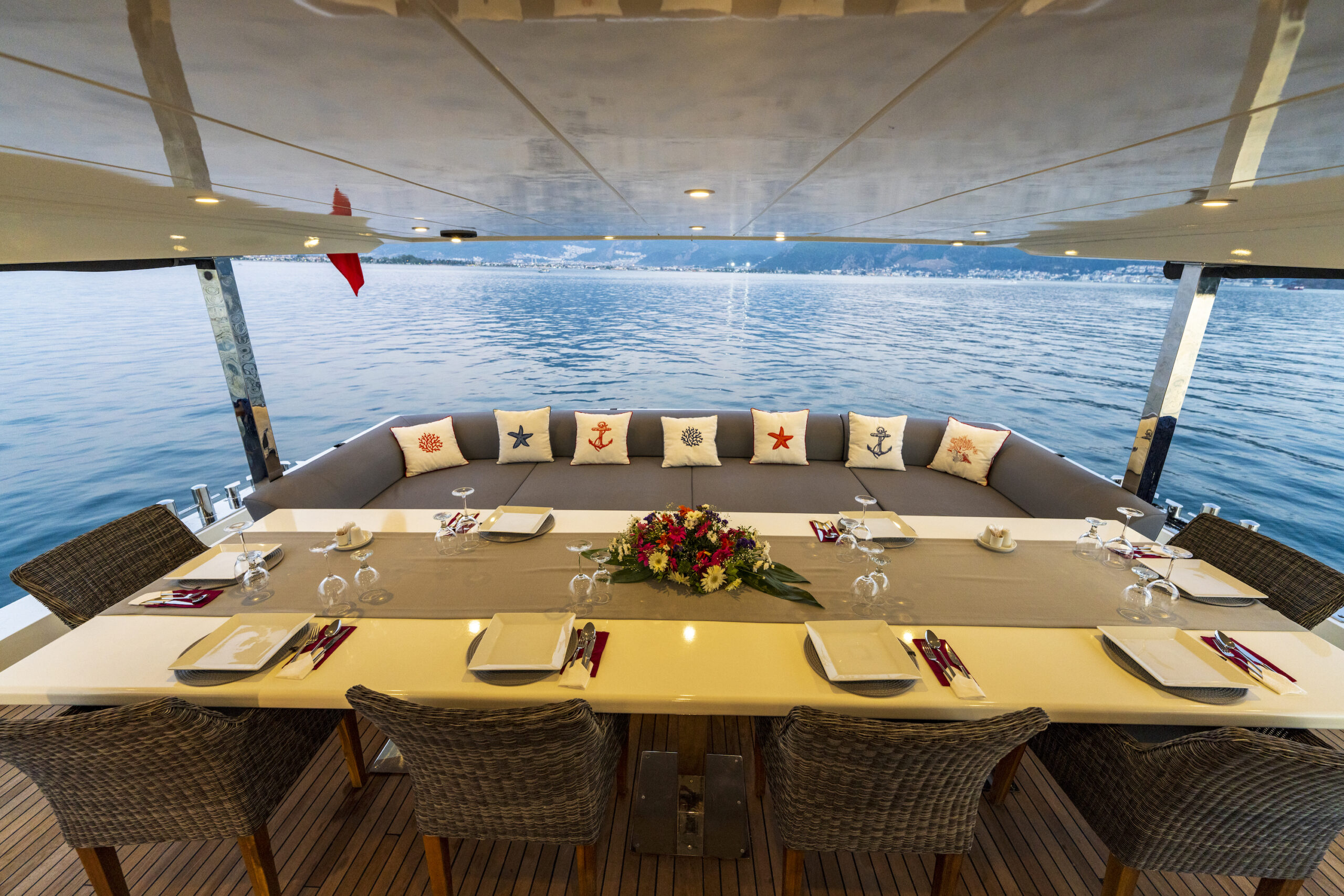 Trawler Albatros Explorer is a brand new trawler built in 2023; It is 26 meters long and 7.20 wide. Our yacht has 6 cabins, 1 masters, 4 double, and 1 twin cabin, each more stylish and comfortable than the other, with its own shower, WC and air conditioning. Separate living areas for the crew, a fully equipped kitchen, indoor and outdoor dining areas, relaxation areas, and an American bar are available. On the upper side of our yacht, there are large and comfortable sun beds where all our guests can sunbathe. You can taste our meals carefully prepared in our fully equipped kitchen at our elegant table on the deck or in the saloon. In order for our guests to have a better time, the music system, TV and satellite are located in the living room. In addition, there are options such as ice machine, coffee machine, playing cards, backgammon and okay on the yacht. The necessary equipment for fishing and water toys will always be available for your use to make your holiday more enjoyable. You can experience a holiday beyond your expectations with its experienced and friendly team.