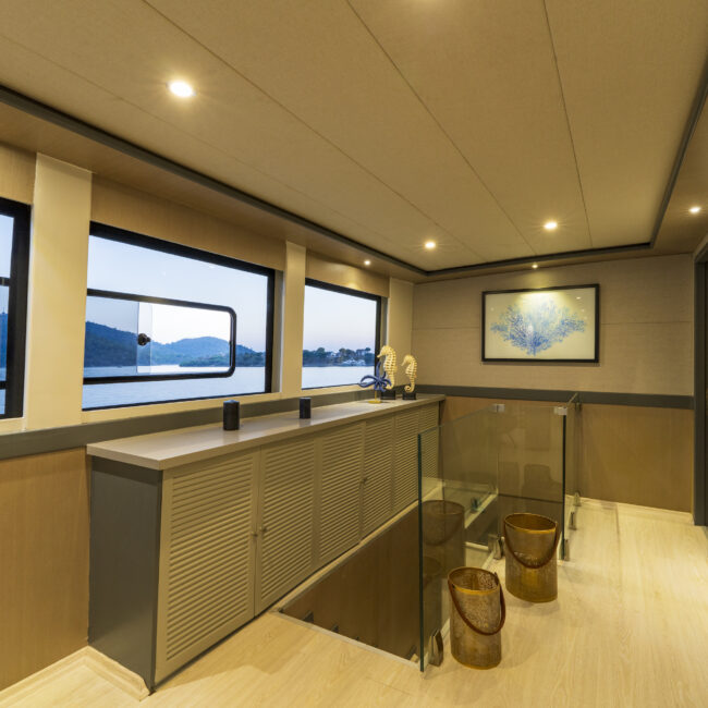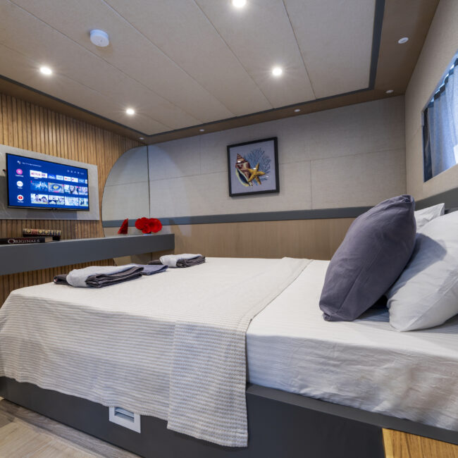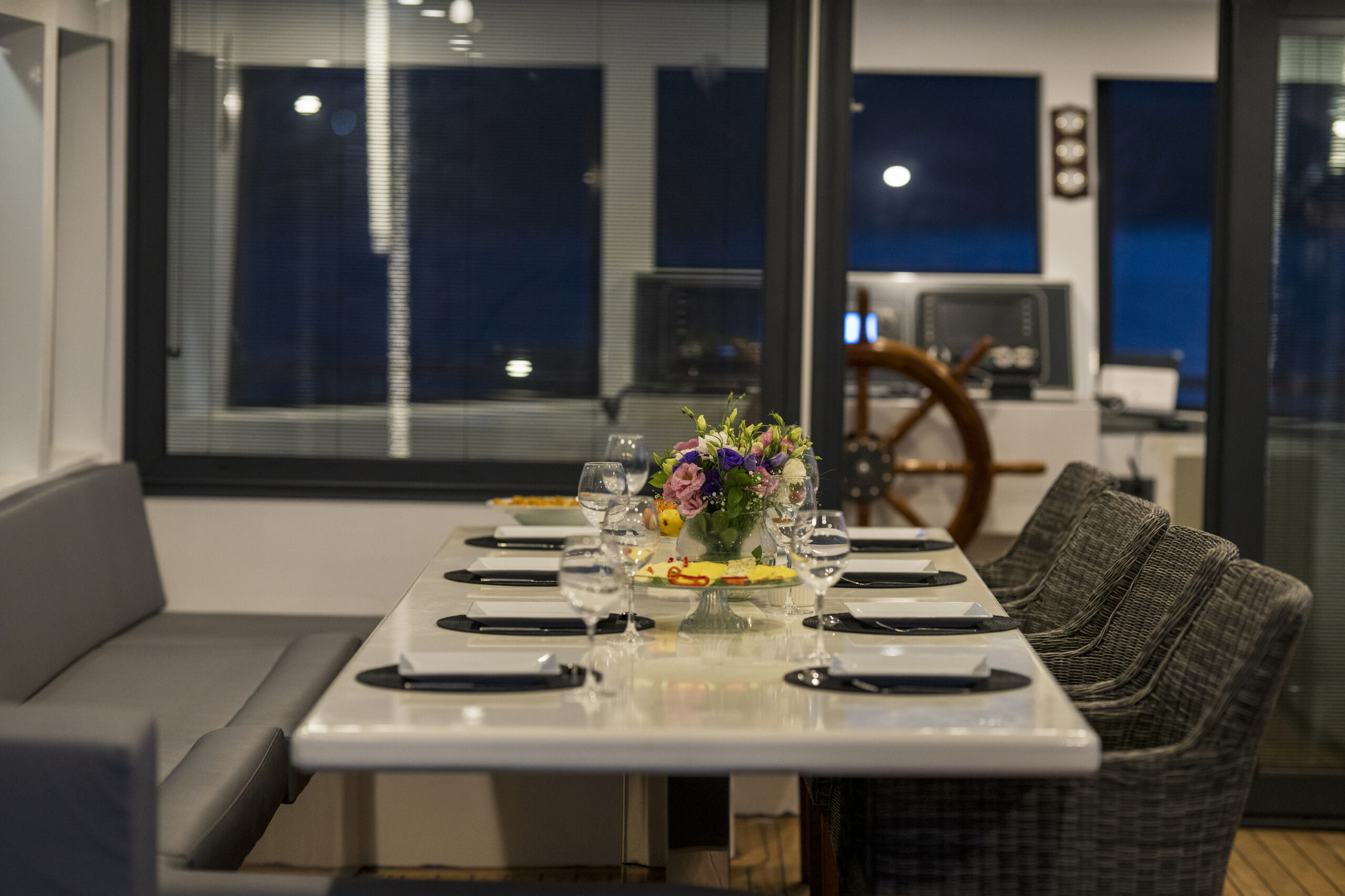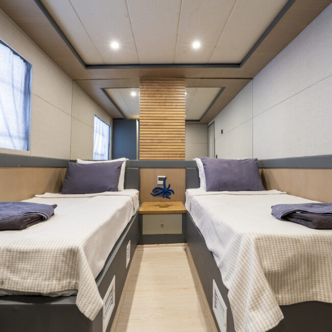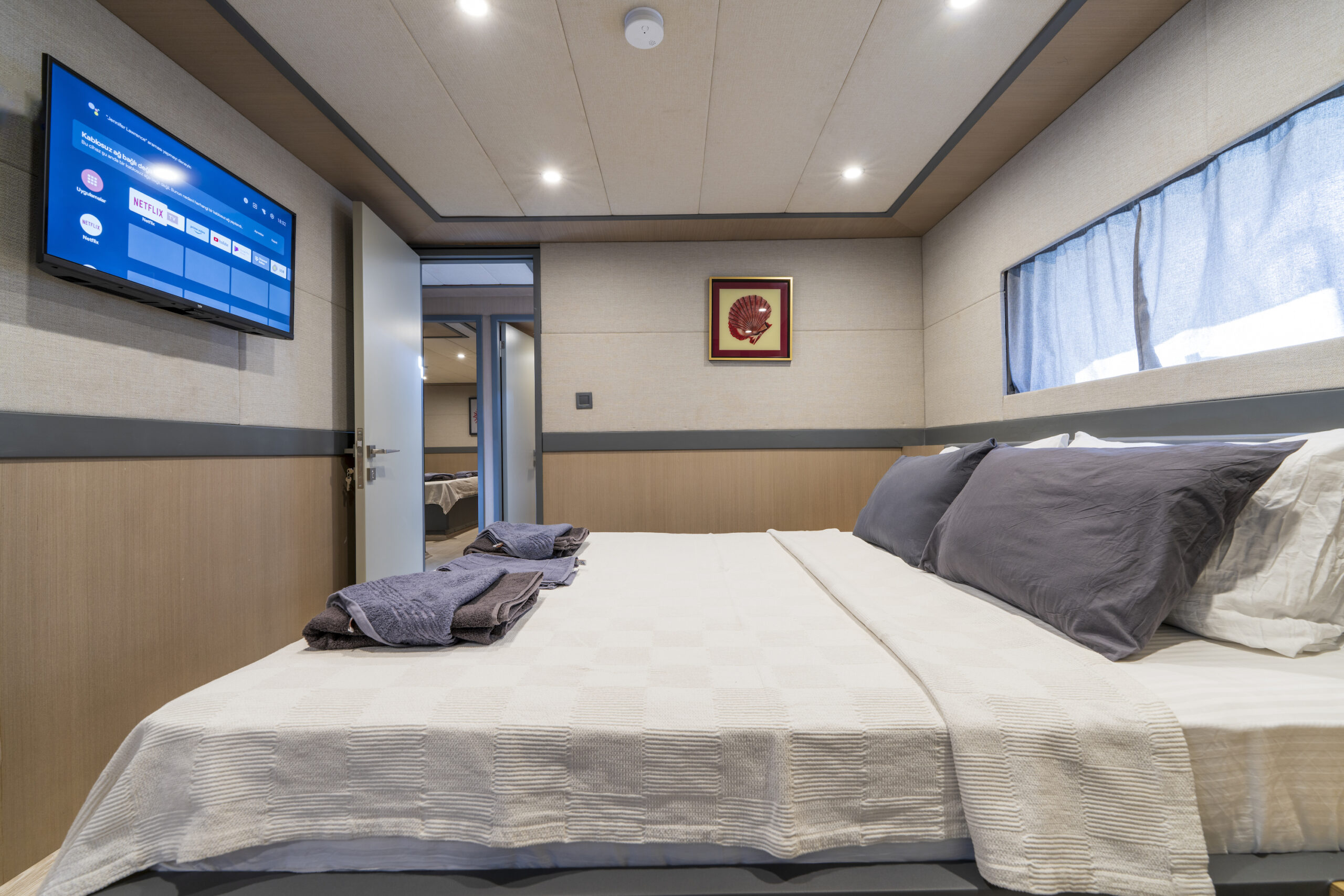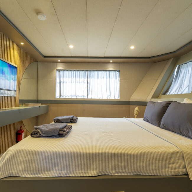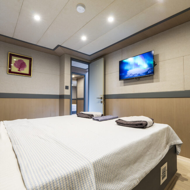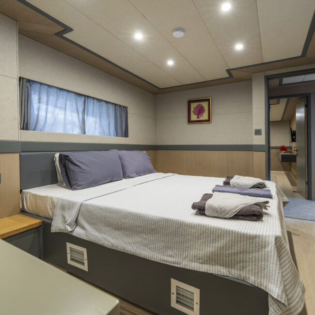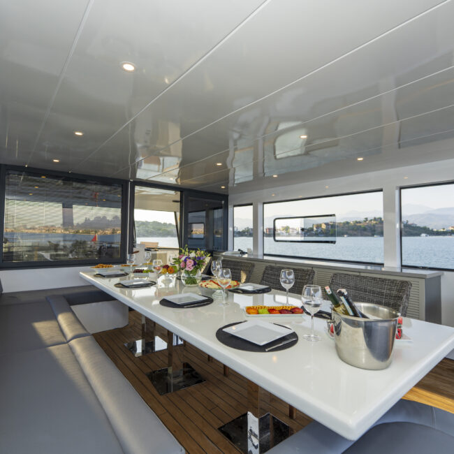 Trawler Albatros Explorer is a brand new trawler built in 2023; It is 26 meters long and 7.20 wide. Our yacht has 6 cabins, 1 masters, 4 double, and 1 twin cabin, each more stylish and comfortable than the other, with its own shower, WC and air conditioning. Separate living areas for the crew, a fully equipped kitchen, indoor and outdoor dining areas, relaxation areas, and an American bar are available. On the upper side of our yacht, there are large and comfortable sun beds where all our guests can sunbathe. You can taste our meals carefully prepared in our fully equipped kitchen at our elegant table on the deck or in the saloon. In order for our guests to have a better time, the music system, TV and satellite are located in the living room. In addition, there are options such as ice machine, coffee machine, playing cards, backgammon and okay on the yacht. The necessary equipment for fishing and water toys will always be available for your use to make your holiday more enjoyable. You can experience a holiday beyond your expectations with its experienced and friendly team.