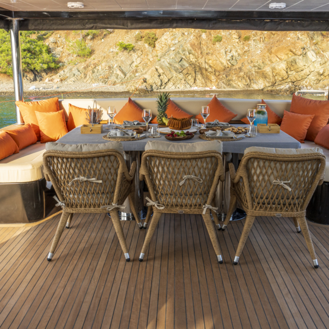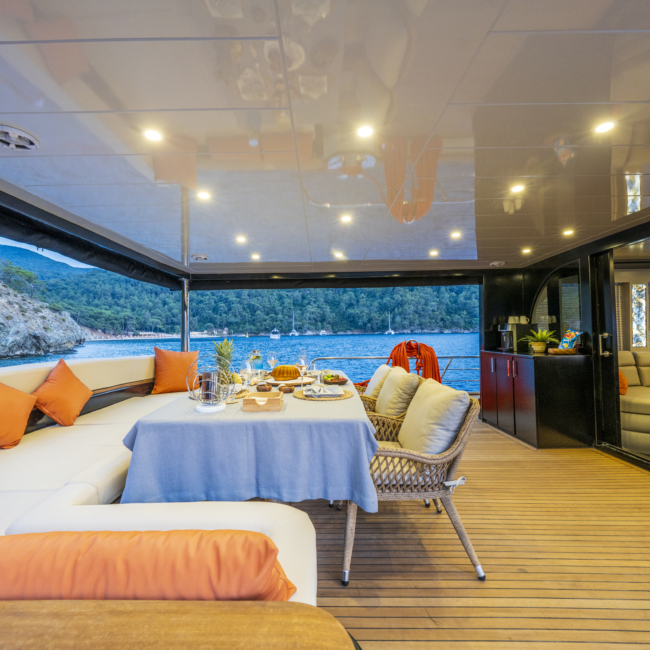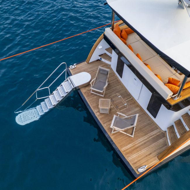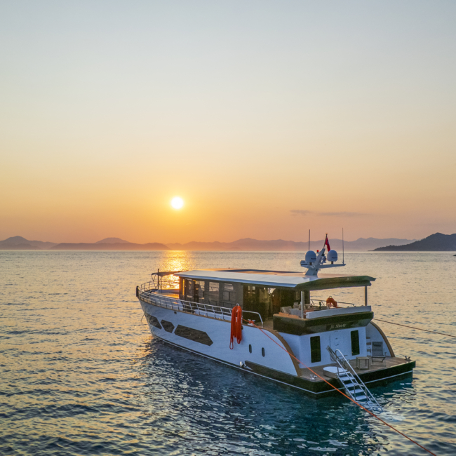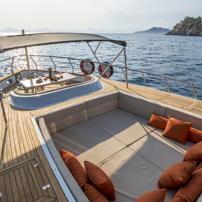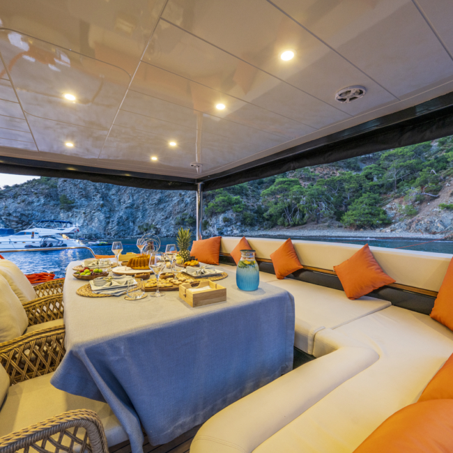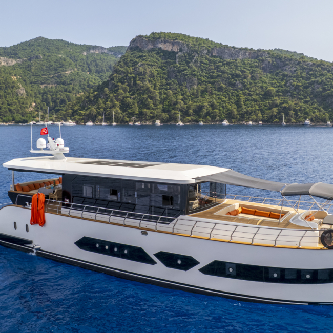 JUNIOR SİMAY 2024 trawler type boat, which is 21 meters long and 6 meters wide, offers accommodation for up to 8 people with its 3 cabins. If you want to have an unforgettable blue cruise experience with your family and loved ones,