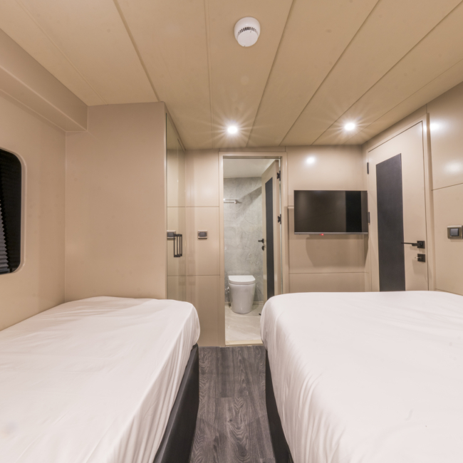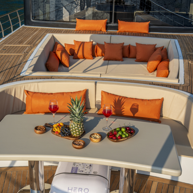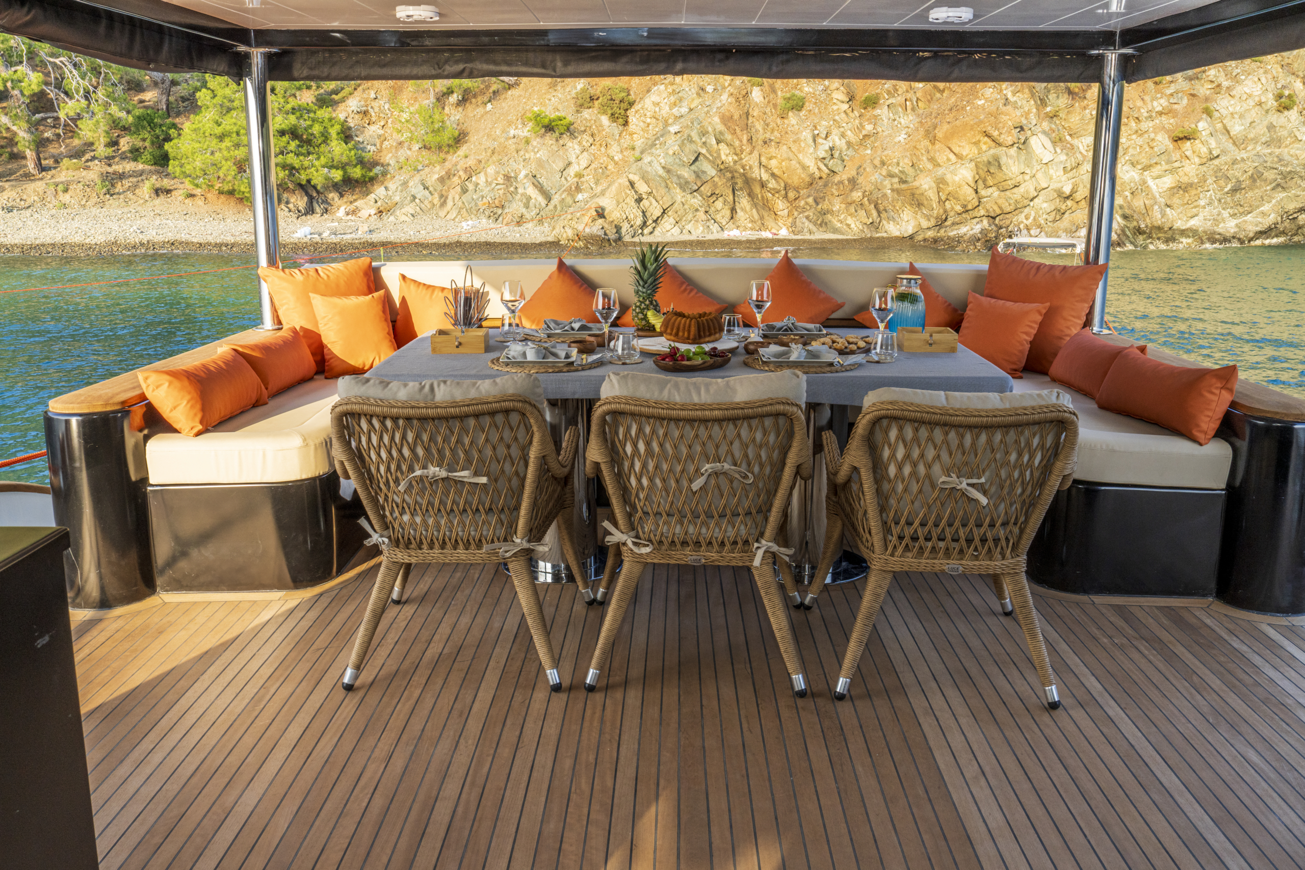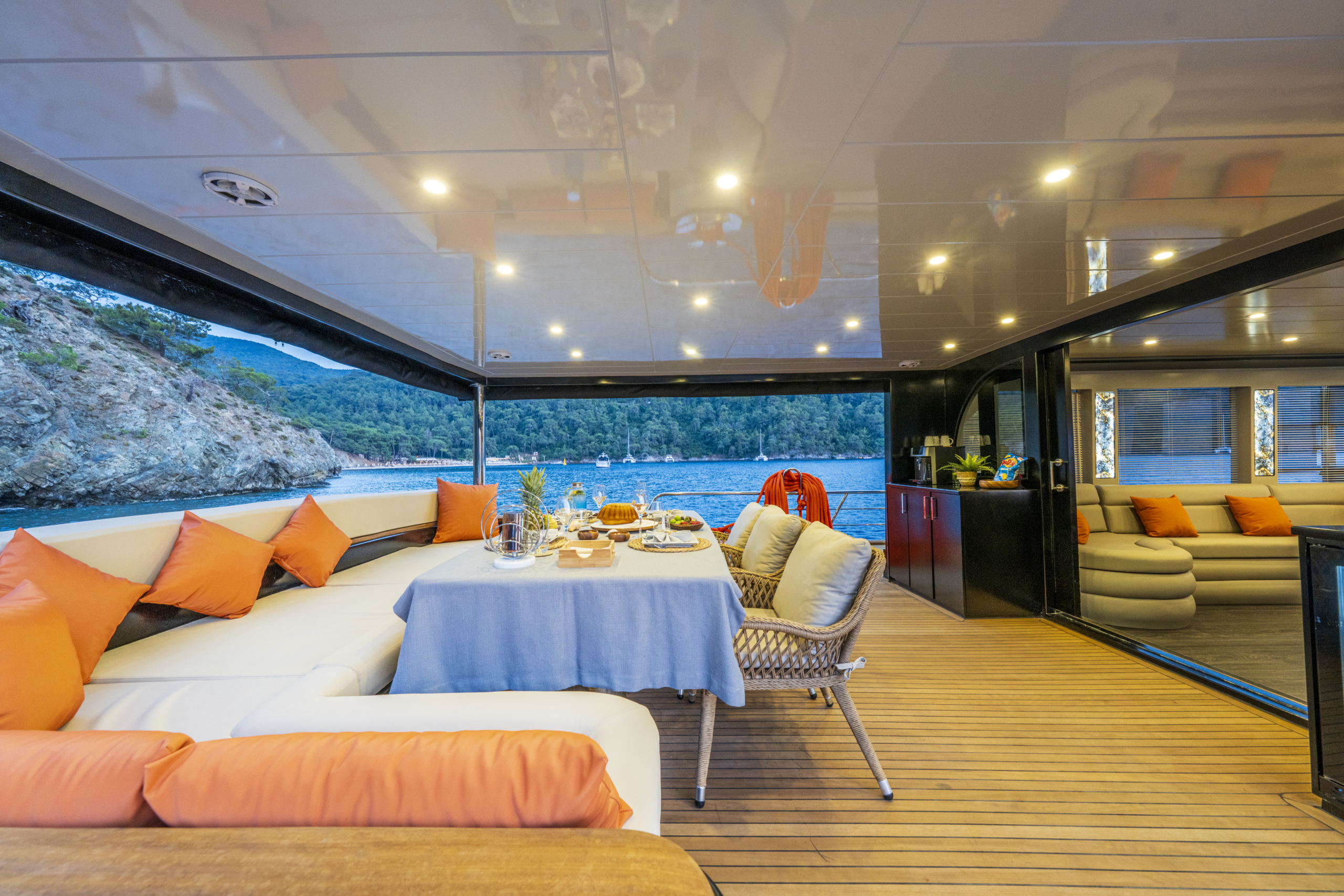 JUNIOR SİMAY 2024 trawler type boat, which is 21 meters long and 6 meters wide, offers accommodation for up to 8 people with its 3 cabins. If you want to have an unforgettable blue cruise experience with your family and loved ones,