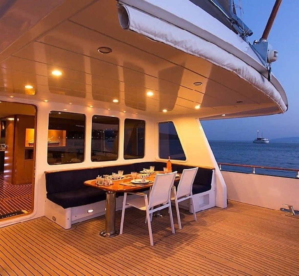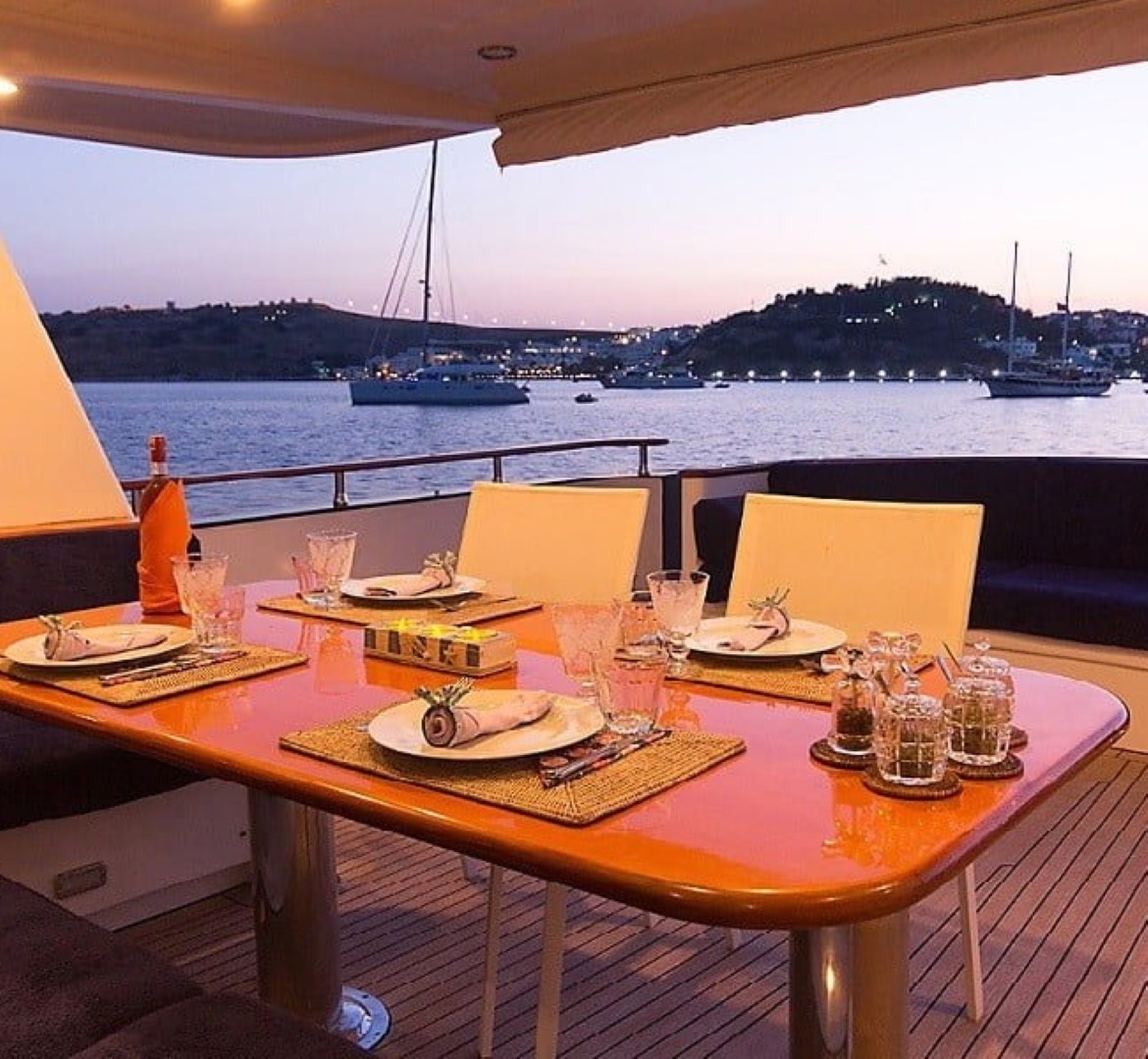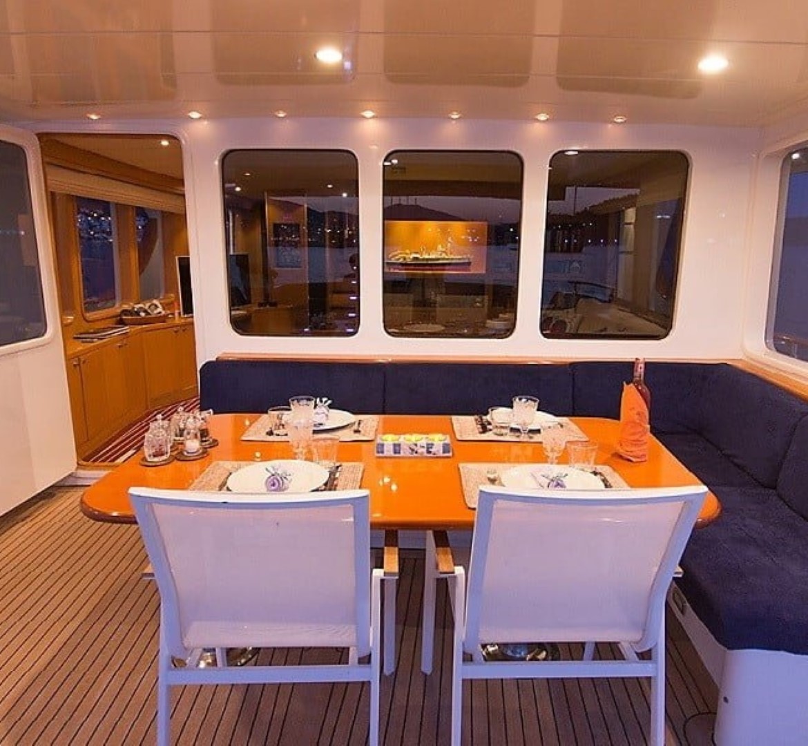 1 captain, 1 cook and 1 sailor will serve you and they will ensure you have a smooth holiday.In our Trawler Explorer motor yacht, TV + Music systemin the saloon , playing cards okey and backgammon is avaliable .