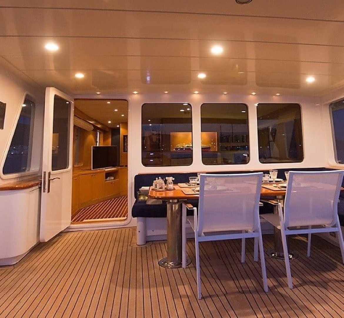 Trawler Troy Explorer, one of our rental motor yachts, is a very comfortable and comfortable motor yacht, 23 meters long.