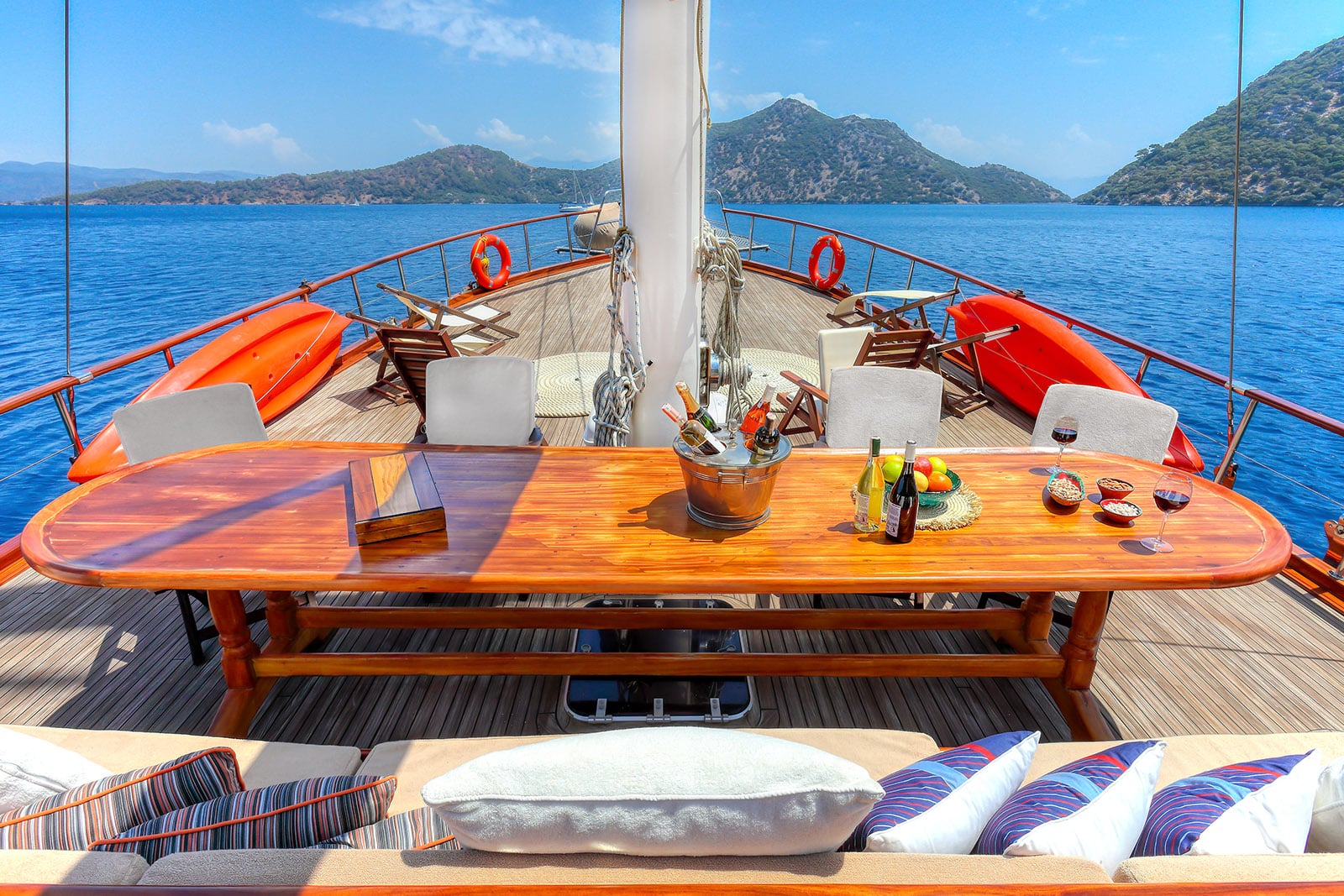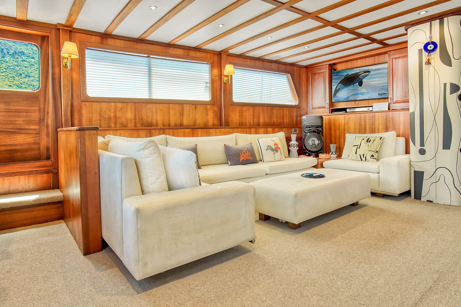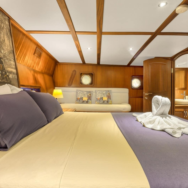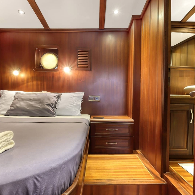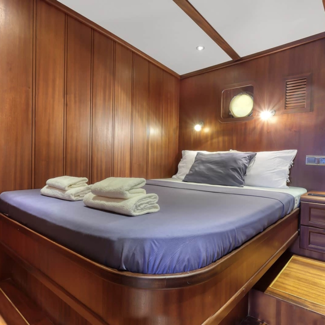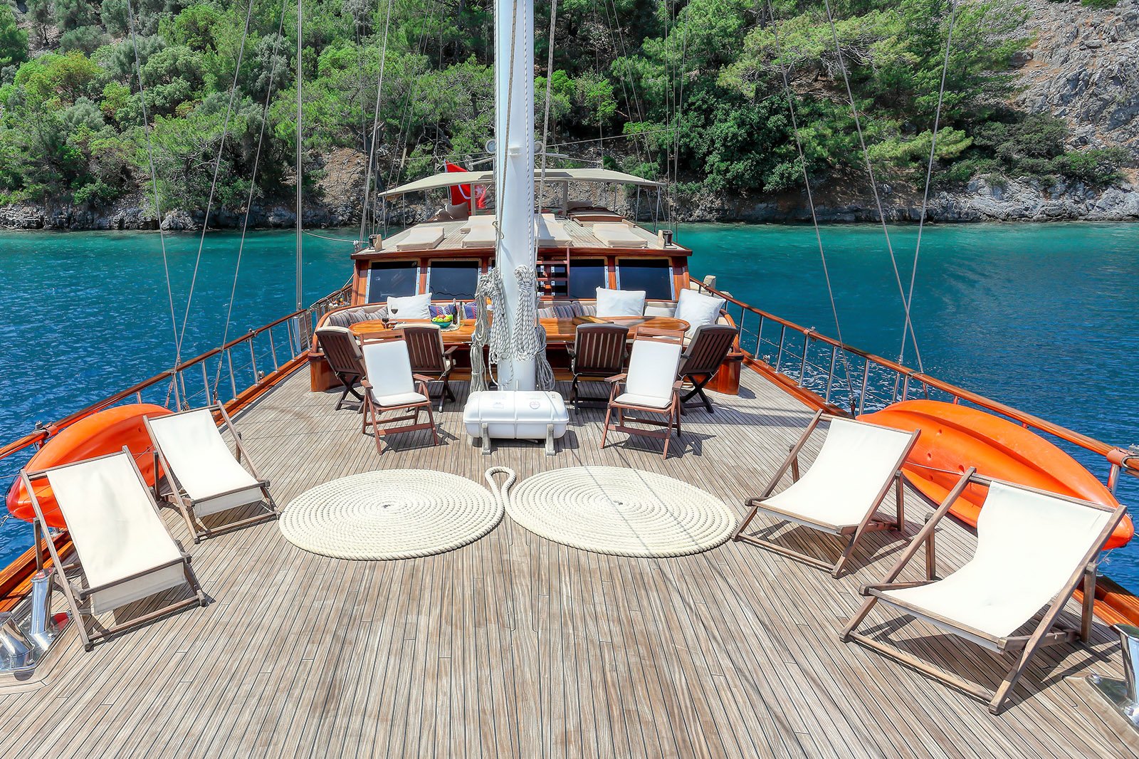 Gulet Tutu is a modern designed yacht where all the details are considered and where you can have a good time during your holiday. 5 cabins in total have 2 masters and 3 double cabins. Its length is 25 meters and its length is 7 meters. There is 4 crew on our boat, which provides blue cruise service with the Turkish flag. Completed in 2005, the boat was renewed in 2022.
