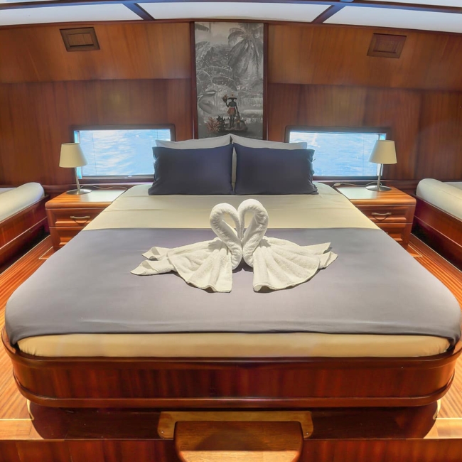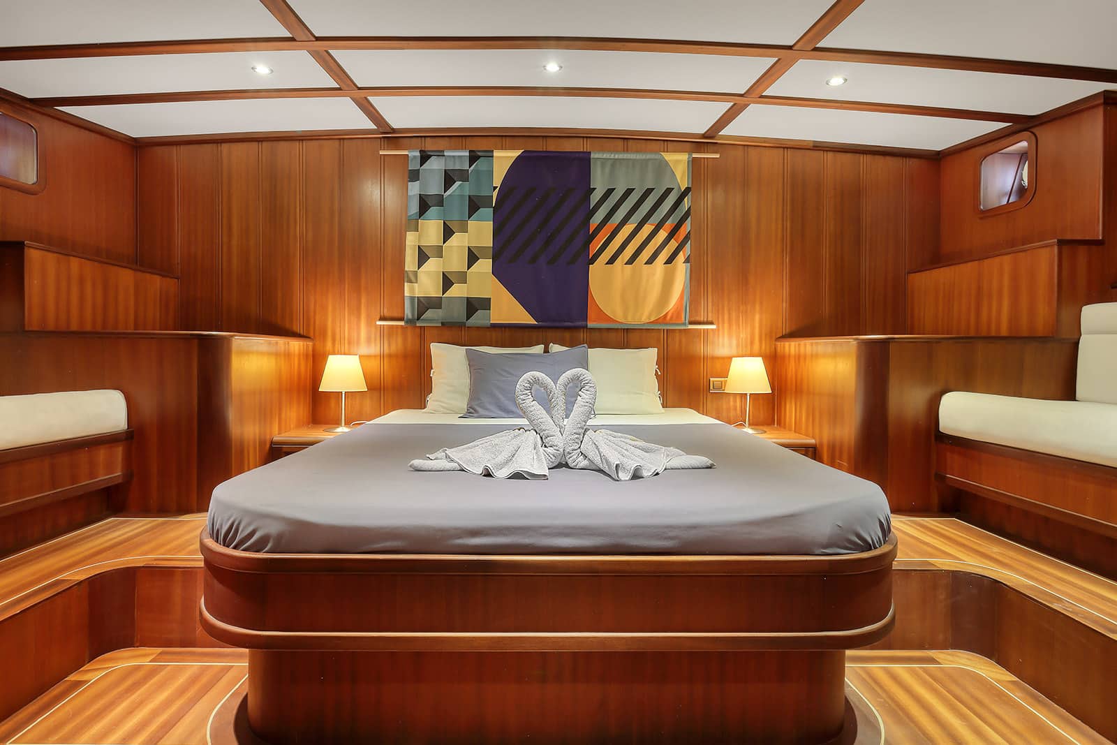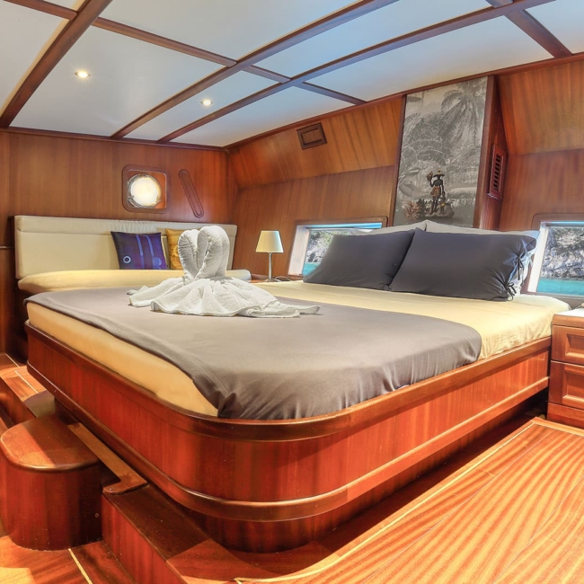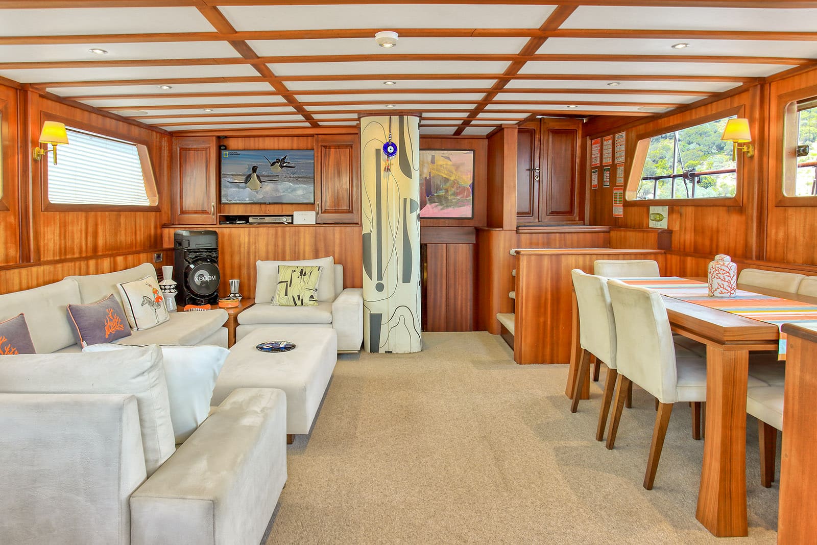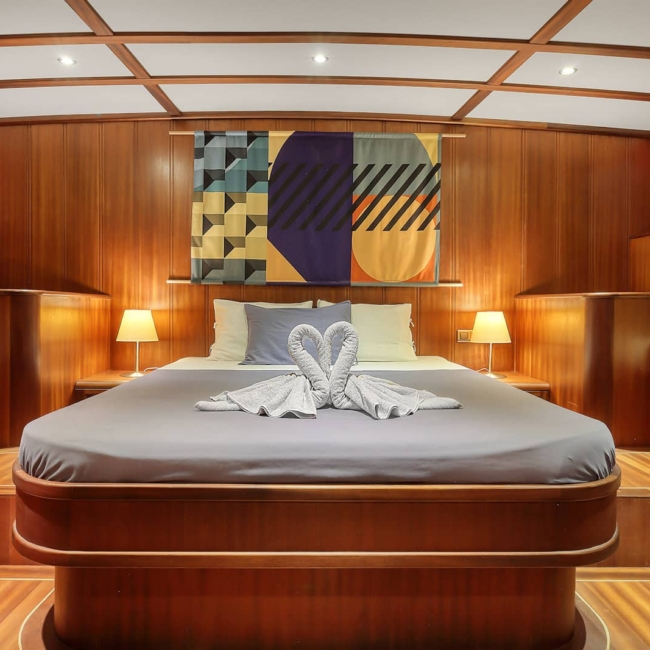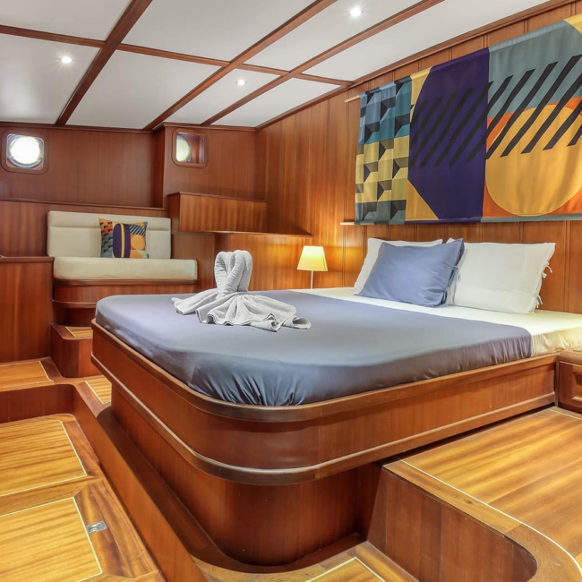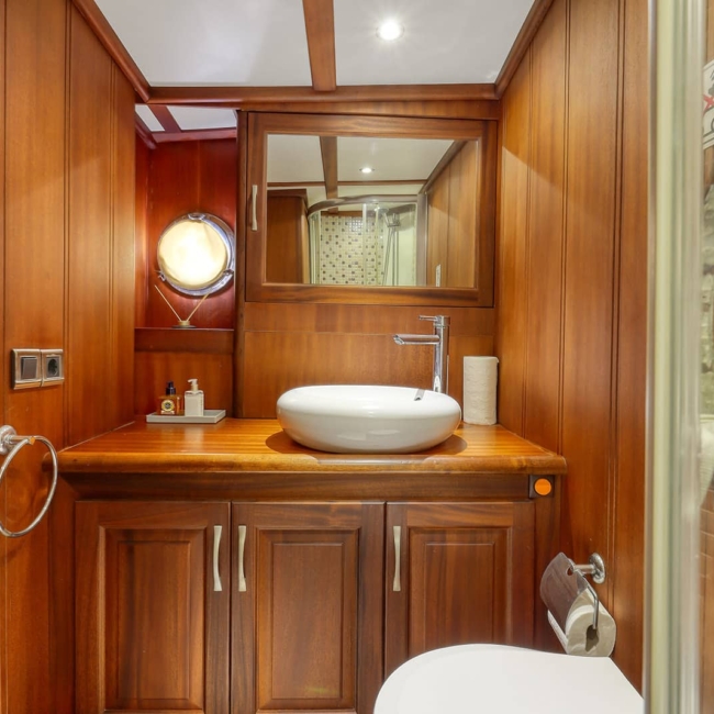Gulet Tutu is a modern designed yacht where all the details are considered and where you can have a good time during your holiday. 5 cabins in total have 2 masters and 3 double cabins. Its length is 25 meters and its length is 7 meters. There is 4 crew on our boat, which provides blue cruise service with the Turkish flag. Completed in 2005, the boat was renewed in 2022.