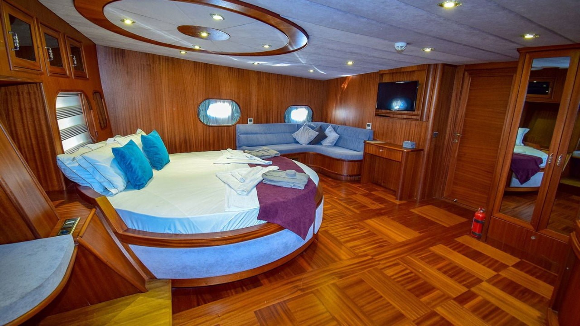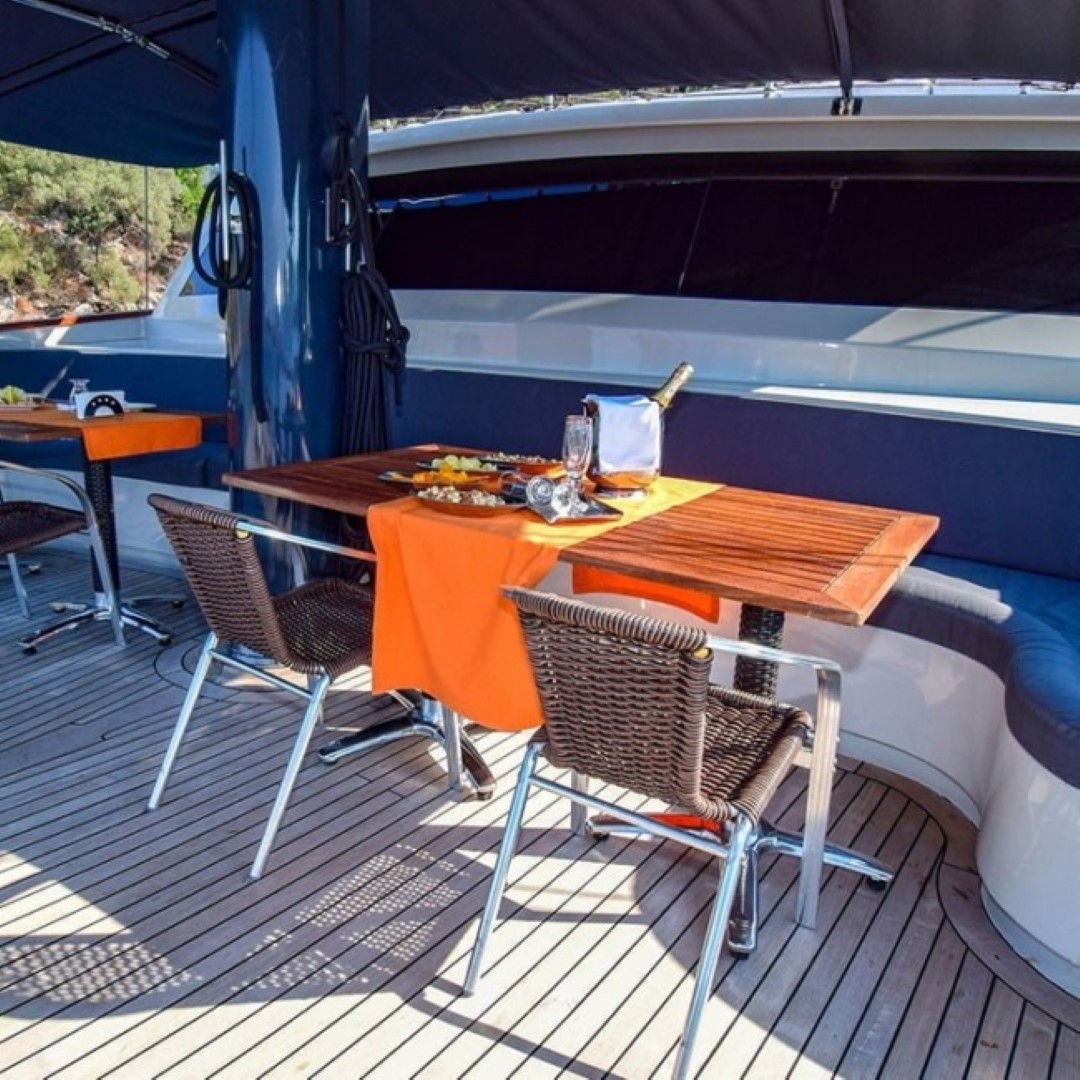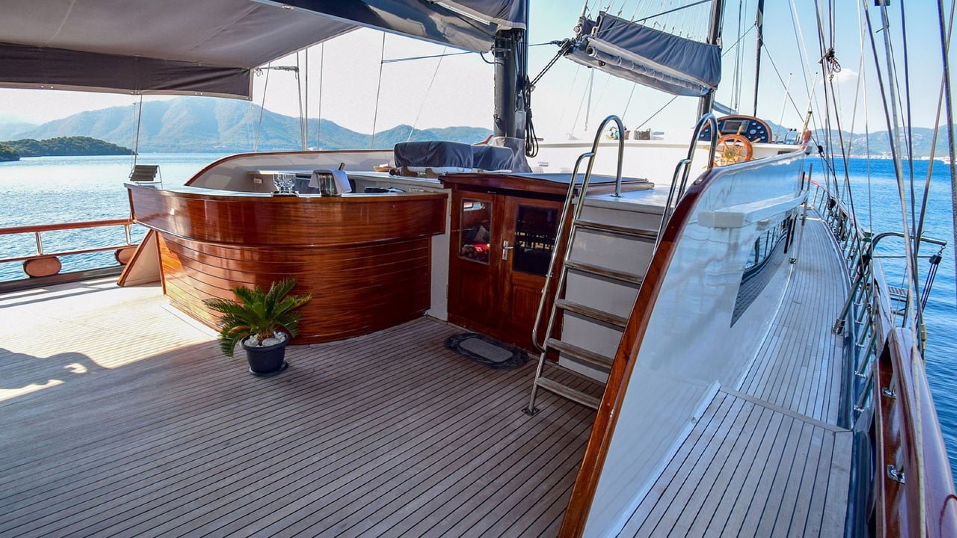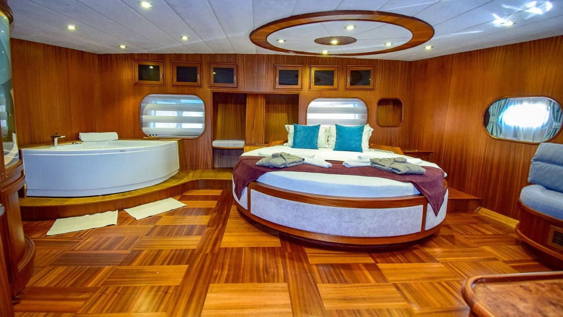 Gulet Uğur 31 m long private luxury yacht from Marmaris. We can accommodate 14 guests in our 7 cabin boat with 2 master cabin, 2 master cabin and 5 master cabin. Each cabin has a shower cabin, toilet, air conditioning and large areas. There are large resting areas, sunbathing areas and dining tables on the deck. The kitchen, designed so as not to find the hotel kitchen, will offer you flavors from different corners of the world.