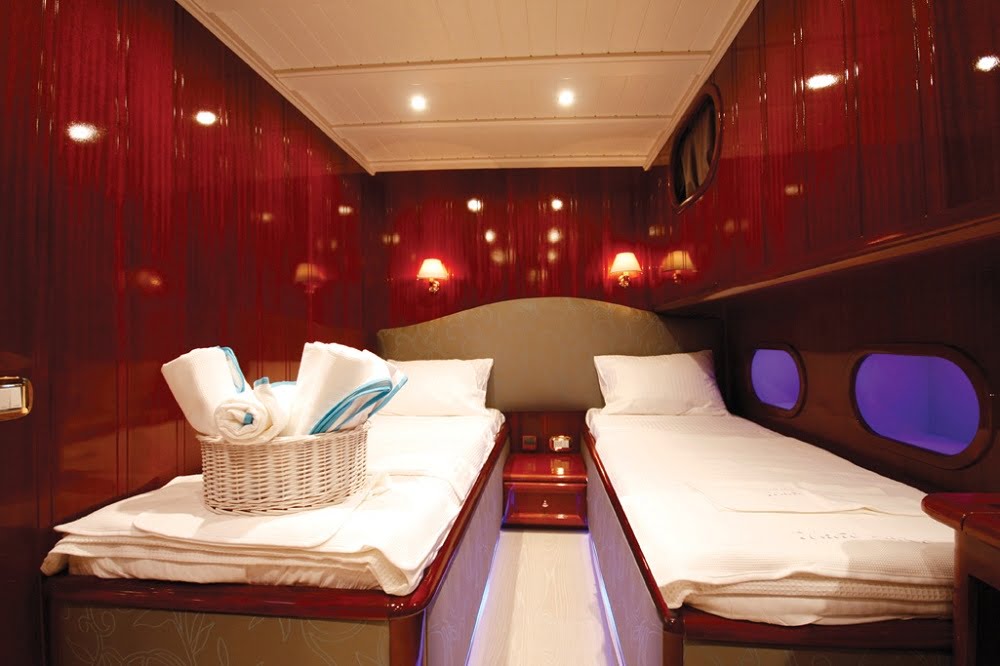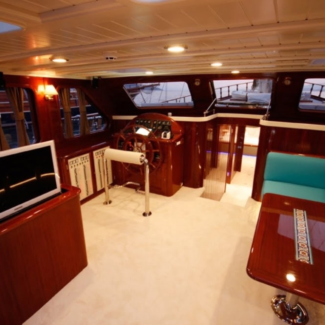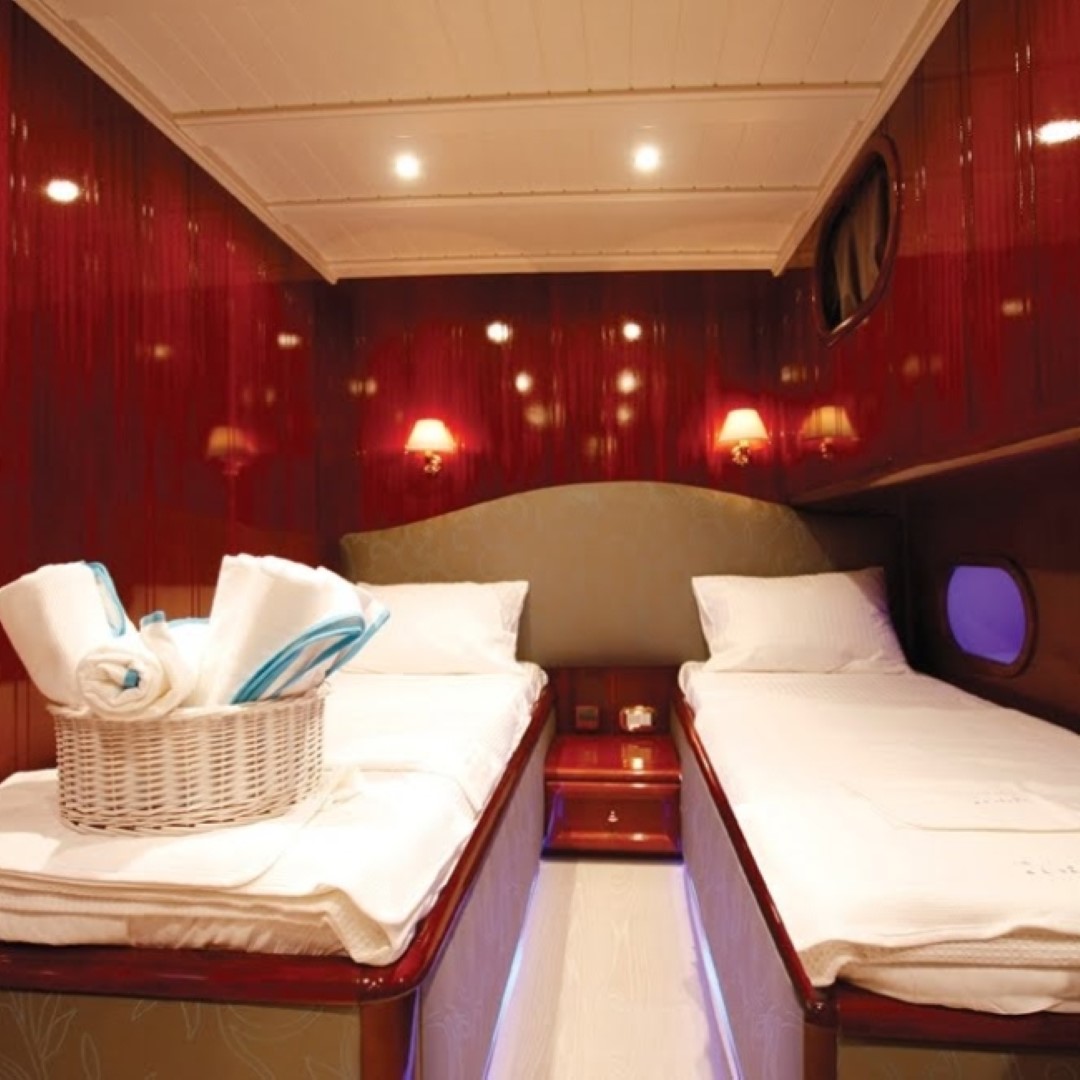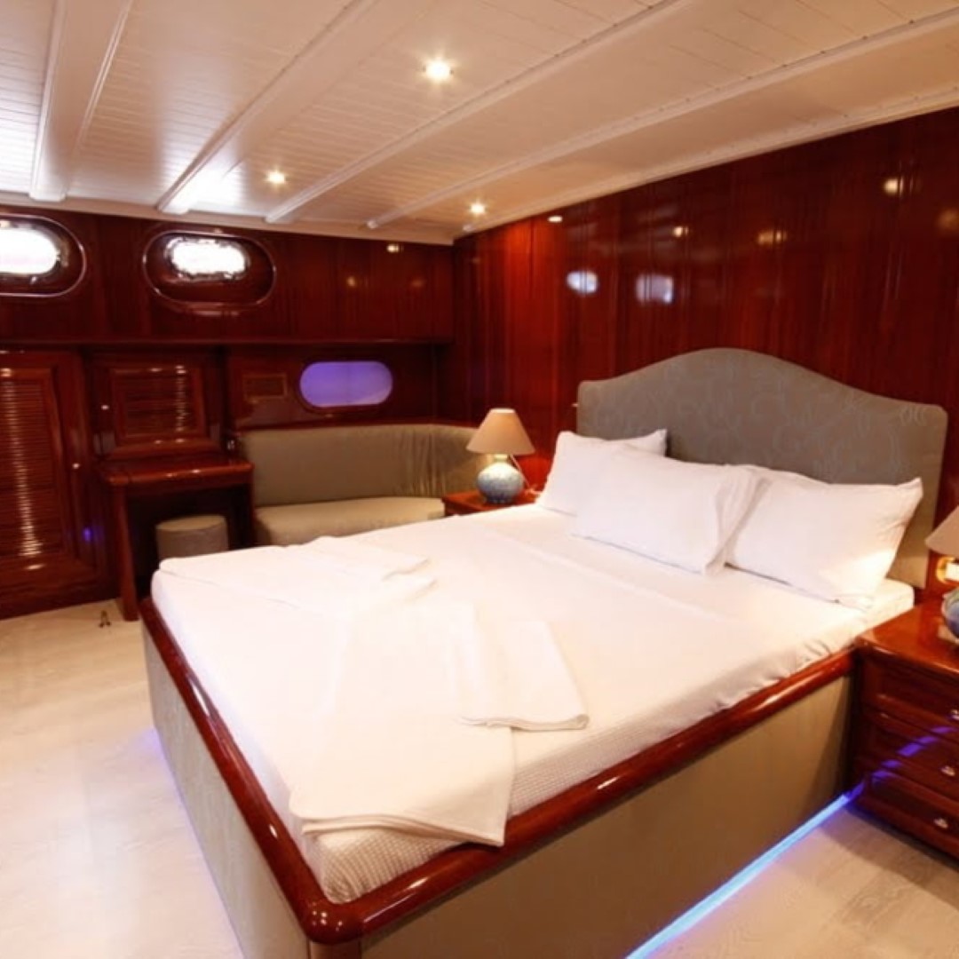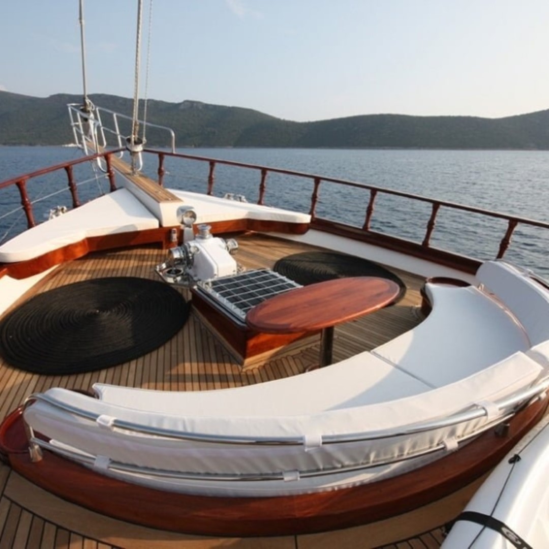 If you are after 5 star service, Gulet White Goose is for you. She was built in 2011 using high quality building materials and furnishings throughout her 24 m length. She can accommodate up to 6 people in 3 cabins (1 master, 1 double and 1 twin). Each cabin features air conditioning and private bathrooms. Watch TV, listen to music or have a drink at the bar in the comfort of the lounge.