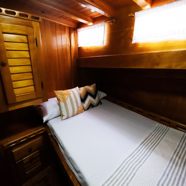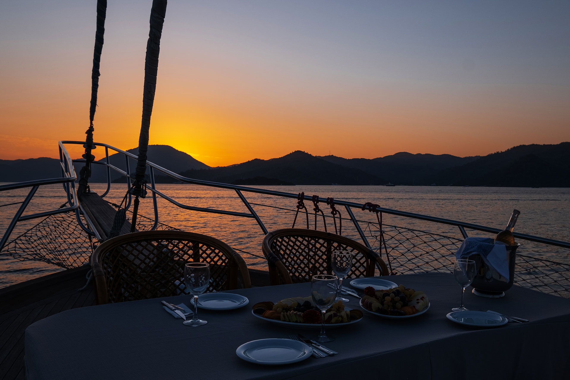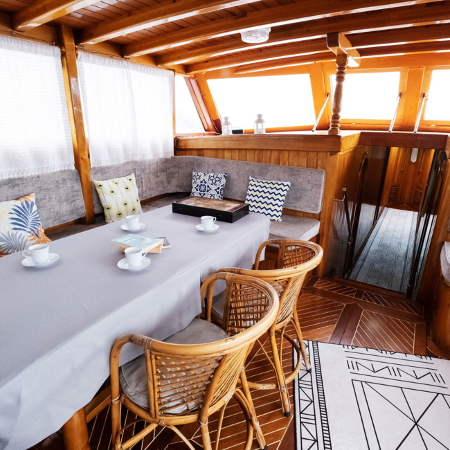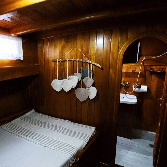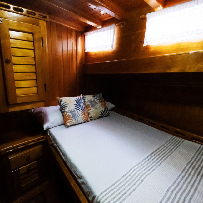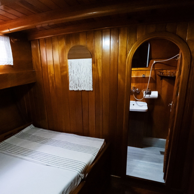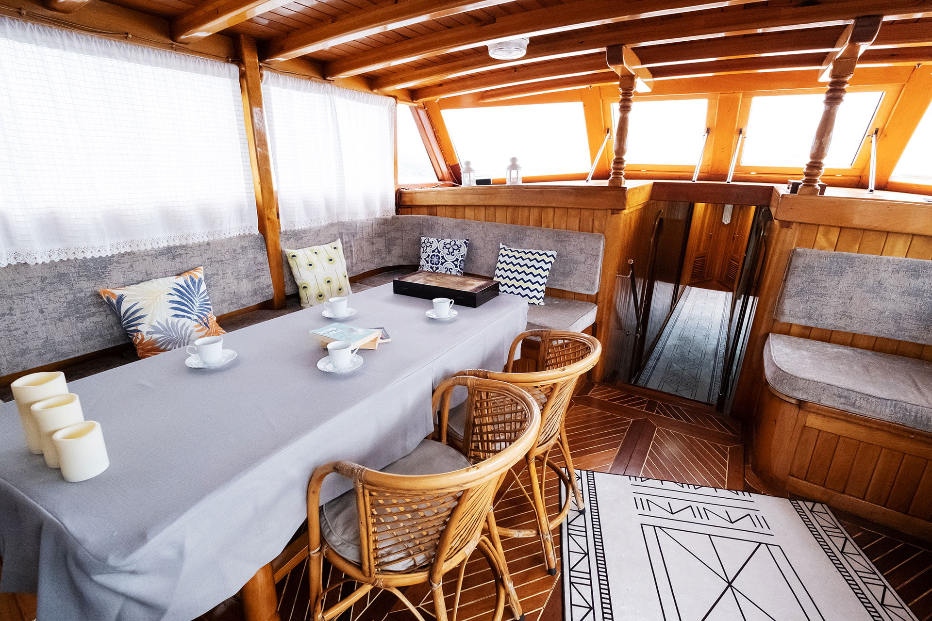 Gulet White It was built in 1993. It took its final form with the revision it went through in 2018. It has a length of 23 m and a width of 6.10 m. It provides blue cruise service to our esteemed guests with its 3 personnel. 6 cabins, 6 doubles Passenger capacity maximum 12 people in Turkish territorial waters WC, bath and hand towels, hair dryer.