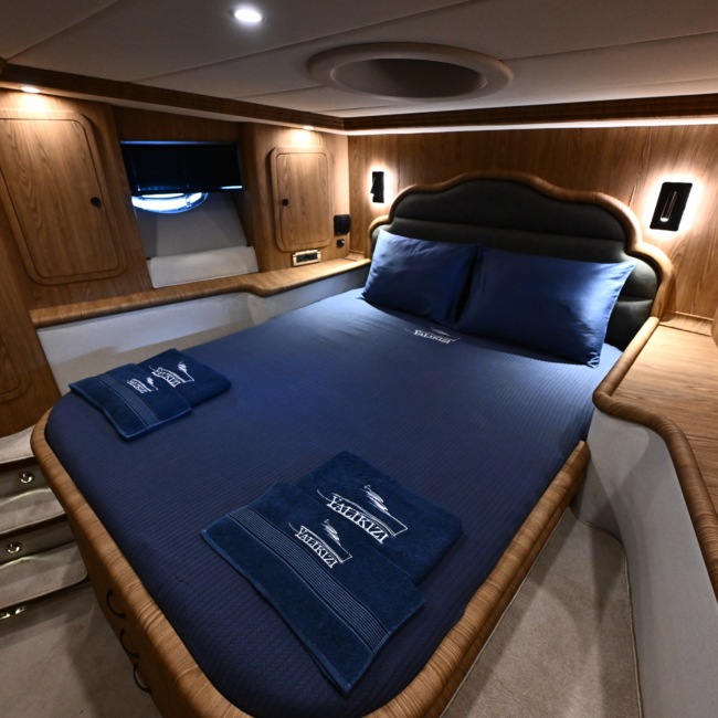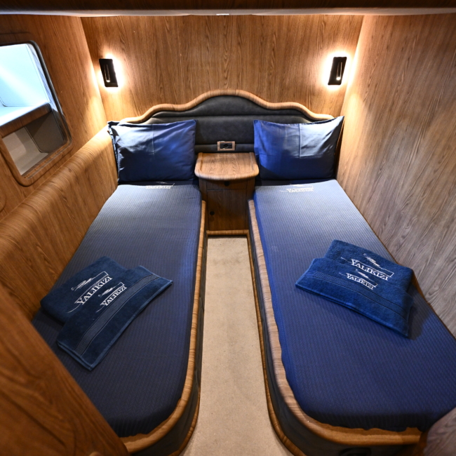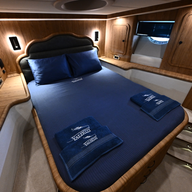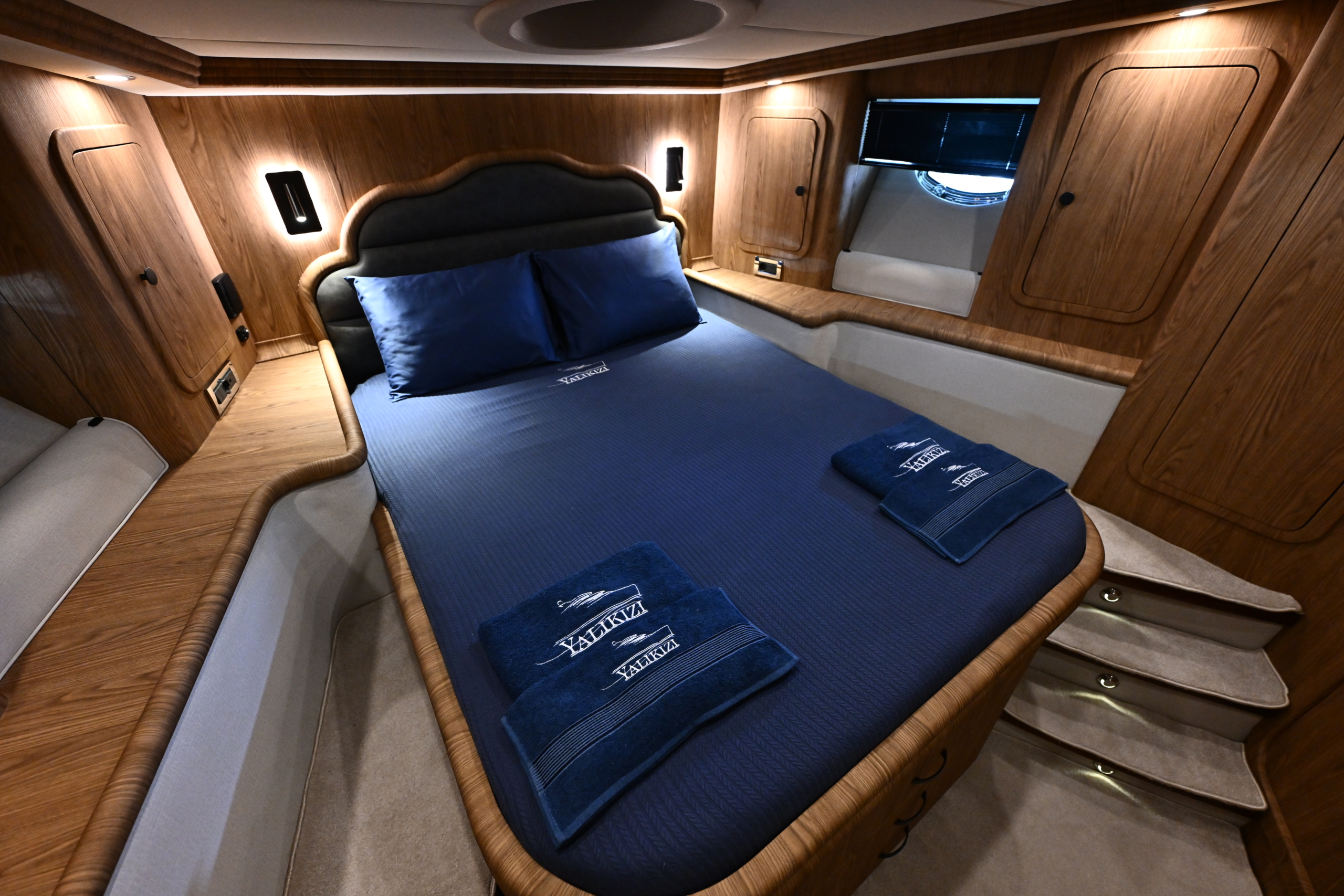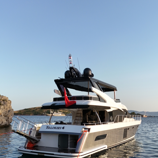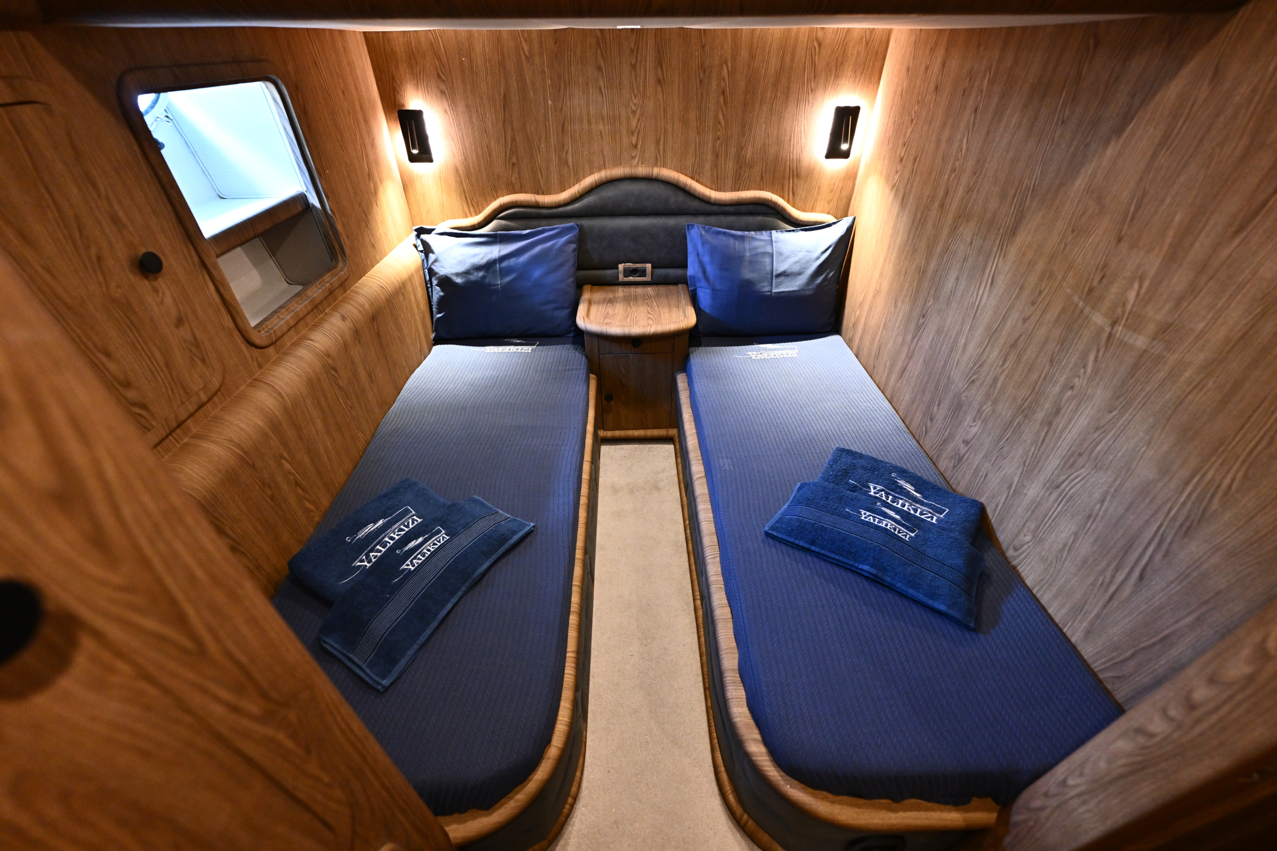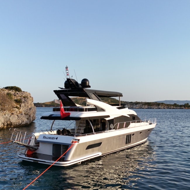 22 metre uzunluğunda ve 5 metre genişliğinde olan YALIKIZI 4, 2006 yılında inşa edilmiş ve 2021 yılında komple yenilenmiştir. İki adet 500 HP D9 Volvo Penta motor ve 2×13 kW Onan jeneratör ile donatılmış olan yat, güvenilir ve akıcı bir seyir deneyimi sunar. 3 kabini (1 master, 1 double, 1 twin) bulunan yat, 6 kişiye kadar konforlu konaklama imkanı sunar. SIMRAD navigasyon sistemi, 10 knot seyir hızı ve 19 knot maksimum sürati ile keyifli bir yatçılık deneyimi sunar. Su makinesi, klima, müzik sistemi, buz makinesi, kahve makinesi, fırın, elektrikli ızgara ve derin dondurucu ile donatılmış olan YALIKIZI 4, denizde bir evin tüm lükslerini sunar. Göcek’in nefes kesen koylarını keşfetmek için mükemmel bir seçim.
