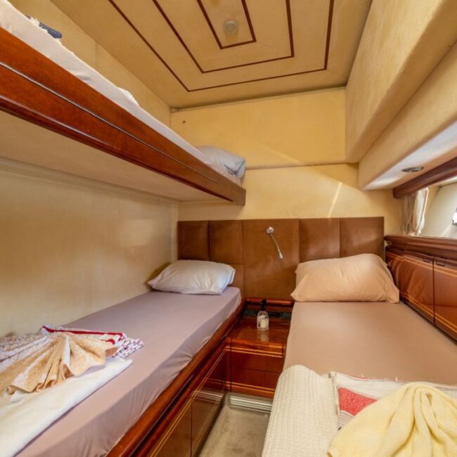 motoryattır. Tam donanımlı ve şık bir görüntüye sahip olduğu için keyifli bir tatil geçireceğinizi umuyoruz. Toplamda 4 kabin ; 1 master, 2