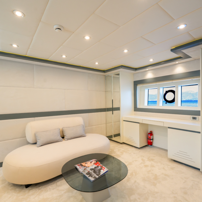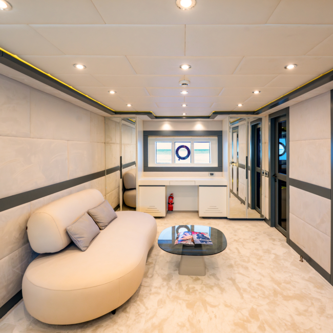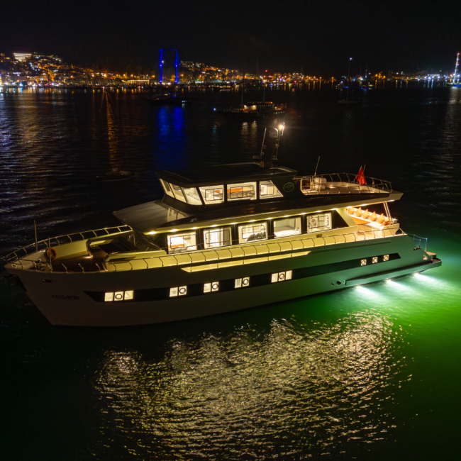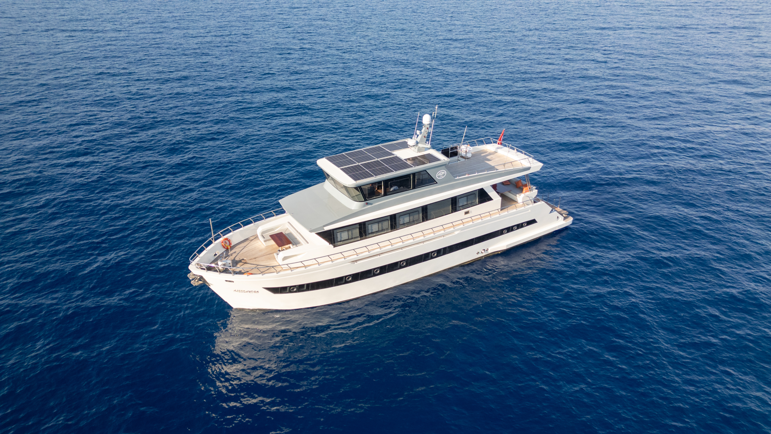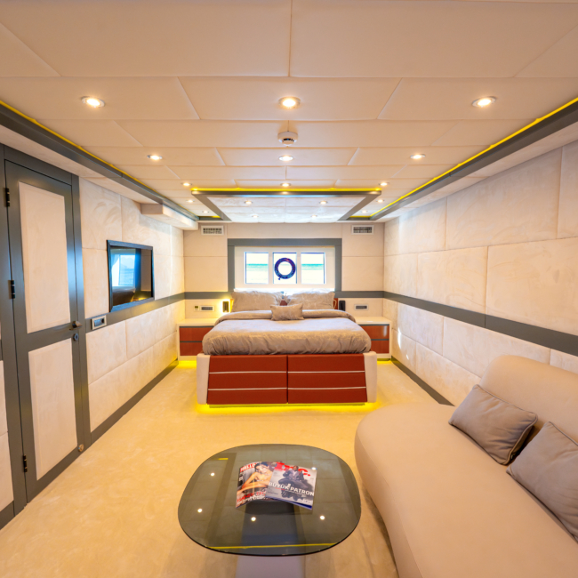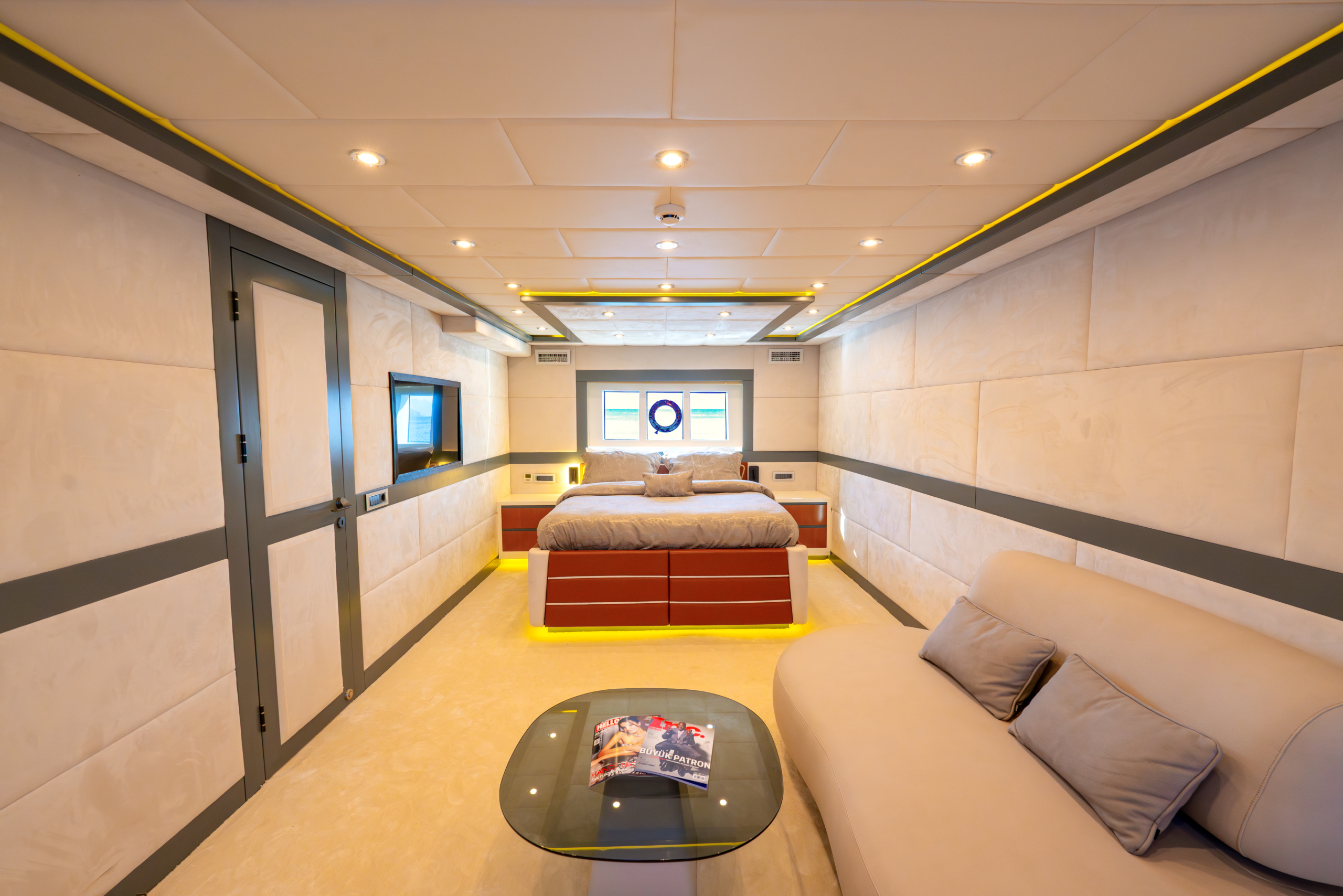 Trawler Alessandro, 2024 yılında inşa edilmiş, 26 metre uzunluğunda ve 7 metre genişliğinde, modern ve konforlu donanımıyla deniz tutkunlarına unutulmaz bir mavi yolculuk deneyimi sunmaktadır. 8 kişiye kadar konaklama kapasitesine sahip olan yatımızda, her biri özenle tasarlanmış 4 lüks kabin bulunmaktadır: güvertede 1 VIP kabin, 2 Master kabin ve 1 Twin kabin.