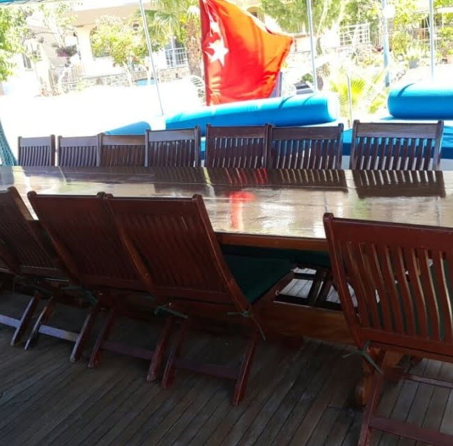 Gulet Alibabaoğlu,salon ve güverte kullanım açısından geniş ve ferahtır. Tam donanımlı mutfağımızda hazırlanan yemekleri güvertede veya salonda bulunan şık sofralarımızda tadabilirsiniz.Her misafirimiz için yeterli güvertede yeterli miktarda güneşlenme alanı ve güneşlenme minderi mevcuttur.
