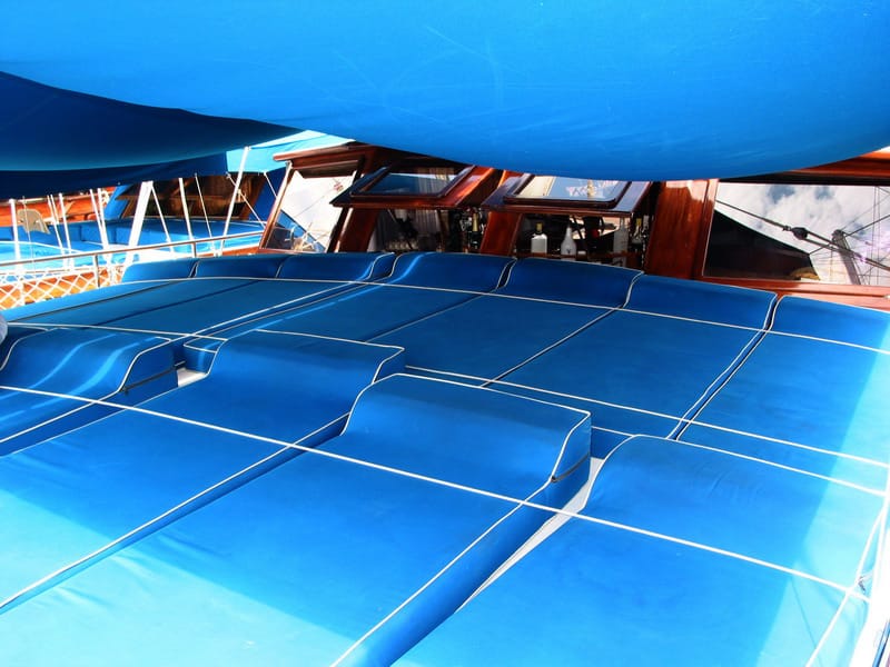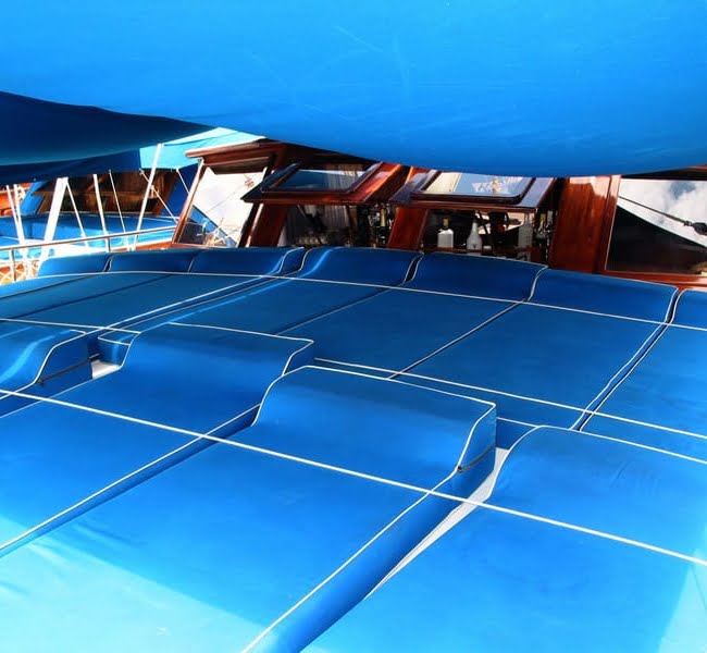 Her kabininde banyo ve ev tipi tuvalet bulunan teknemizin güvertesinde geniş bir yemek masası, güneşlenme minderleri ve deniz merdiveni ile denizin ve güneşin keyfine doyamayacaksınız.