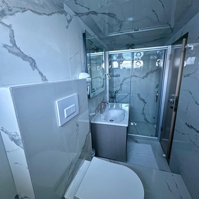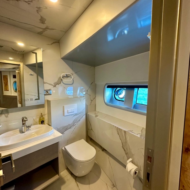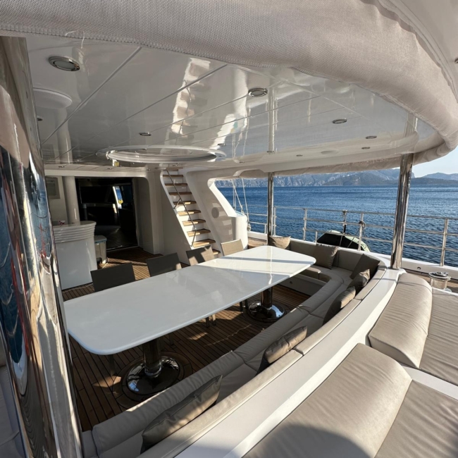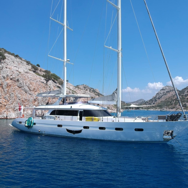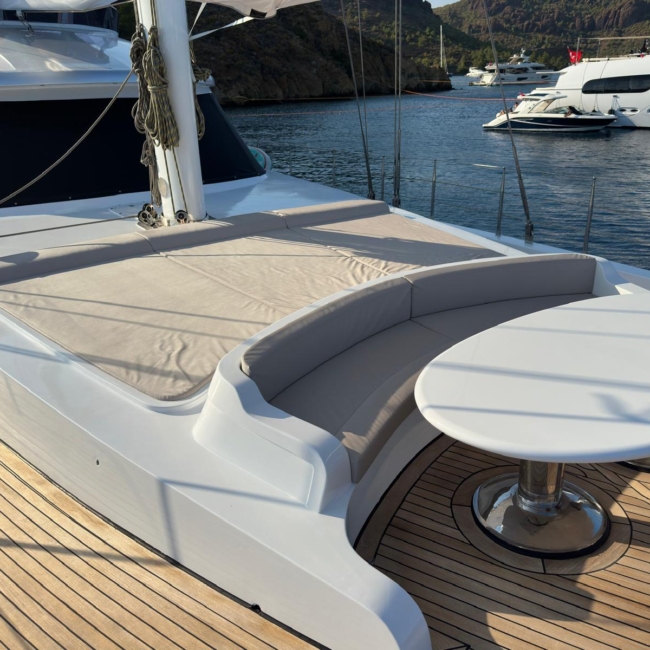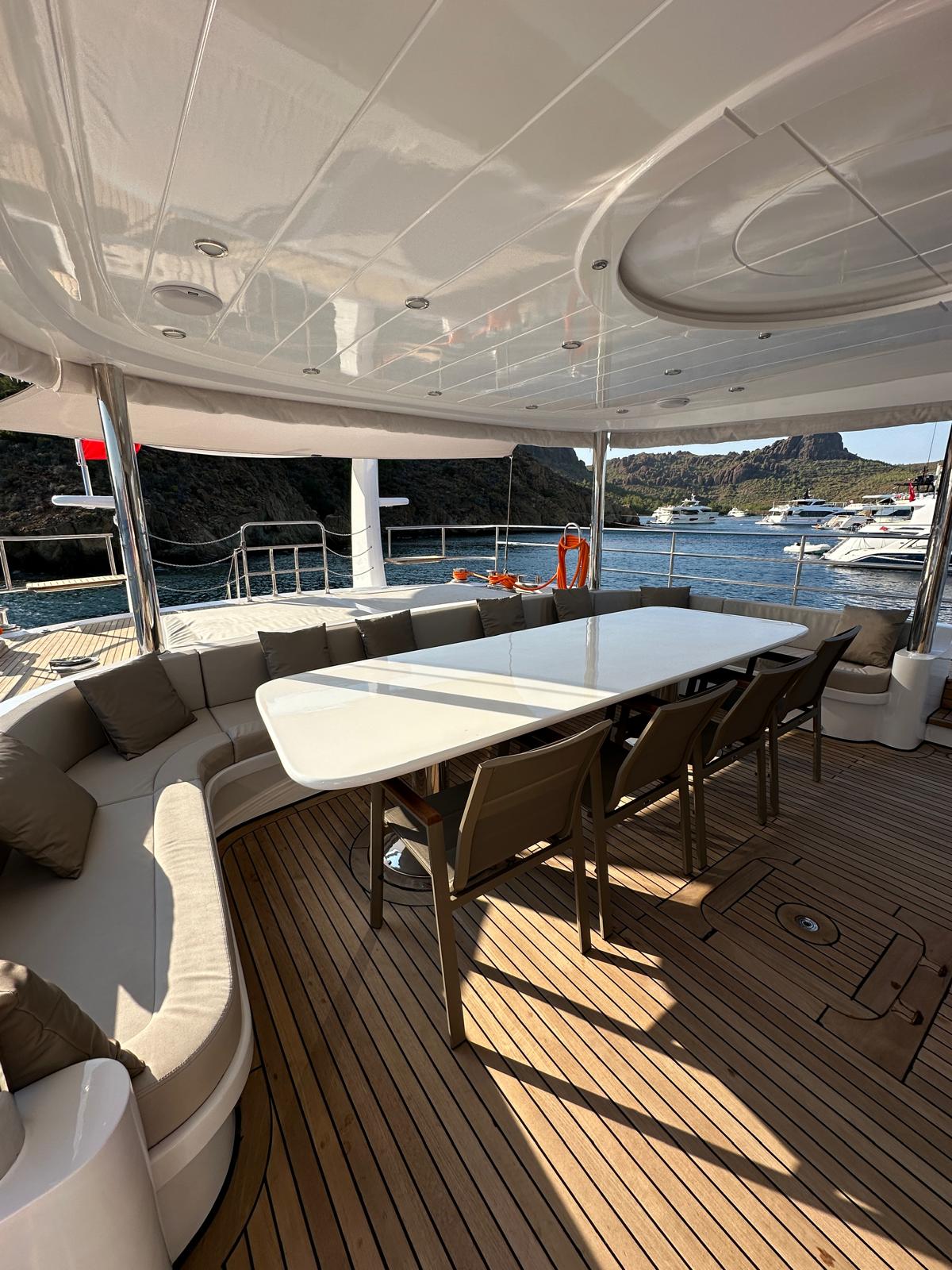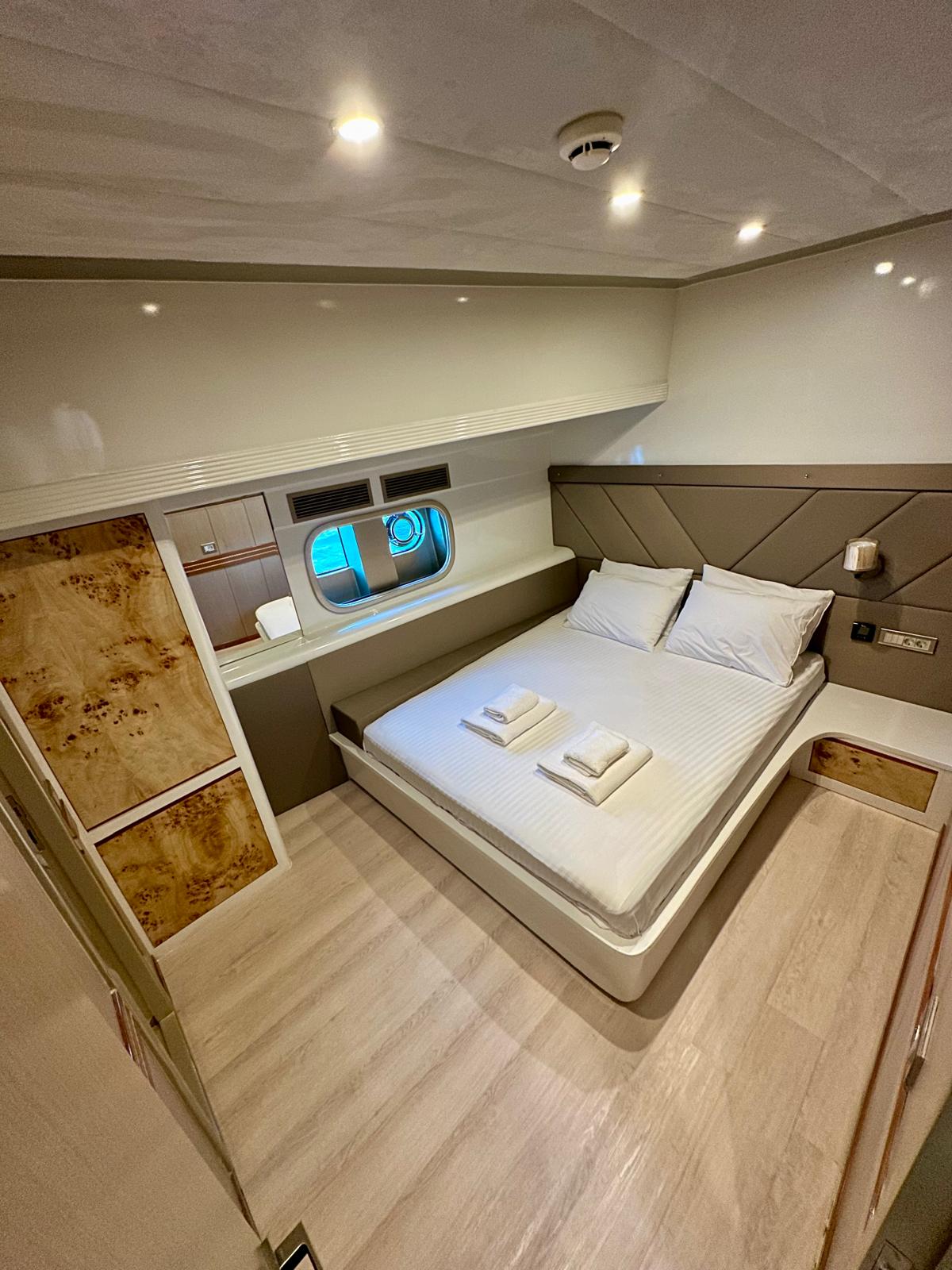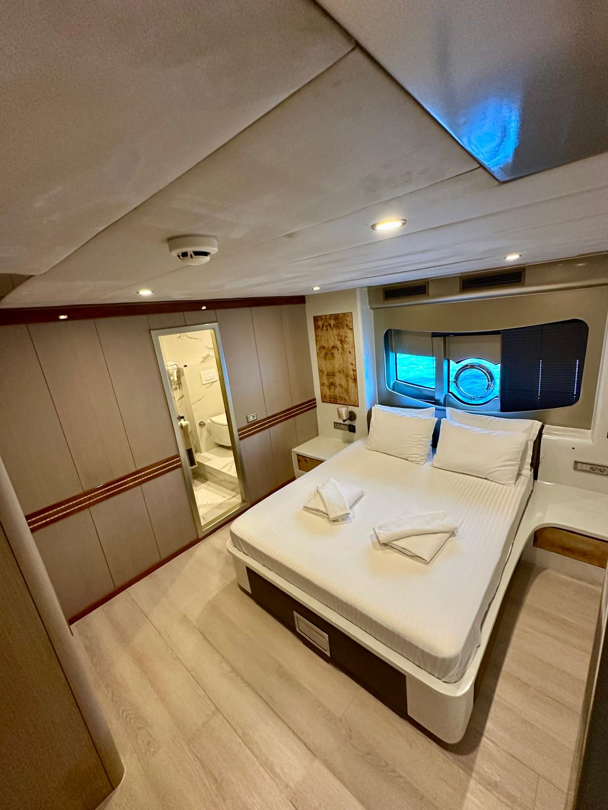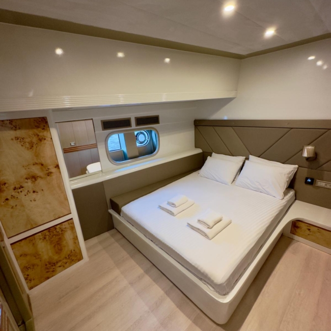 35 metre uzunluğunda ve 8,10 metre genişliğinde olan süper lüks yat, 1 Master, 2 VIP ve 2 Twin kabinde toplam 10 misafir ağırlayabilmektedir. Her kabinde özel duş ve WC imkanı bulunmaktadır. Tatiliniz boyunca konforlu bir konaklama için tüm kabinlerde ve salonda klima bulunmaktadır. Ön ve arka güvertelerin genişliği inanılmaz derecede konforlu ve rahat bir tatil fırsatı sunmaktadır. Rahat ve şık salonu ve çok çeşitli su oyuncakları ile size harika bir tatil fırsatı sunmaktadır. Yemekleriniz tam donanımlı mutfakta sizin için özel olarak hazırlanmaktadır. Arka güvertede bulunan yemek masalarında farklı lezzetlerin tadını çıkarabilirsiniz. Siz değerli misafirlerimiz için yeterli güneşlenme alanı ve minderler bulunmaktadır. Yatımızın mürettebatı kaptan, aşçı, hostes ve 2 denizci olmak üzere 5 personel ile hizmetinizdedir.