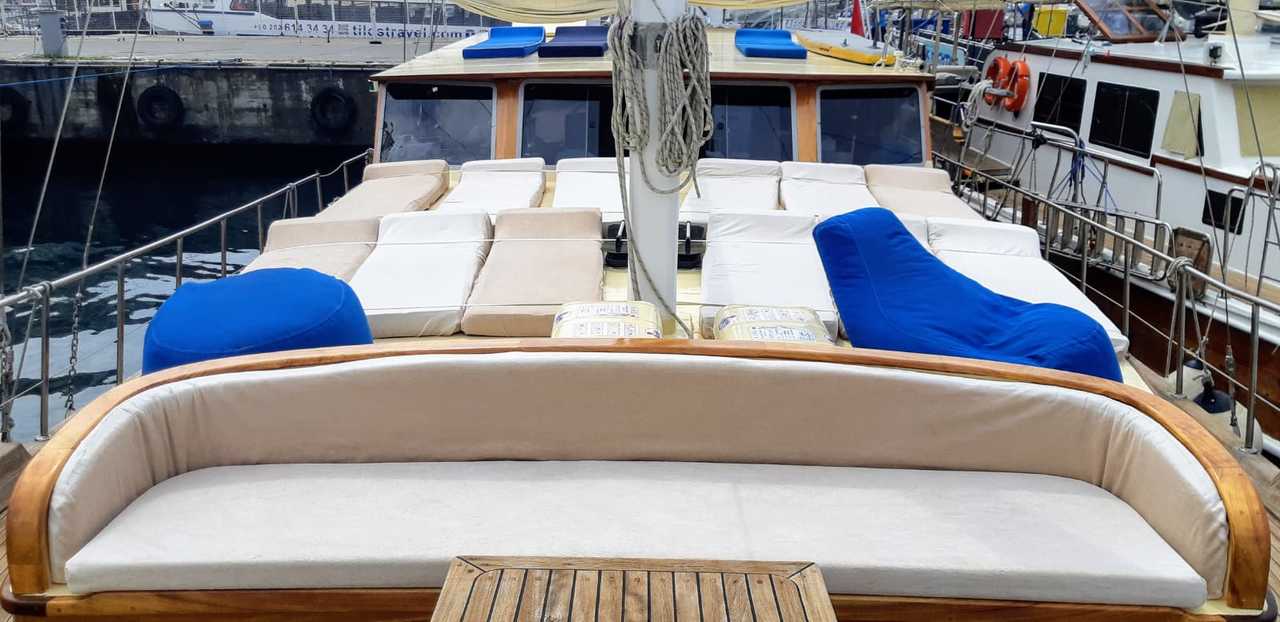 Gulet Arif Kaptan 2 güneşlenmeniz için geniş alana ve güneş minderleri yeterli durumdadır.Kullanmanız için MP3 çalar, Ipod kullanmak