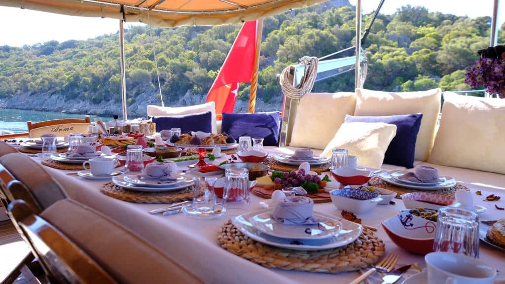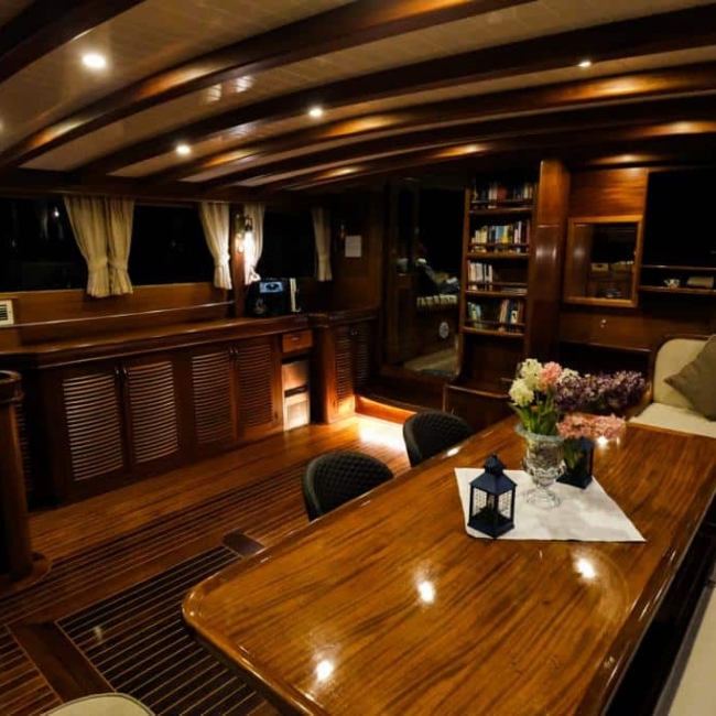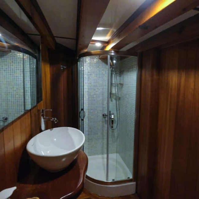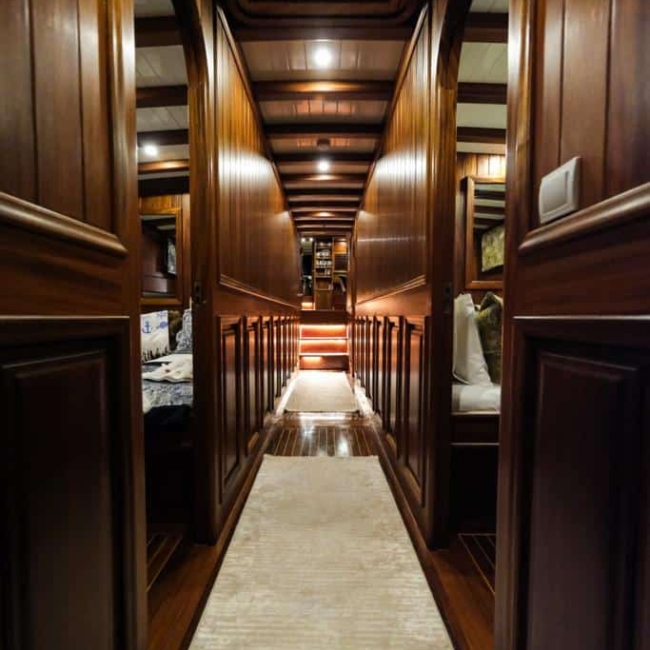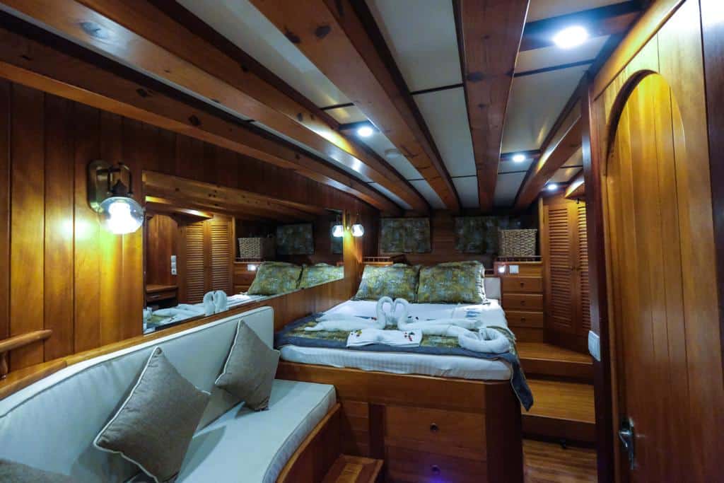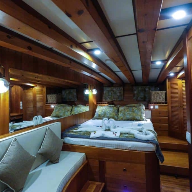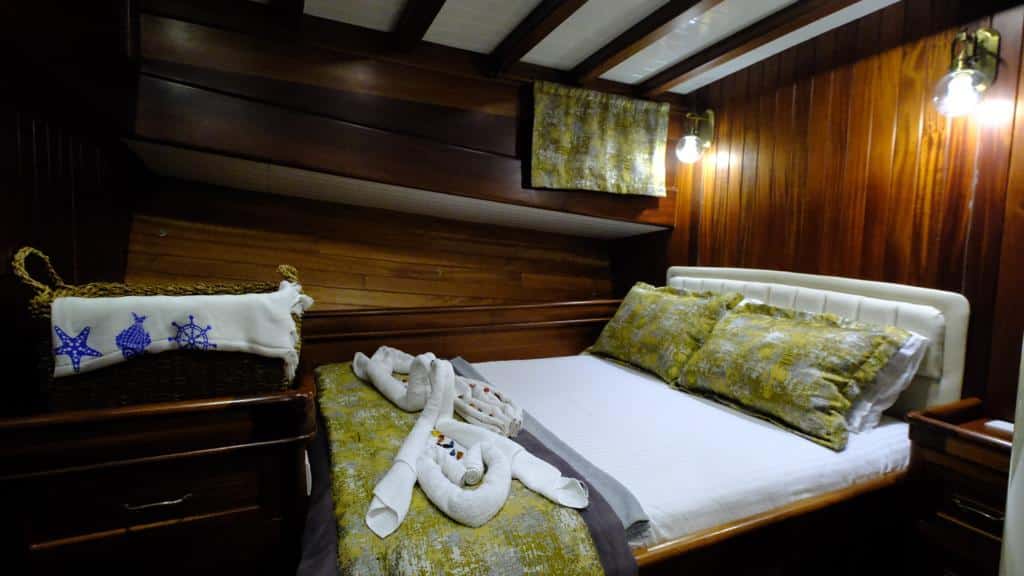Gulet Arma 26 metre uzunluğunda 1 Master, 3 double, 1 twin olmak üzere toplam 5 kabin.