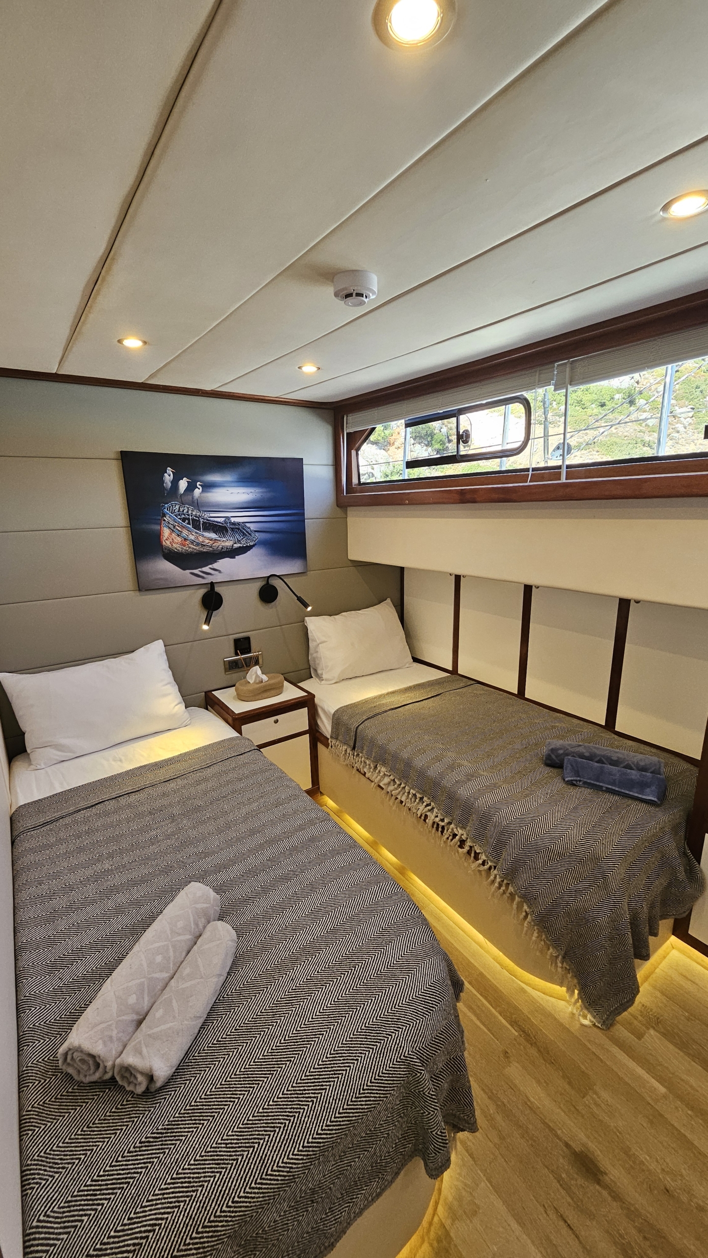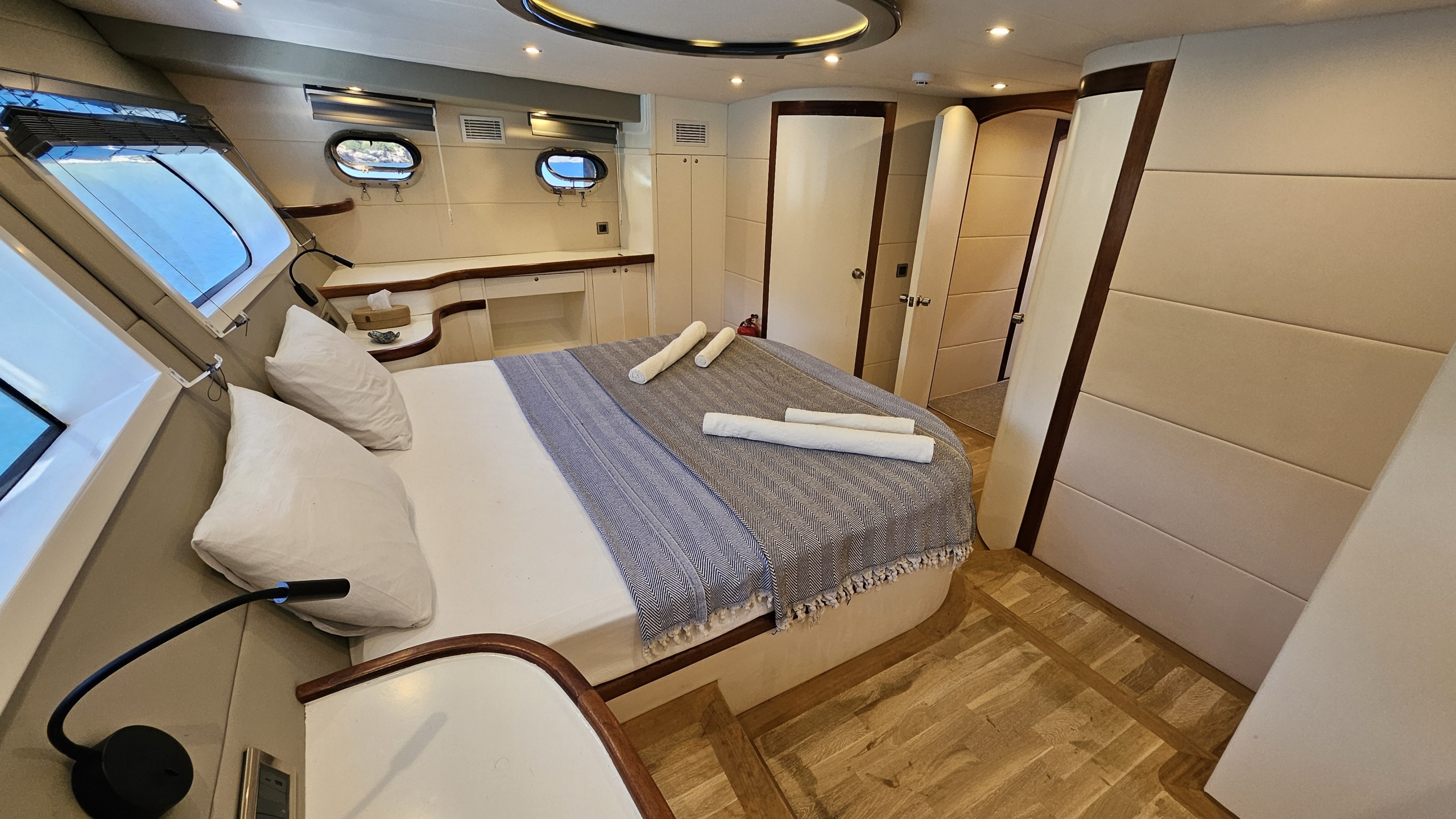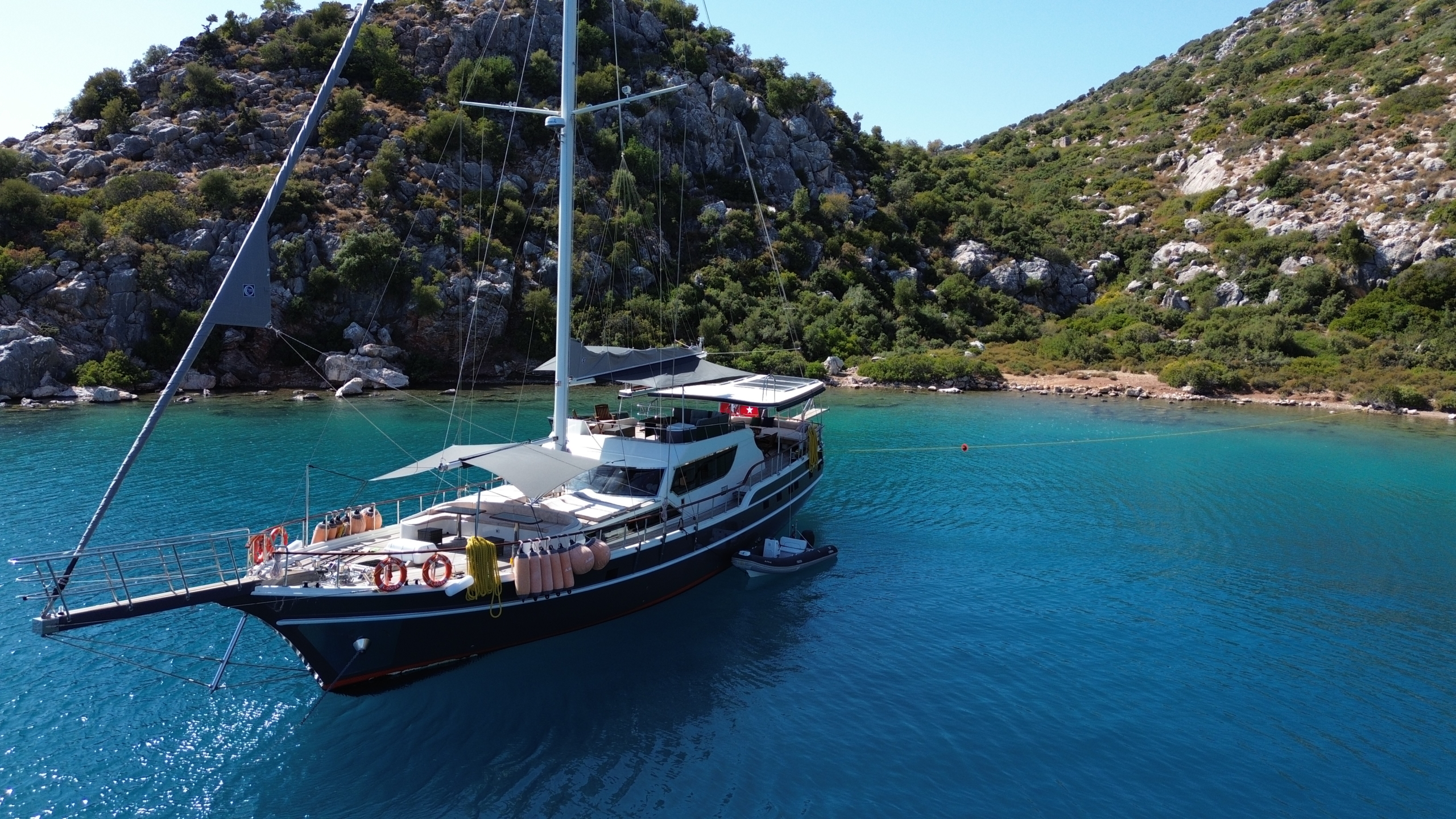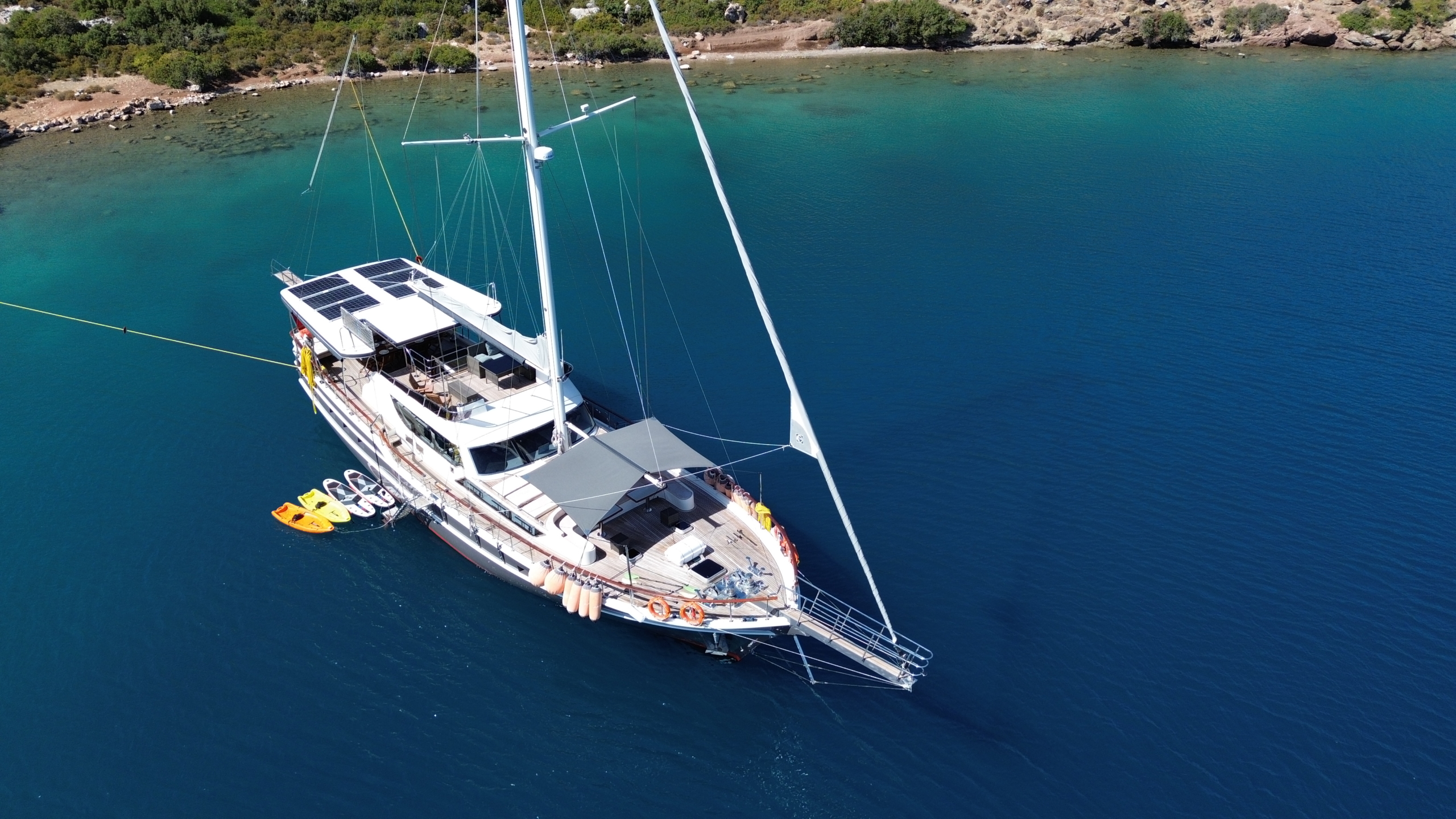 Gulet Arni was built in 2023 and docked in Göcek (Türkiye). Of course, the yacht is also available for you in other cities upon request. The yacht has a length of 24 m, a width of 6.5 m and a draft of 2.7 m. Arni is designed for up to 8 people with 4 cabins and is suitable for a variety of day trips. There are a total of 4 bathrooms for you and your guests. The yacht has 2 engines, each with a power of 404 hp (297 kW). The ship’s maximum speed is 8 knots (15 km/h). During your stay on this yacht, you will be accompanied by an experienced crew ready to meet all your needs.
