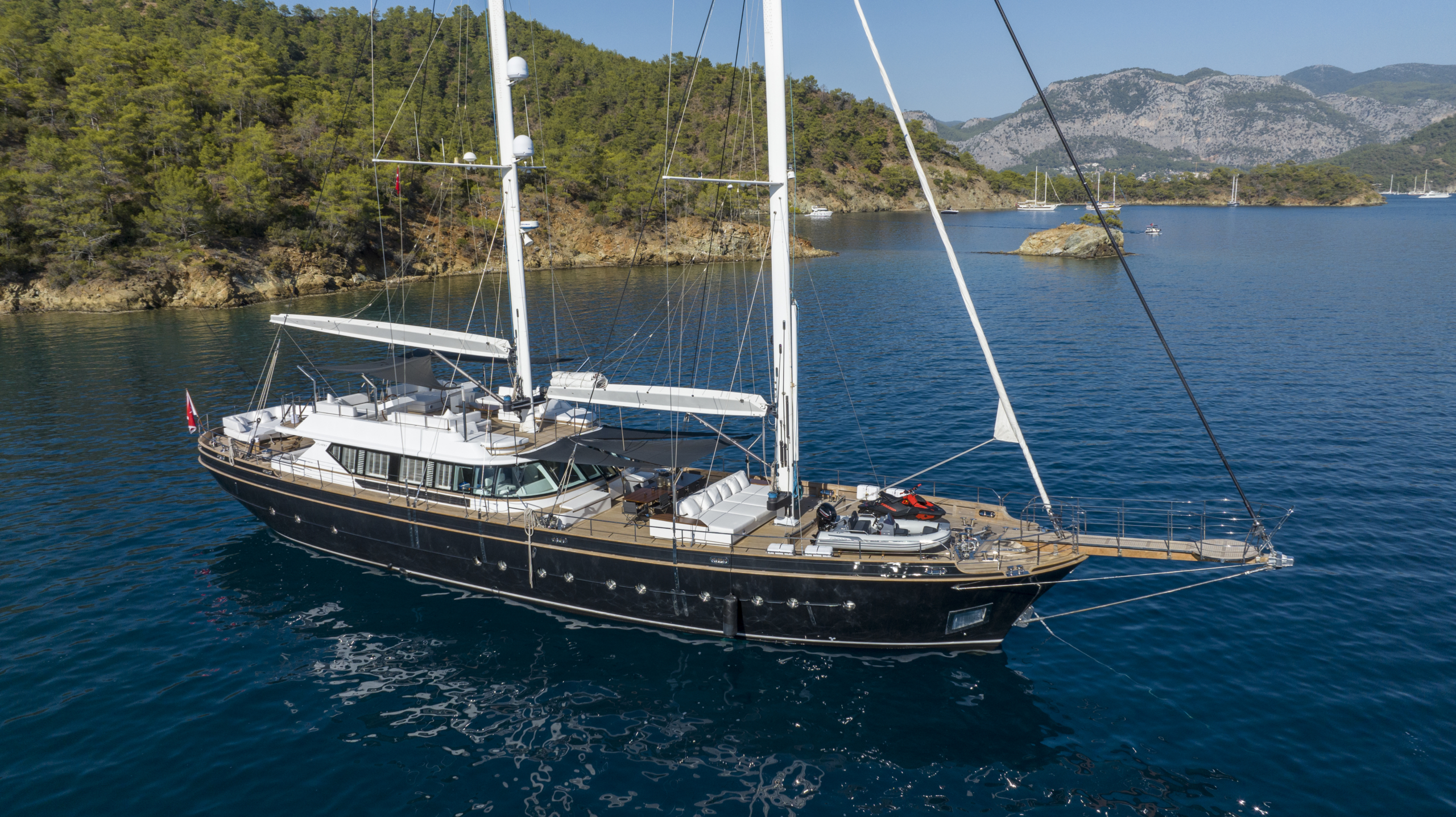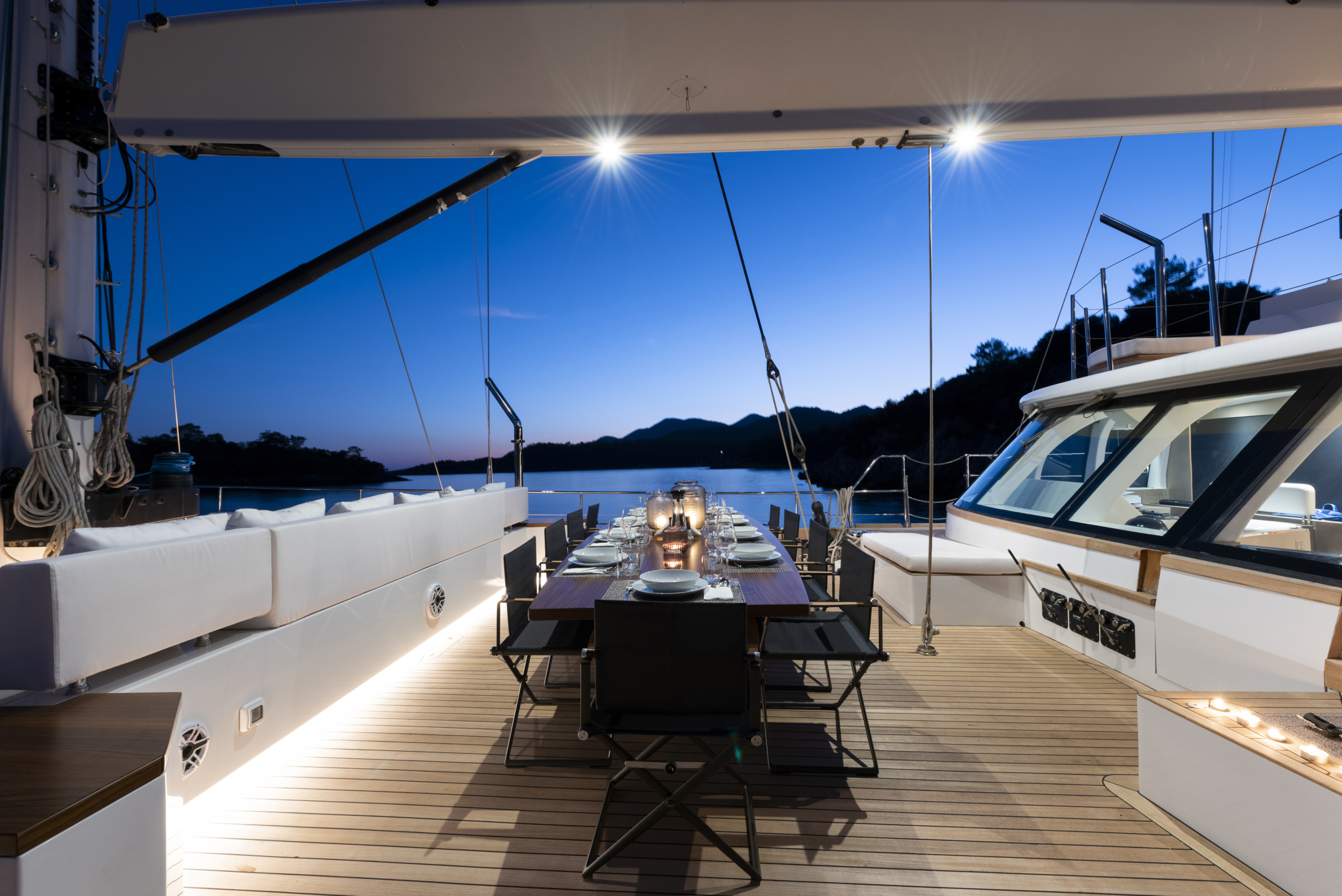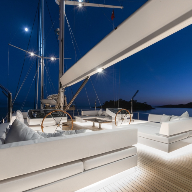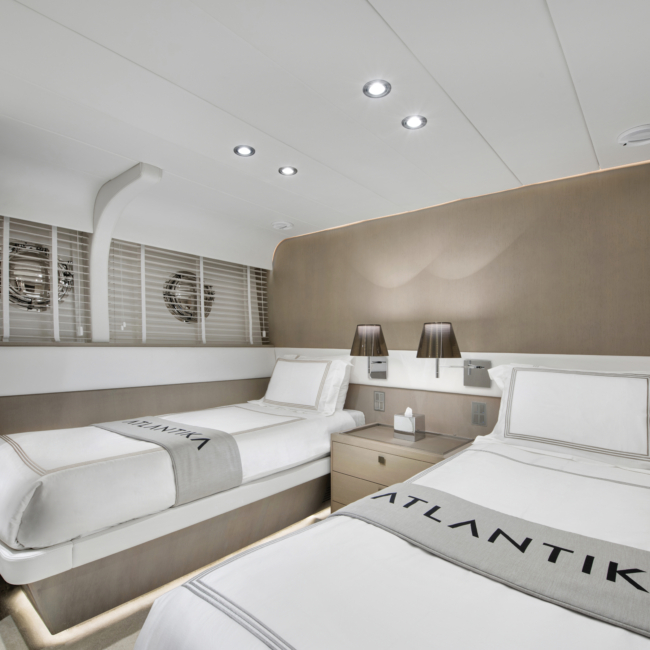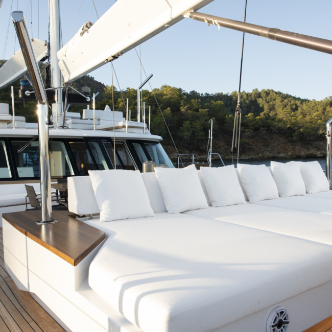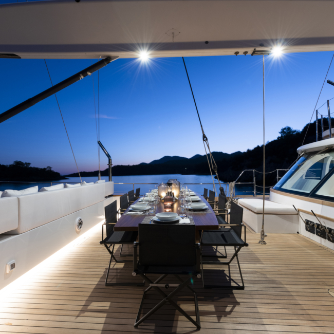 Yatımız birbirinden şık ve konforlu 5 kabin, 2 Master Kabin, 2 Vip Twin Kabin, kendine ait duş, WC ve kliması mevcuttur.