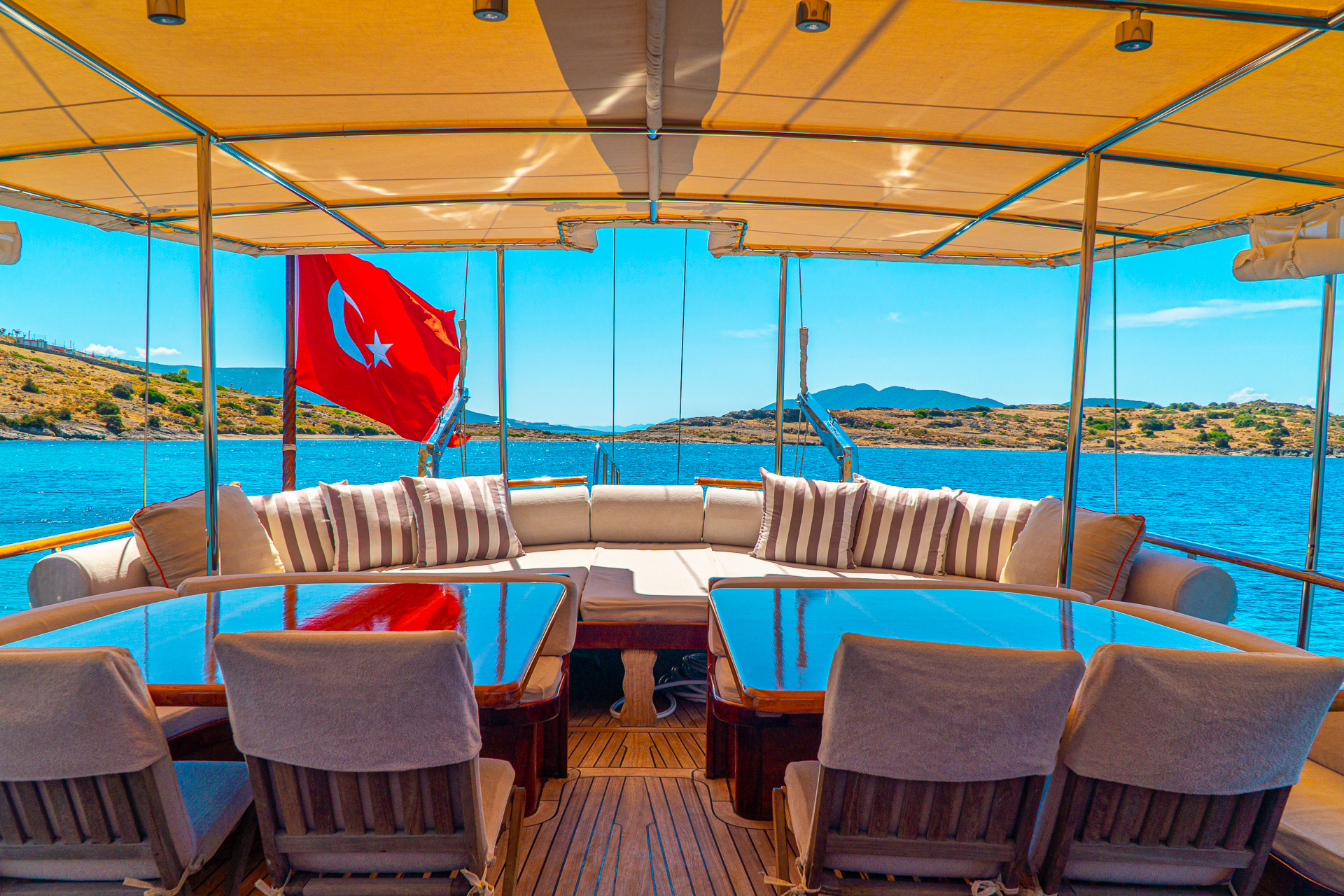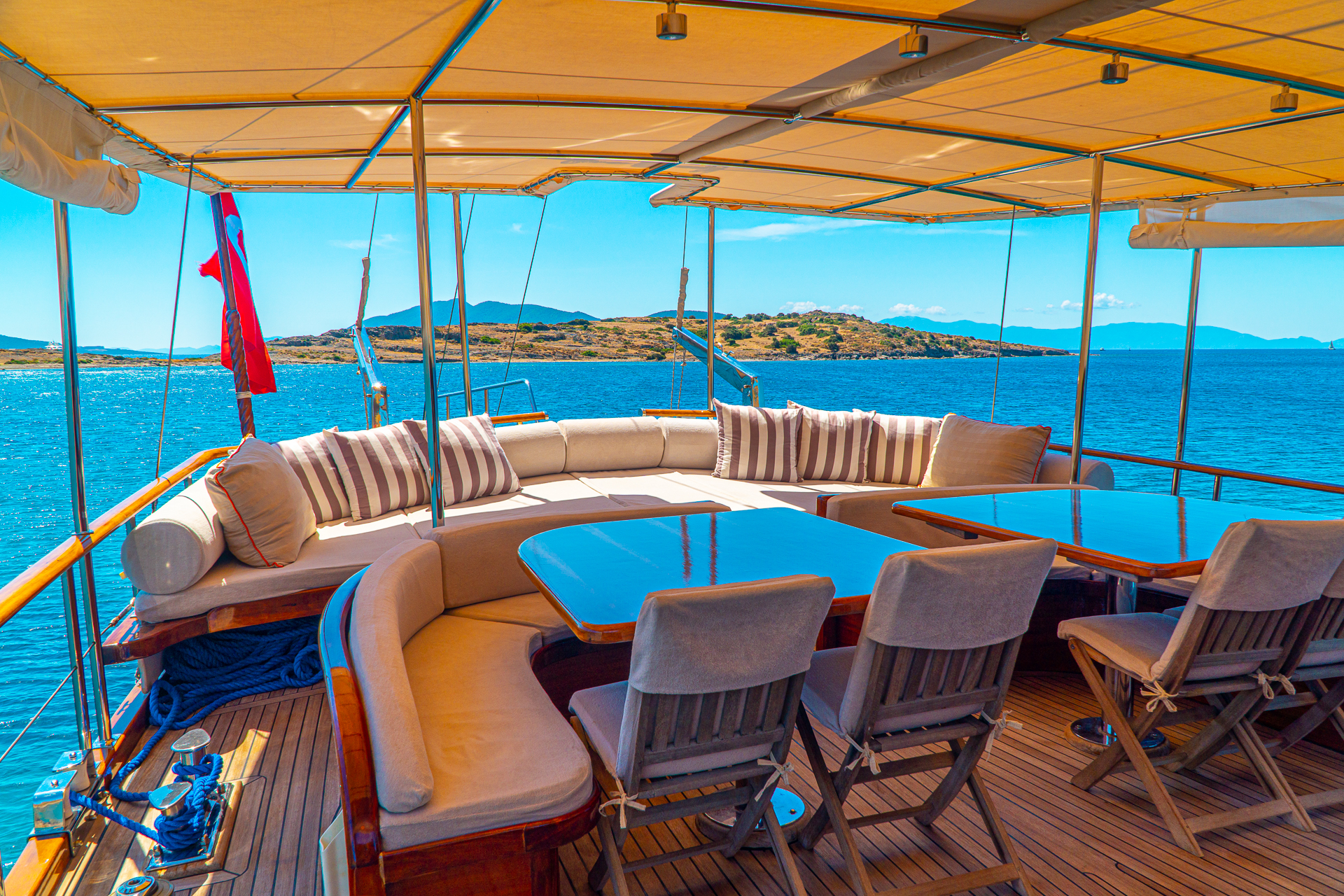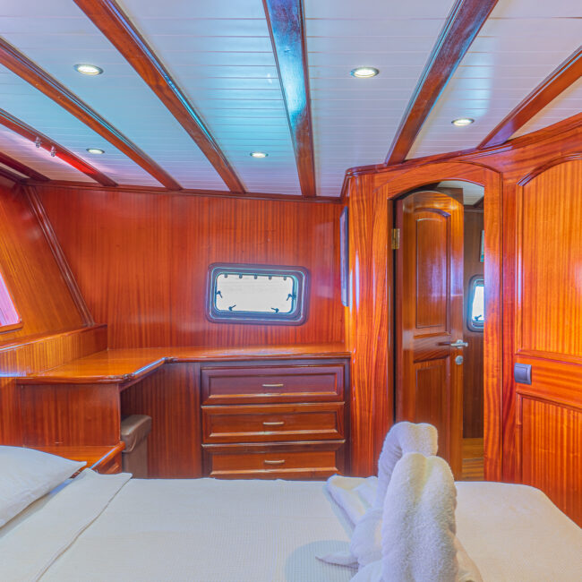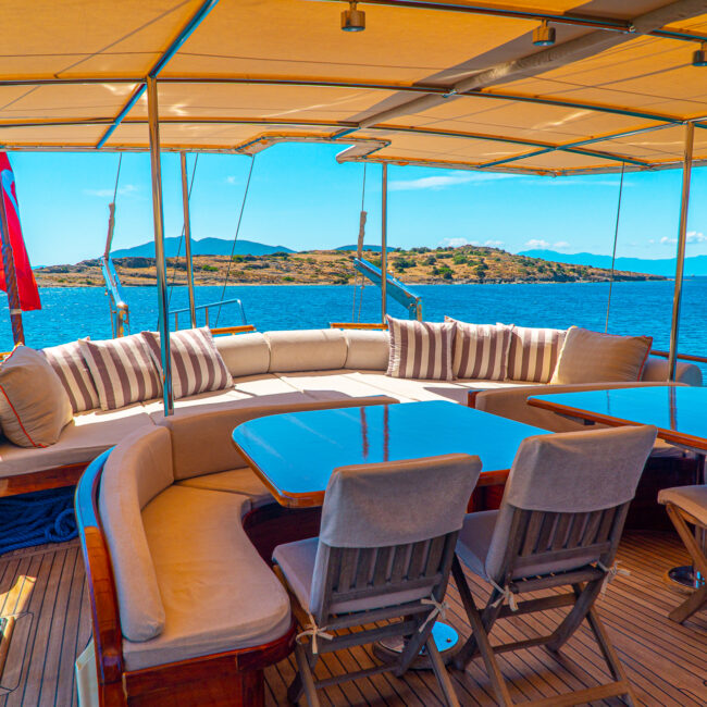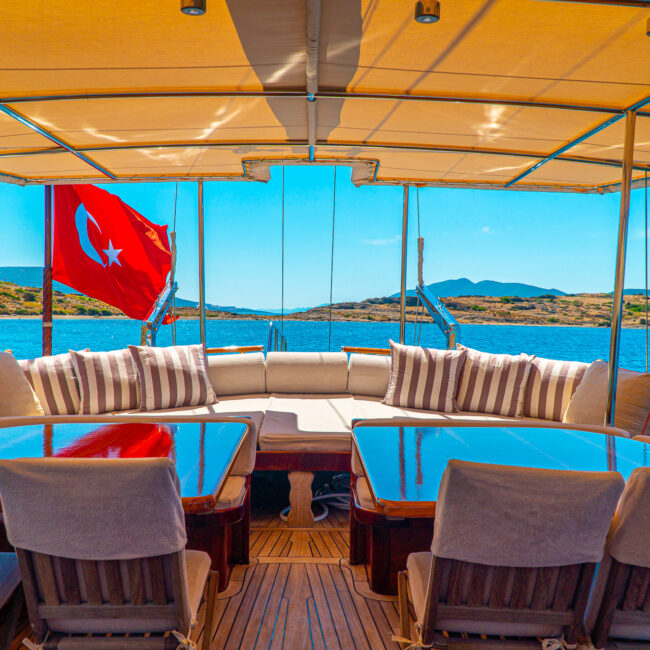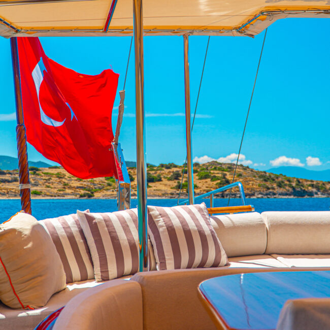 Türk bayrağıyla mavi tur hizmeti veren teknemizde 4 mürettebat bulunmaktadır. Gulet Avrasya, tatil boyunca güzel vakit geçirebileceğiniz tüm detayların