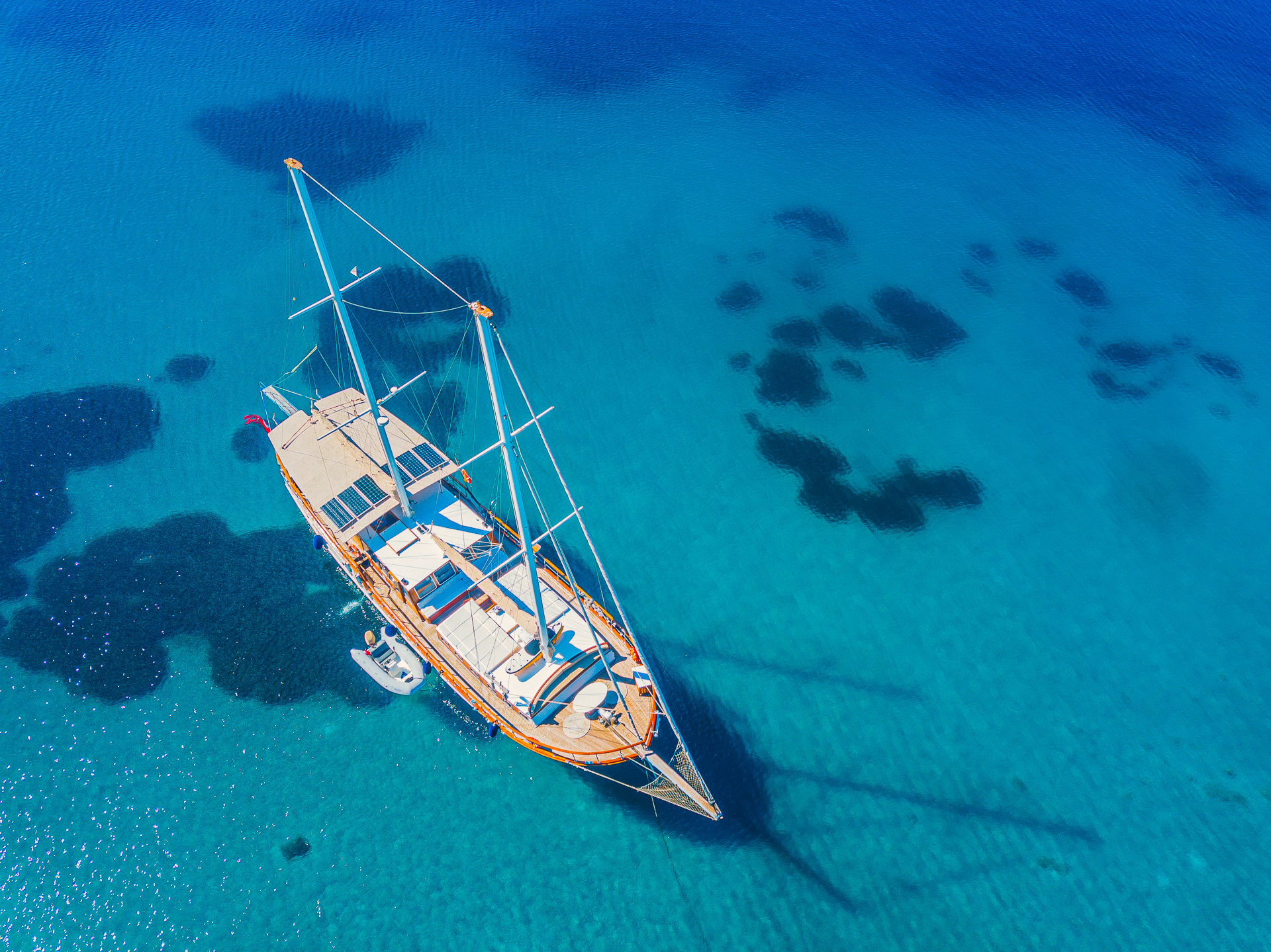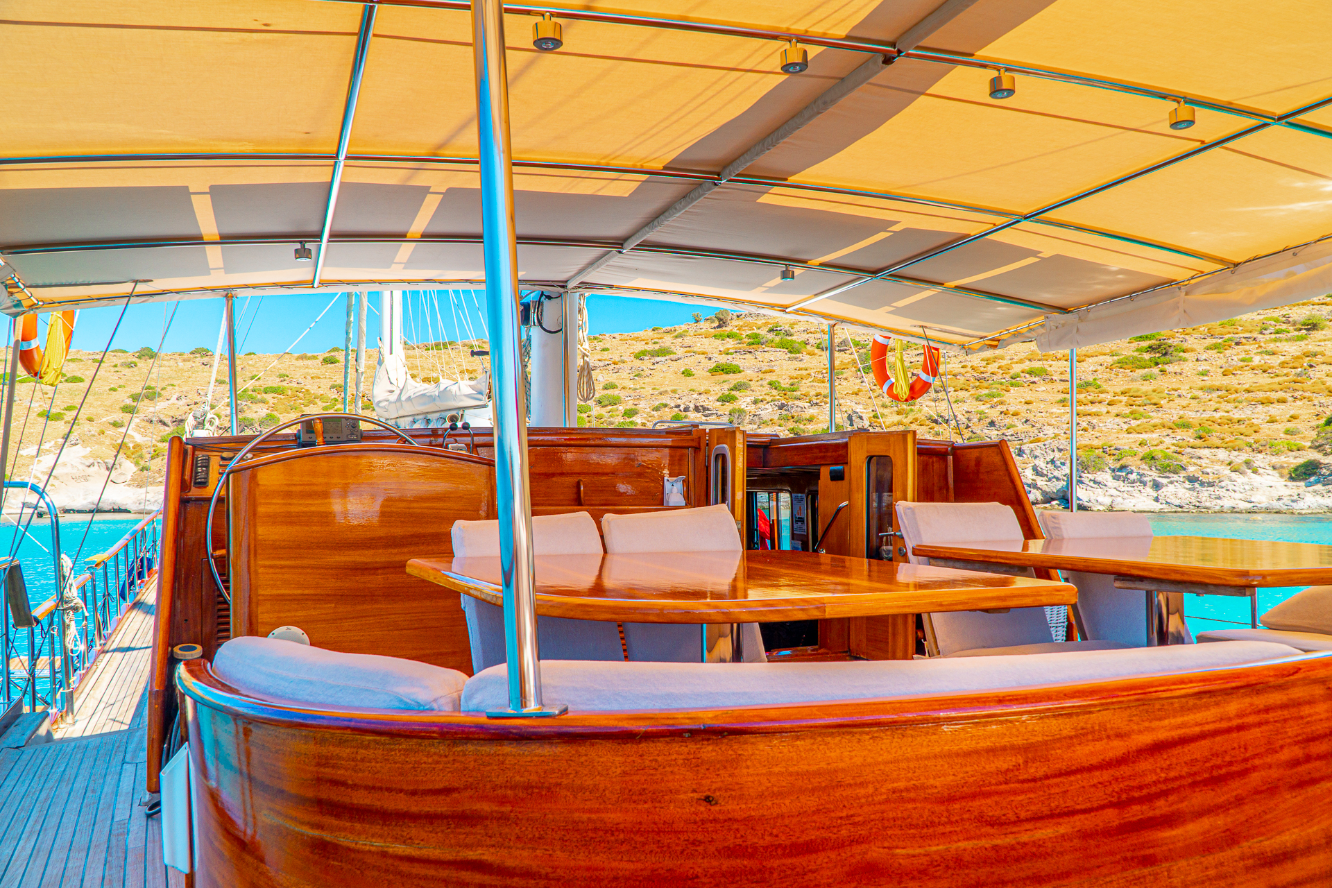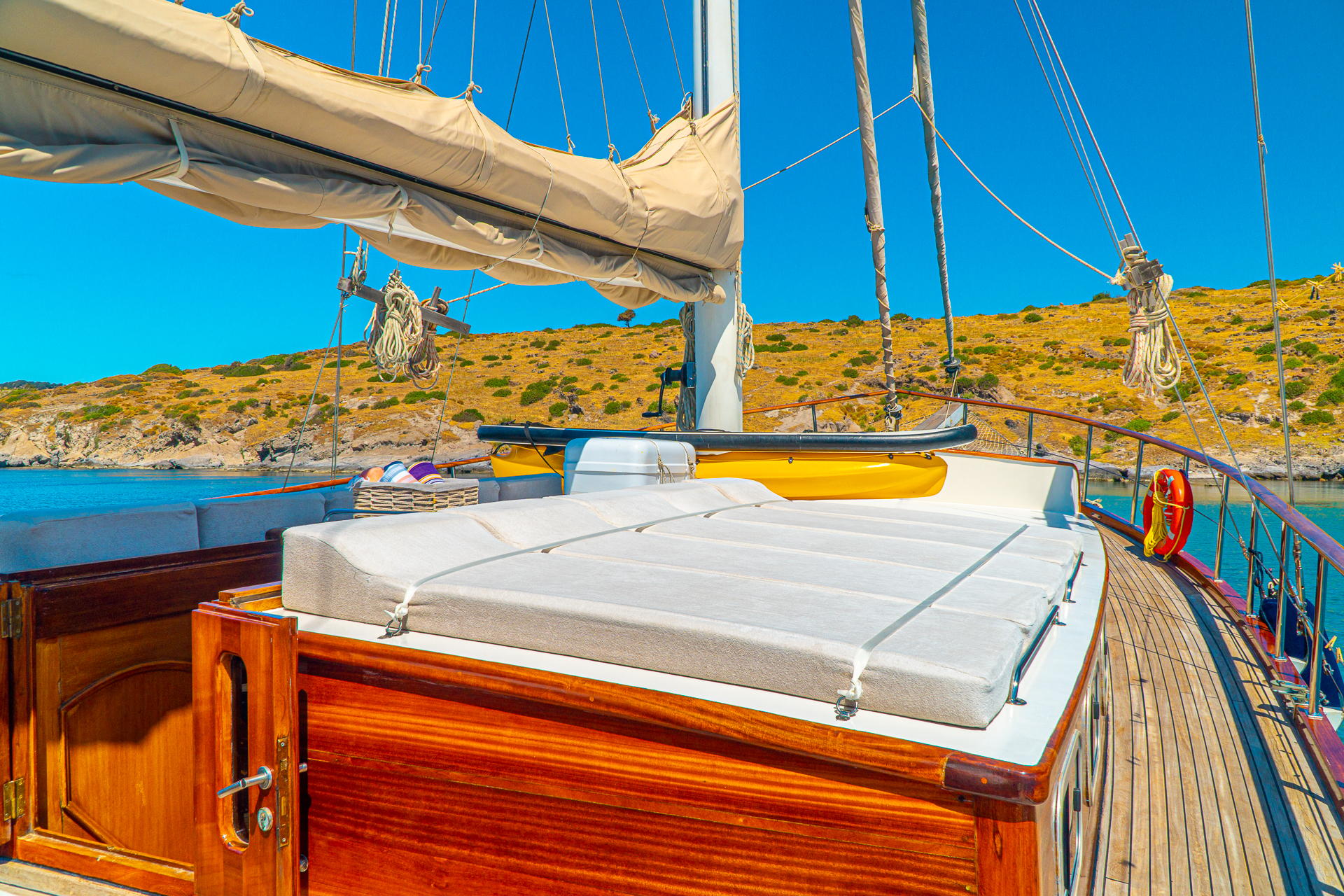 Türk bayrağıyla mavi tur hizmeti veren teknemizde 4 mürettebat bulunmaktadır. Gulet Avrasya, tatil boyunca güzel vakit geçirebileceğiniz tüm detayların