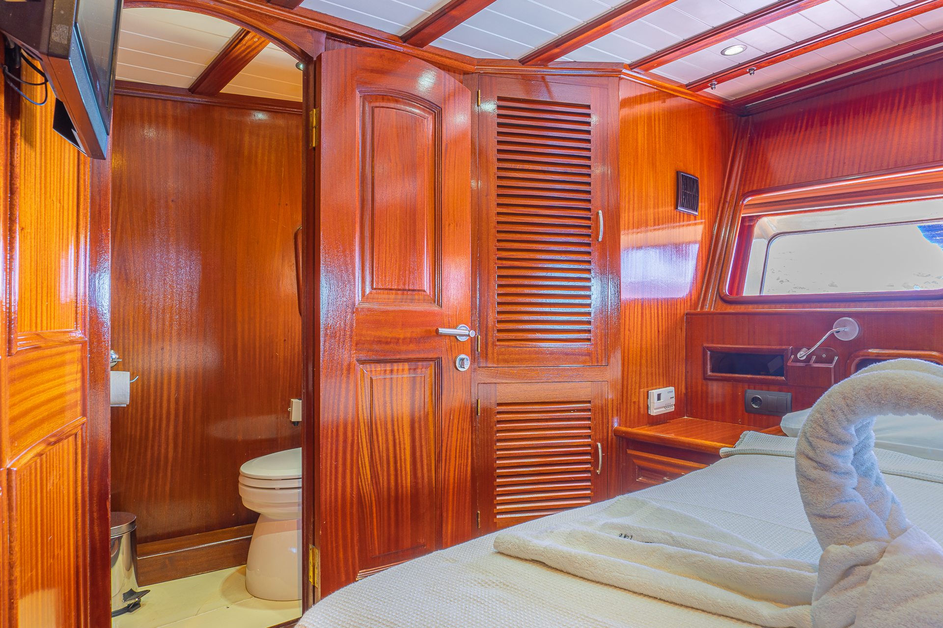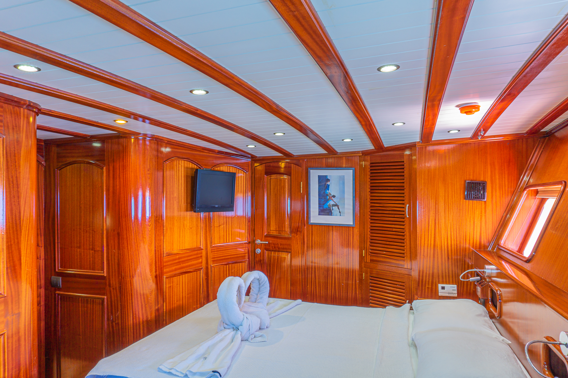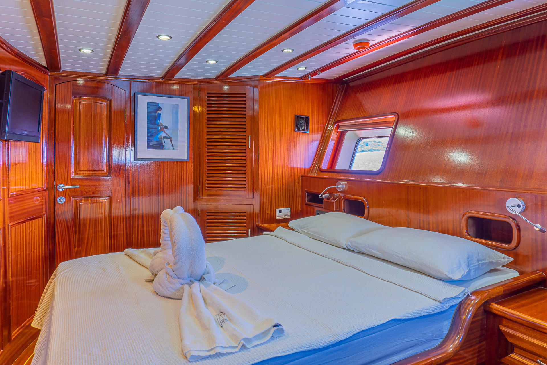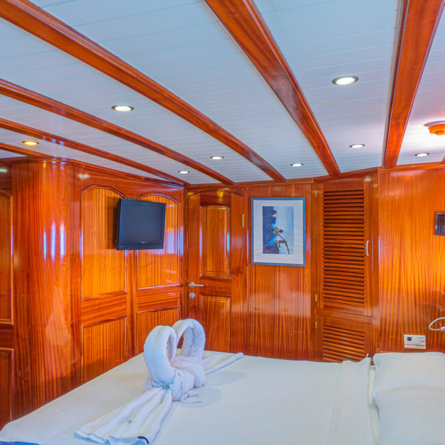 Uzunluğu 24 metre genişliği ise 6.20 metredir. Toplamda 5 kabini bulunan teknede : 4 double ve 1 master kabin bulunmaktadır.