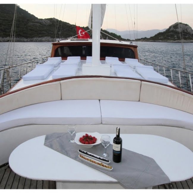 Gulet Azra ,Size standart sınıftaki tekneler içinde Marmaris çıkışlı olarak, 6 kabinde 12 kişiye kadar tekne kiralama imkanı sunan ideal bir ahşap yat. Teknemizde bulunan kano,şnorkel,palet ve olta takımlarını tekne turunuz esnasında ücretsiz olarak kullanabilirsiniz. Mavi tur vazgeçilmezleriniz arasında ise, Azra teknesi 3 kişilik ekibiyle birlikte sizlere unutulmaz mavi yolculuklar için her an hazırlar…