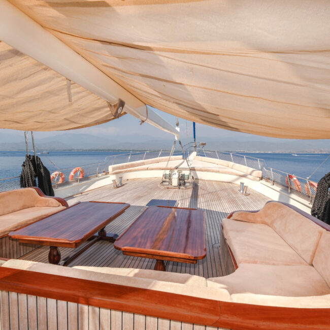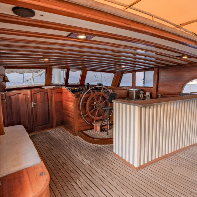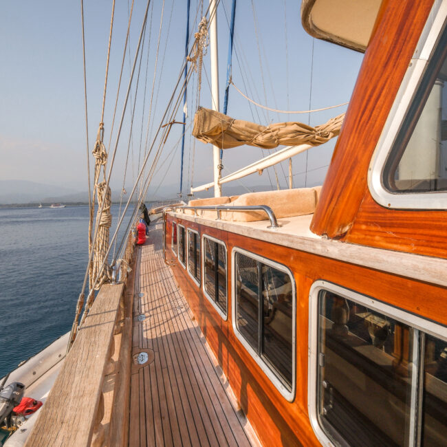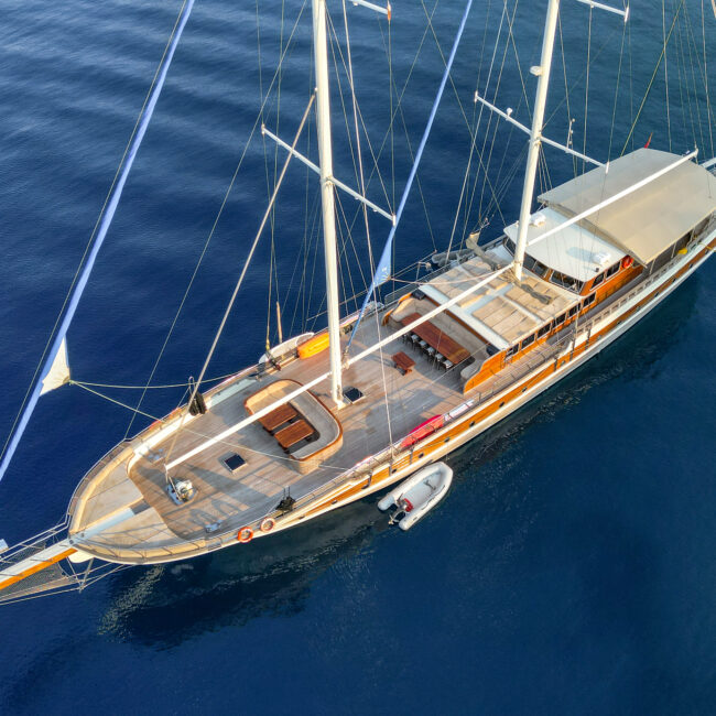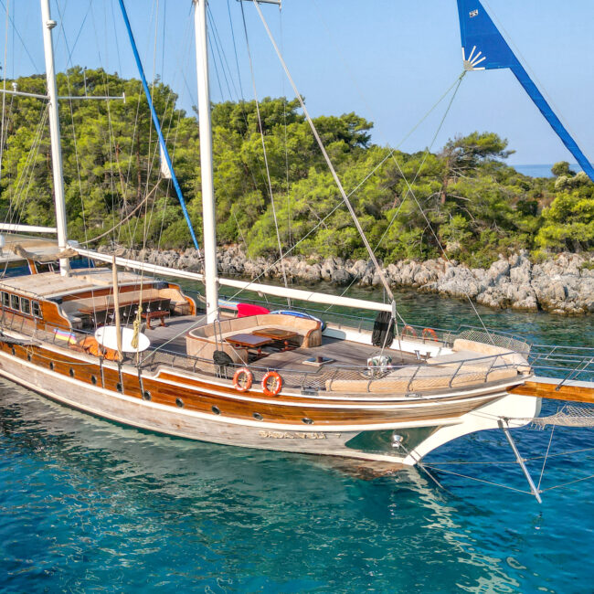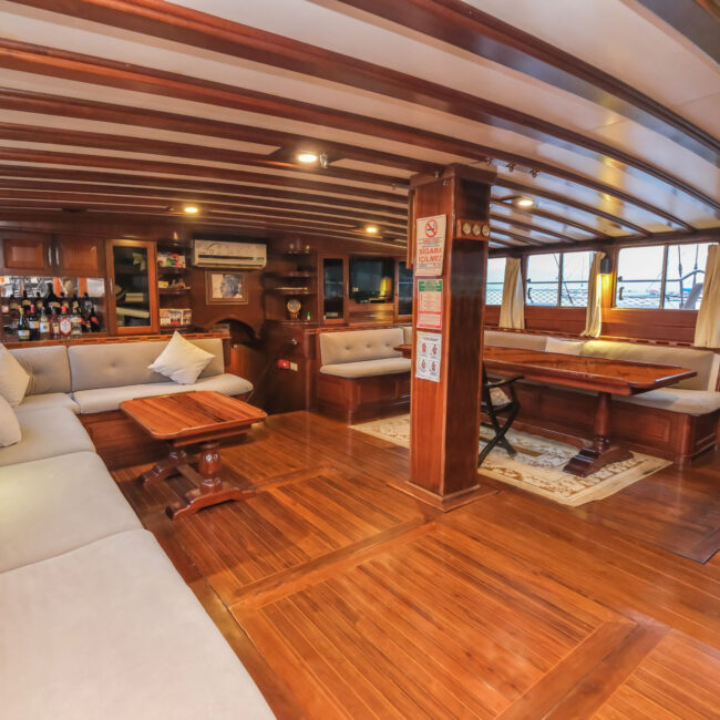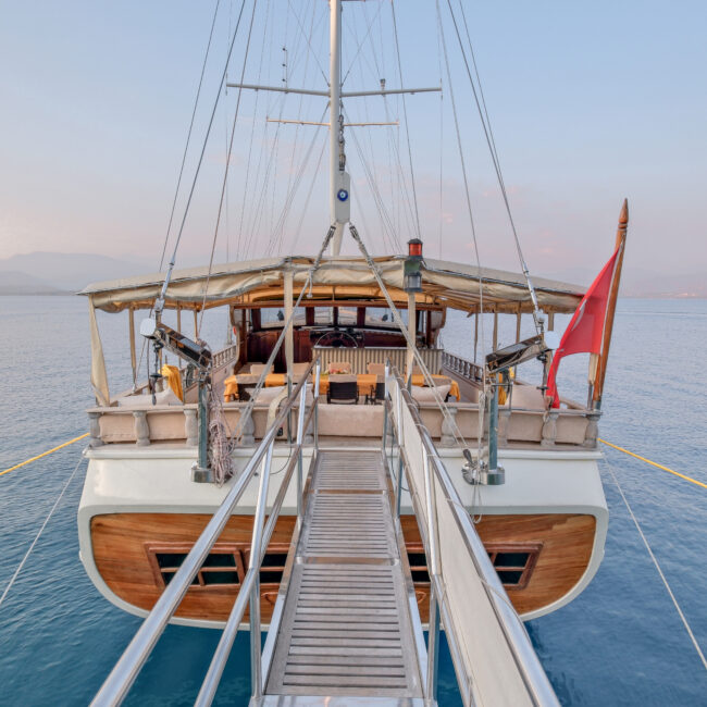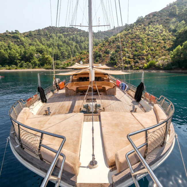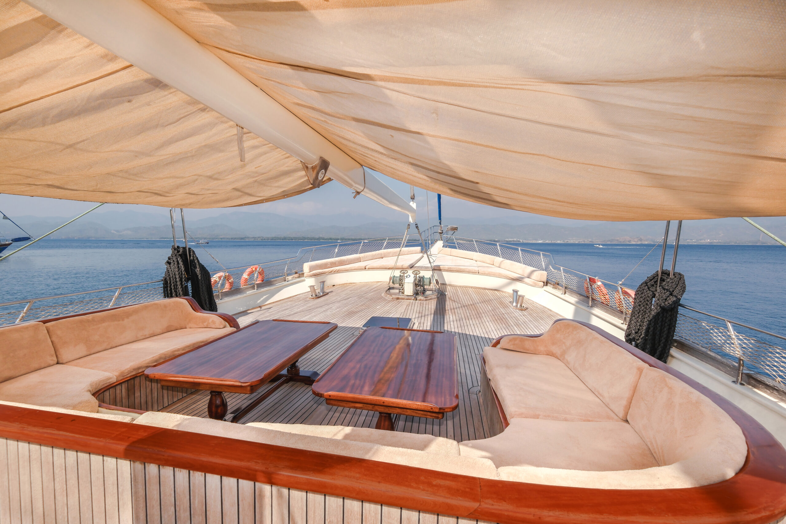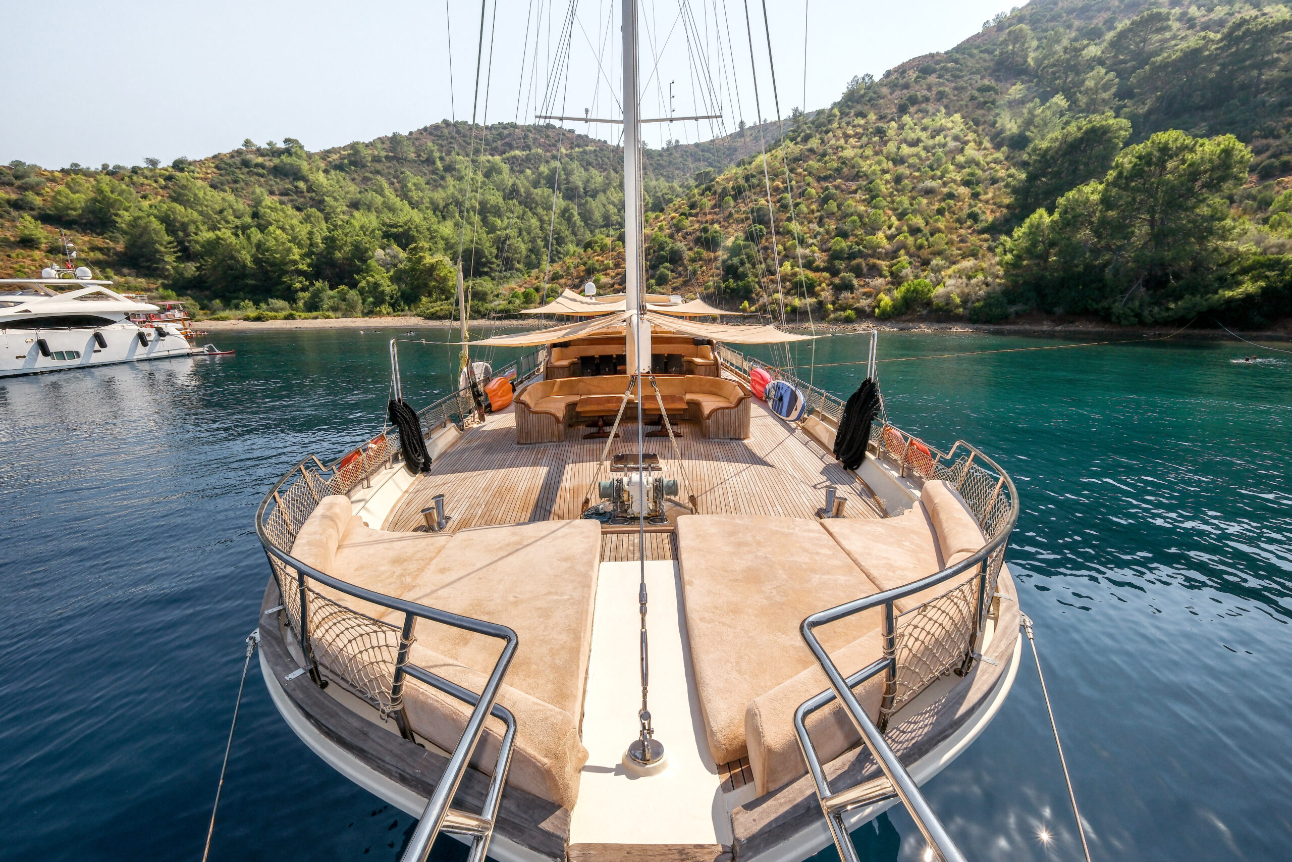 Tam donanımlı mutfağımızda özenle hazırlanan yemeklerimizi kıç güvertede veya salonda bulunan şık sofralarımızda tadabilirsiniz. Güvertede geniş minderli oturma alanı, güneşlenme alanı ve güneşlenme minderleri yeterli miktarda mevcuttur.
